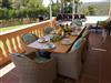 Im Garten befindet sich ein schön angelegter Swimmingpool (5 x 10 m) mit Zugang über eine Treppe. Die teilweise überdachte Terrasse ist mit Sonnenliegen, bequemen Gartenmöbeln und einem Grill ausgestattet. Der große Garten mit Blick auf die umliegenden Berge ist besonders für Kinder geeignet und lädt zum Verweilen und Entspannen ein.