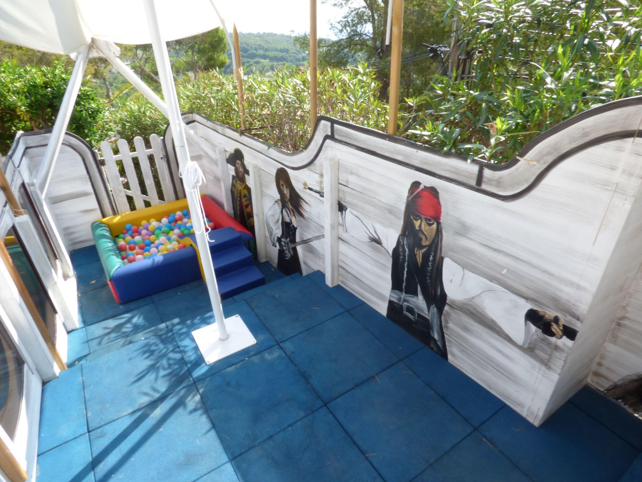 Die Villa's exterior is an oasis of entertainment and relaxation. Dive into the private heated pool, dine alfresco with a fully equipped barbecue area, or socialize at the Ocean Sports Bar featuring an American pool table, foosball, and Internet TV under the glow of a Disney-themed light waterfall. The Spa area, complete with a gym, sauna, and an 8-seater Hydro hot tub offers a luxury sunbathing zone and a chill-out deck for ultimate relaxation. Young guests will revel in the pirate-themed safe play area, ensuring fun and safety in equal measure.
