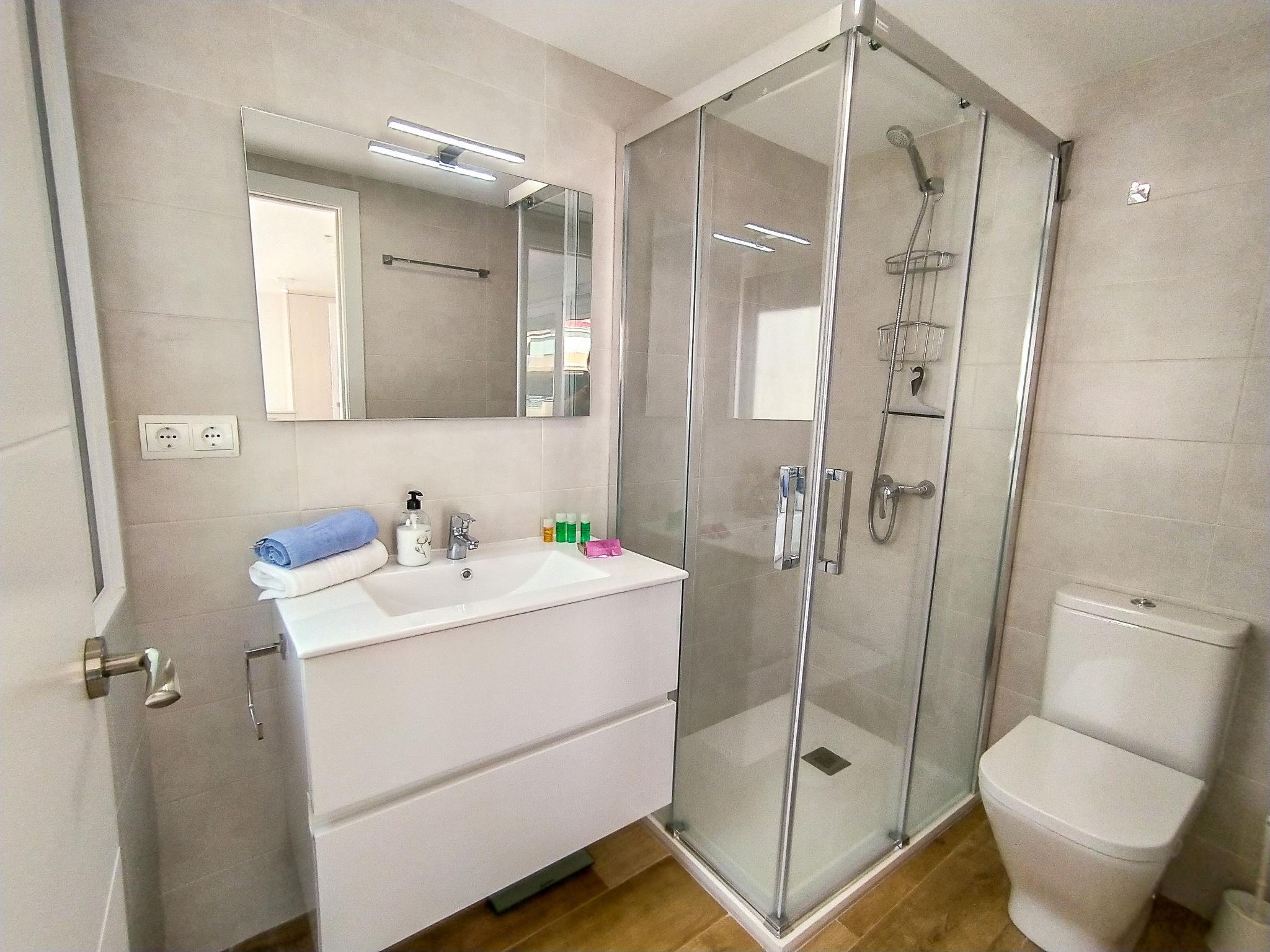 "Suecia", 4-Zimmer-Attikawohnung 92 m2 im 6. Stock, Ostlage. Objekt geeignet für 6 Erwachsene. Geräumig und hell, vollständig renoviert im Jahre 2020, zweckmässig und komfortabel eingerichtet: Wohn-/Esszimmer 23 m2 mit Digital-TV. Ausgang zur Terrasse. 1 Zimmer 7 m2 mit 1 franz. Bett (150 cm, Länge 190 cm), Klimaanlage und Warmluftheizung. 1 Zimmer 9 m2 mit 2 Betten (90 cm, Länge 190 cm), Dusche/WC, Klimaanlage und Warmluftheizung. Ausgang zur Terrasse. 1 Zimmer 9 m2 mit 2 Betten (90 cm, Länge 190 cm), Klimaanlage und Warmluftheizung. Kochnische (Backofen, Geschirrspüler, 3 Induktionskochplatten, Toaster, Wasserkocher, Mikrowelle, Tiefkühler, elektrische Kaffeemaschine). Dusche/Bidet/WC. Klimaanlage, Boiler (80 Liter). Grosse Terrasse 30 m2. Terrassenmöbel, Liegestühle. Sicht auf das Meer und die Stadt. Zur Verfügung: Waschmaschine, Bügeleisen, Haartrockner. Internet (WLAN, gratis). Parkplatz Nr. Calle Maravall,pk 19. VT-321838-BM // Reg. Nr.: ESFCTU0000030440002599280000000000000000VT-321838-BM6