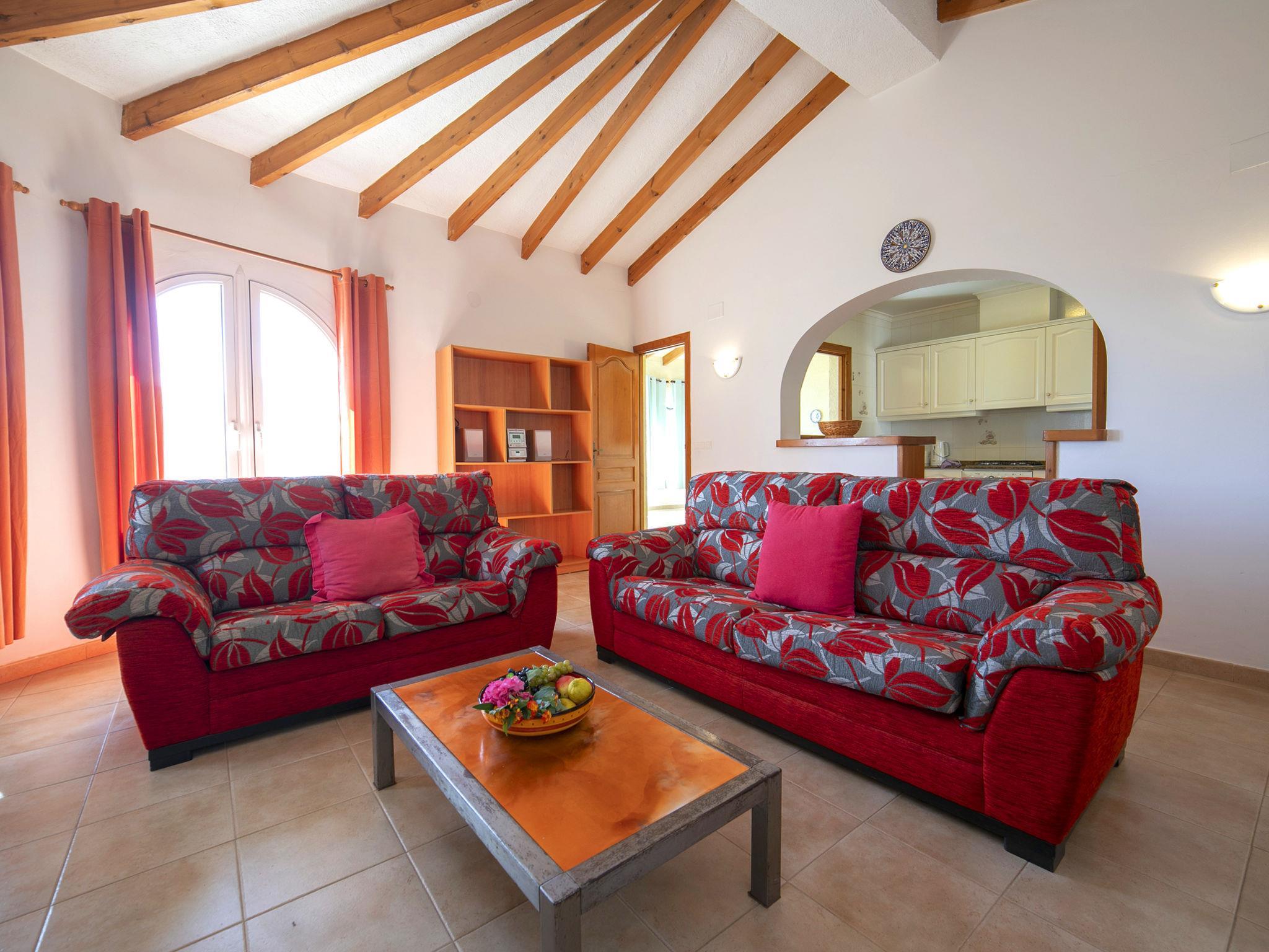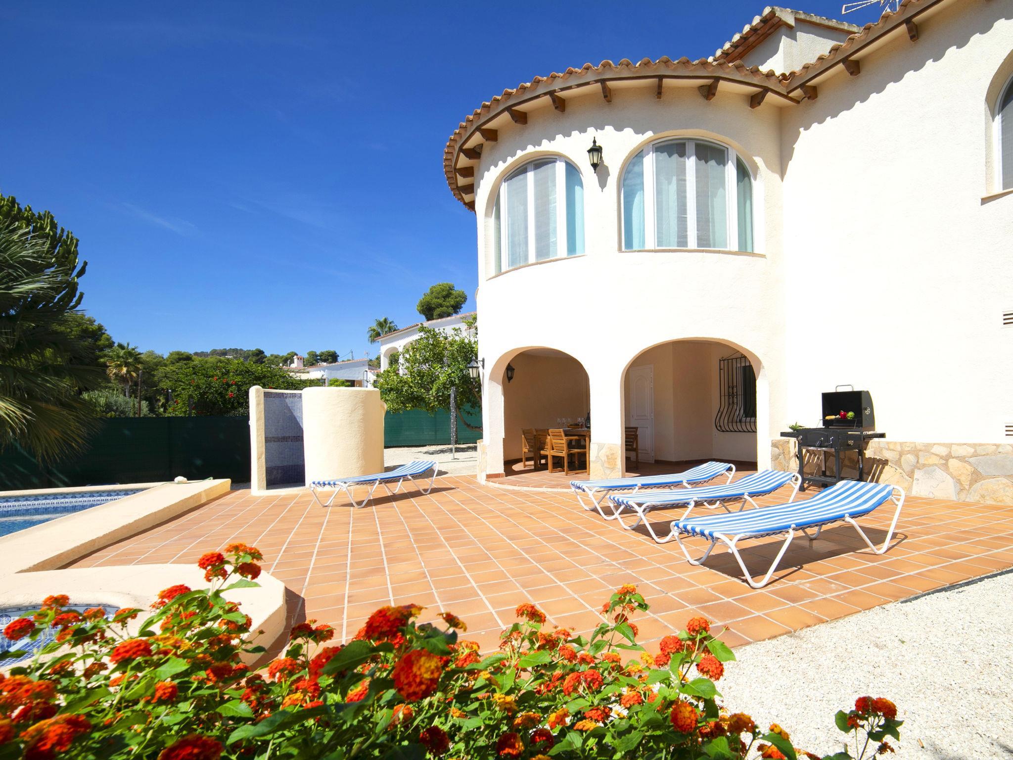 Fanadix 5 km von Moraira: Grosse Villa "Oronella", auf 2 Stockwerken. 5 km vom Zentrum von Moraira, 9 km vom Zentrum von Calpe, im Bezirk Fanadix, sonnige Lage im Villenviertel, 850 m vom Meer, 850 m vom Strand, in einer Sackgasse. Zur Alleinbenutzung: Grundstück 670 m2 (eingezäunt), Schwimmbad (8 x 4 m, saisonale Verfügbarkeit: 01.Jan. - 31.Dez.) mit Innentreppe. Aussendusche, Gartenmöbel, Poolpflege durch den Besitzer/Gärtner. Heizung nur verfügbar von 01.Nov. - 30.Apr.. Lebensmittelgeschäft 1.9 km, Supermarkt 200 m, Restaurant, Café 600 m, Bushaltestelle 2.5 km, Sandstrand "Playa La Fustera" 3.5 km (klein), Badebucht 650 m. Sporthafen 4.5 km, Jacht-Hafen 4.5 km, Golfplatz (9 Loch) 3.6 km, Surfschule 4.5 km, Segelschule 4.5 km. Nahe gelegene Sehenswürdigkeiten: Aqualandia, Mundomar, Terra Mítica, Terra Natura, Benidorm Palace (Benidorm), Les Fonts de l'Algar, Castillo de Guadalest. Der Besitzer akzeptiert keine Jugendgruppen.