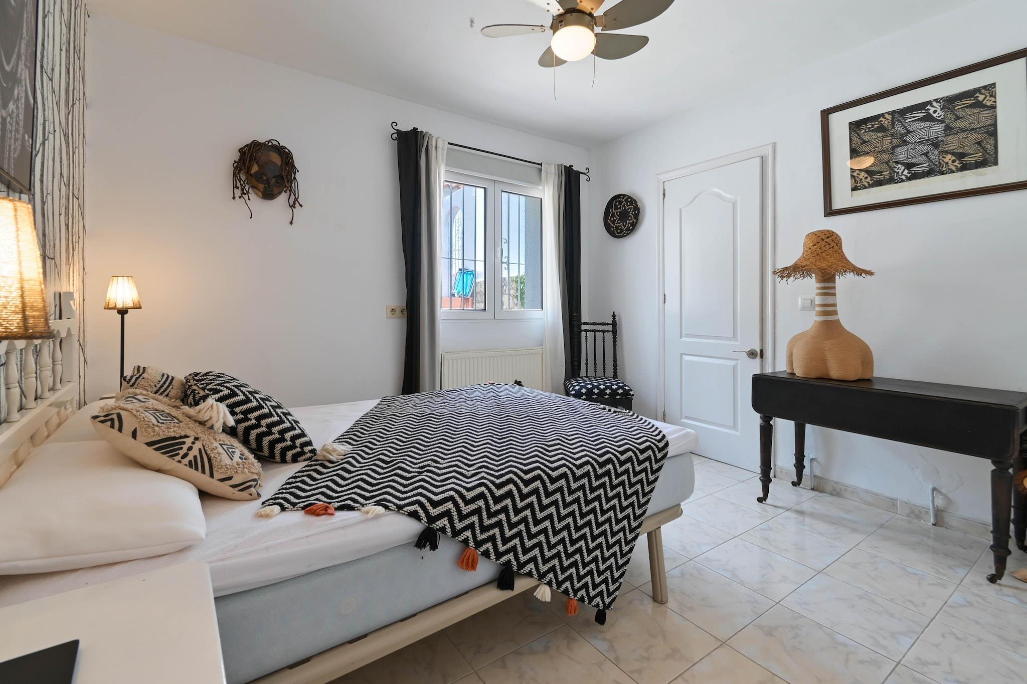 Diese geräumige, haustierfreundliche Villa in Benissa bietet einen ruhigen Rückzugsort nur wenige Minuten von der Mittelmeerküste entfernt. Das dreistöckige Haus ist ideal für Familien oder Gruppen und bietet eine Mischung aus Komfort und Charme. Es liegt in der Nähe des historischen Stadtzentrums, des malerischen Küstenwanderwegs Ruta Ecológica und des goldenen Sandstrands Playa de La Fustera. Kunstliebhaber werden die nahegelegene Georgie Poulariani Galerie zu schätzen wissen, während Geschichtsinteressierte die mittelalterliche Architektur der Altstadt von Benissa erkunden können. Die Villa verfügt über vier Schlafzimmer mit flexiblen Schlafmöglichkeiten, drei Badezimmer und mehrere Wohnbereiche, darunter einen Wintergarten und eine Dachterrasse. Die offene Küche ist komplett ausgestattet mit modernen Geräten wie einer Küchenmaschine, einem Entsafter und einer Kombi-Mikrowelle. Gäste können im privaten Garten entspannen, den 10 x 4 m großen Pool genießen oder im Freien mit Grill und Lounge-Set speisen. Klimaanlage, Sat-TV und Gesellschaftsspiele sorgen für Komfort und Unterhaltung. Umgeben von Naturschönheiten und kulturellen Schätzen bietet die Gegend exzellente Restaurants. Genießen Sie Tapas im Nou Tapes Vizcaino, genießen Sie den rustikalen Charme des Restaurants Flor del Collao oder probieren Sie lokale Spezialitäten in der Bar Trinquet Benissa. Ob Sie Sonnenbaden, Sightseeing oder ein Familienessen unter dem Sternenhimmel genießen - diese Villa ist der perfekte Rückzugsort an der Costa Blanca.