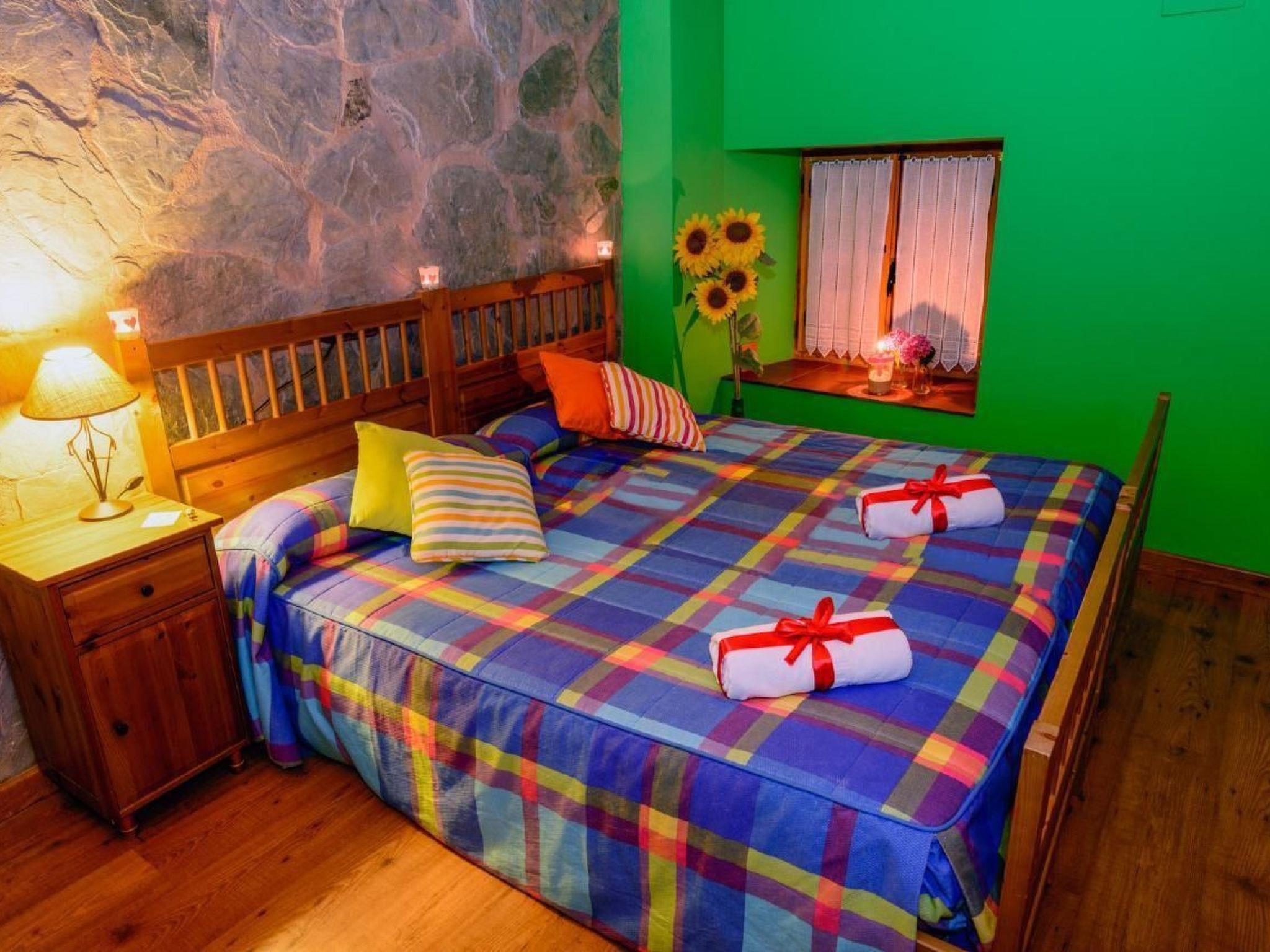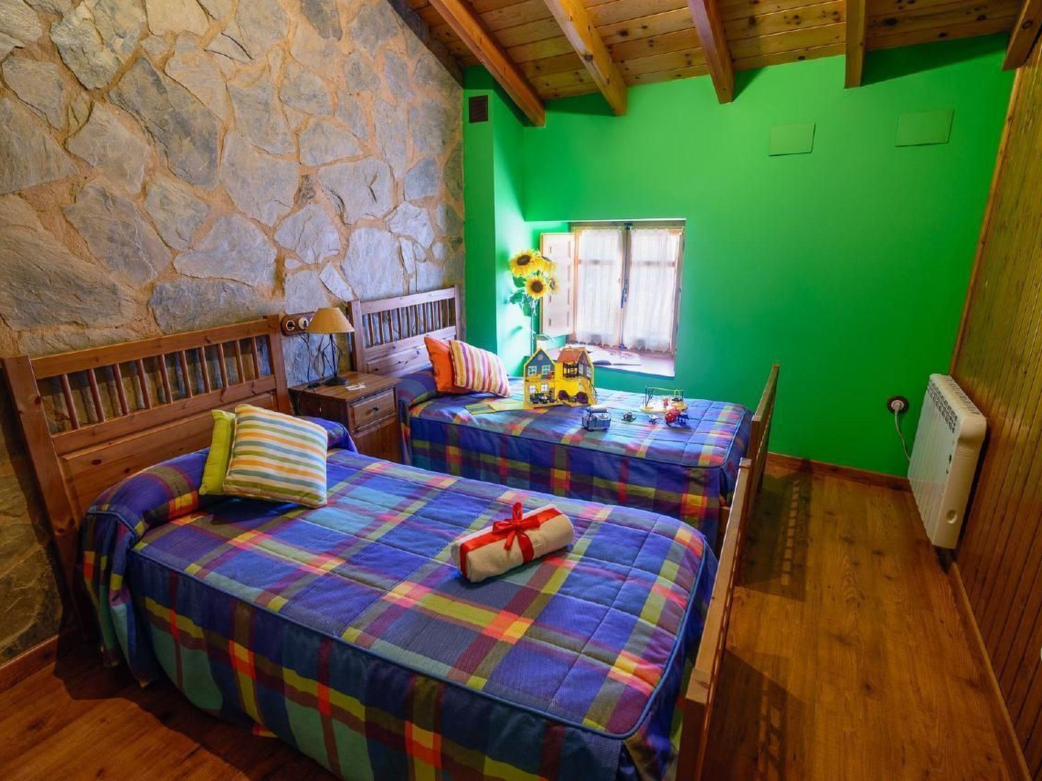 Die Zimmer, die sich auf der obersten Etage befinden, sind im Dachgeschoss untergebracht und lassen uns die Holzbalken und den Stein sehen. Rustikale Möbel und funktional. Ein Zimmer hat ein Doppelbett und das andere mit zwei Betten mit der Möglichkeit, ein Kinderbett in das Haus zu stellen.