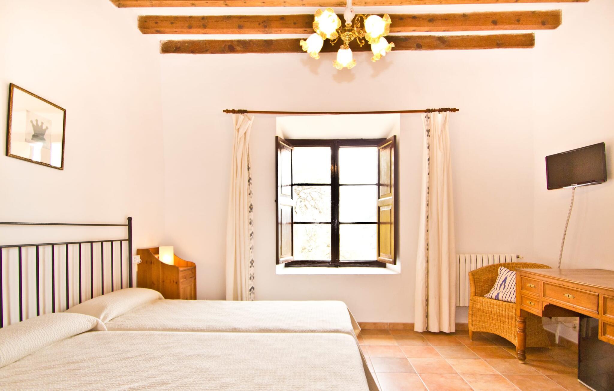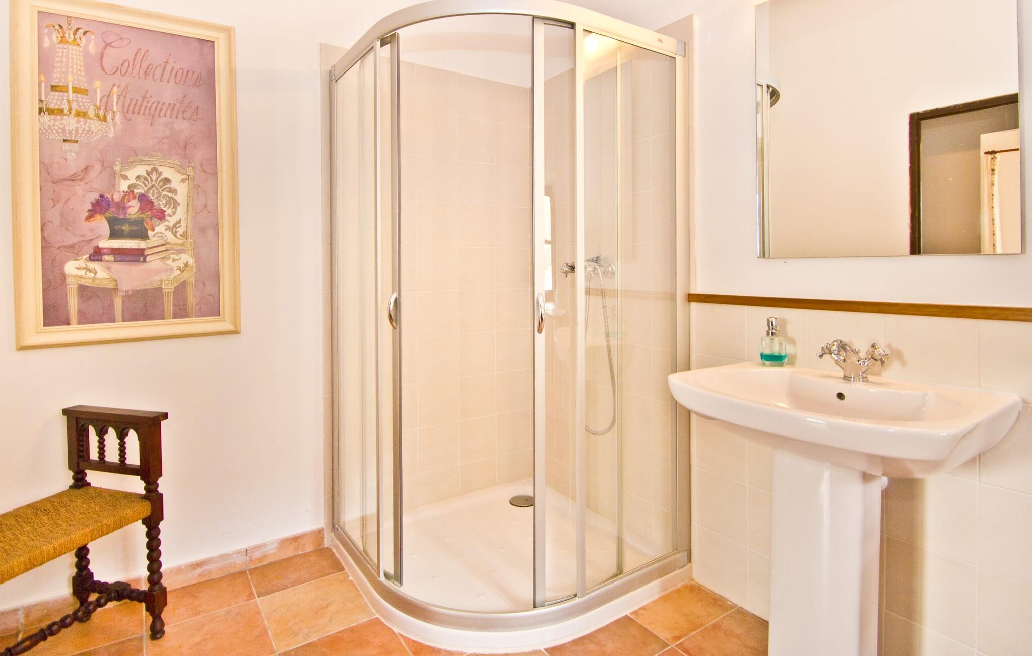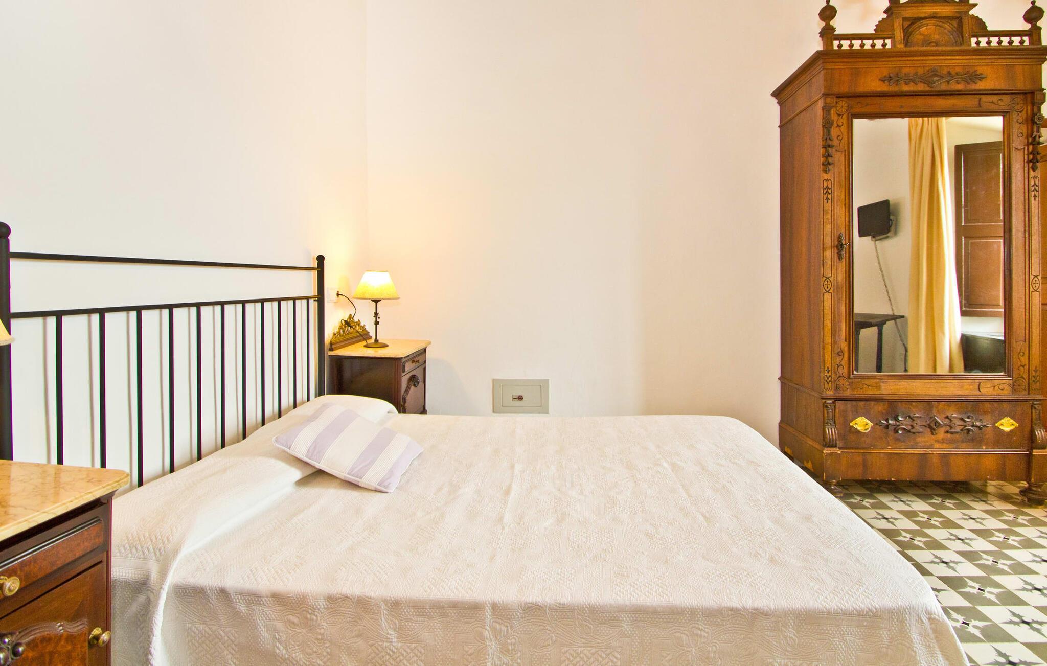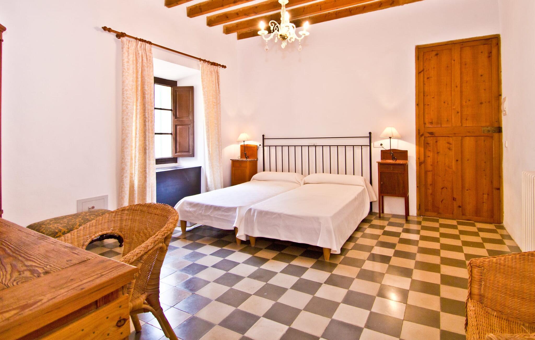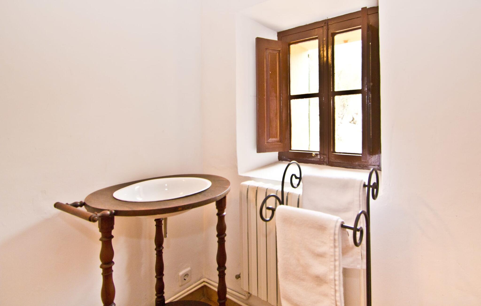Die Bruchsteinfinca ist in eckiger Form erbaut. Ein kleines Eisentor öffnet sich in den Innenhof, von dem aus die einzelnen Gebäudeteile zugänglich sind. Auf der Terrasse ist ein wunderbar geschützter, fröhlich bunter Sitzbereich eingerichtet, wo Sie mit einer großen Gruppe von Menschen die Ruhe rund um die Villa genießen können. Das Haus selbst empfängt uns mit großen, offenen Räumen und Wohnräumen. In der schicken Küche steht ein langer Tisch, der ausreichend Platz für die gesamte Gruppe bietet. Da die Villa großen Wert auf den Komfort der Gäste legt, ist es kaum verwunderlich, dass jedes der gemütlichen Schlafzimmer, von denen einige mit antiken Bettgestellen ausgestattet sind, über ein eigenes Badezimmer (mit Dusche oder Badewanne) verfügt. Da es genügend Platz für Gäste gibt, kann jedes Paar hier trotzdem seine Privatsphäre genießen. Selbstverständlich sind auch Haustiere als Gäste herzlich willkommen.