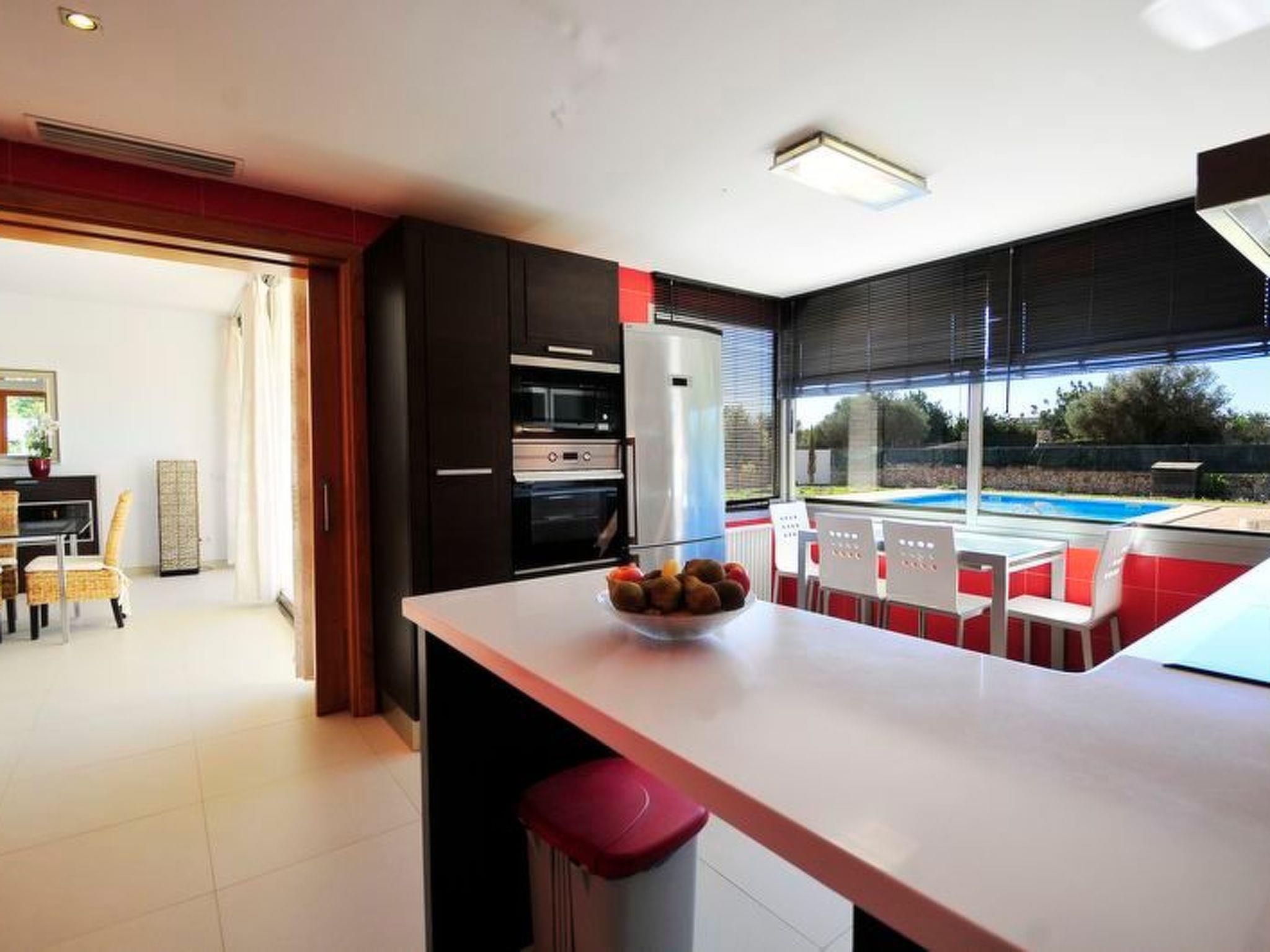 Im Inneren bietet die Finca auf großzügigen 325 m² eleganten und komfortablen Platz für bis zu 10 Gäste. Jedes der 5 geschmackvoll eingerichteten und klimatisierten Schlafzimmer (3 mit Doppelbetten und 2 mit zwei Einzelbetten) verspricht Ruhe und Privatsphäre, ergänzt durch 3 Bäder, von denen zwei en suite sind, und eine zusätzliche Außentoilette. Im Mittelpunkt des Gemeinschaftslebens steht ein geräumiges, lichtdurchflutetes Wohn- und Esszimmer mit Blick auf die Poolterrasse und ausgestattet mit Satellitenfernsehen und WiFi-Internet. Die hochmoderne Küche in amerikanischem Design ist komplett ausgestattet, um all Ihre kulinarischen Bedürfnisse zu erfüllen.