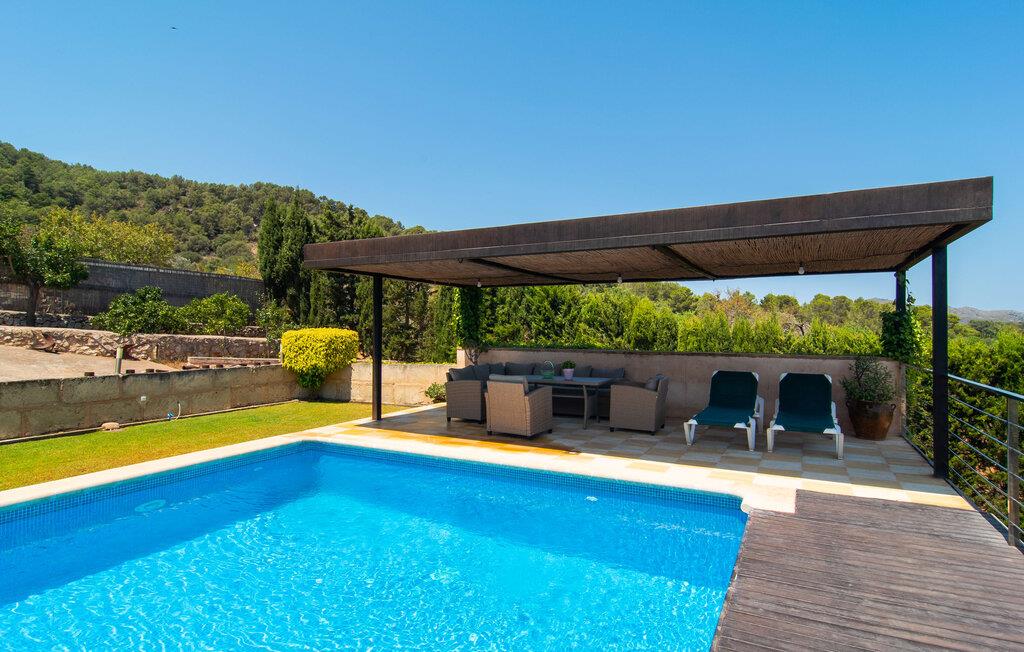Die wunderschöne Villa „Bionic“ liegt idyllisch zwischen den Orten Artà und Son Servera und empfängt ihre Gäste in einem besonders einladenden Ambiente. Umgeben von einer sanft hügeligen Landschaft, malerisch durchsetzt mit Bäumen und Wäldchen, fügt sich das Natursteinhaus dekorativ ins Bild ein. Der Weg zu diesem Ferienhaus führt vorbei an Mandel- und Olivenbäumen. Die leichte Hanglage verspricht sensationelle Ausblicke. Der großzügige Außenbereich bietet vielfältige Möglichkeiten für einen wunderschönen Aufenthalt im Freien. Die Kleinen können auf den Rasen- und Terrassenflächen spielen, während die Erwachsenen nach einem tollen Plätzchen zum Entspannen suchen. Ein besonderes Highlight ist natürlich der Pool mit einer beeindruckenden Länge von 10 Metern, der rundum komfortabel gestaltet ist. Neben der angenehmen Tatsache, dass der mit blauen Mosaiksteinen geflieste Pool sehr bequem über eine Treppe erreichbar ist, ist auch die Möglichkeit hervorzuheben, sowohl unter dem blauen Mittelmeerhimmel als auch im luftigen Schatten unter dem attraktiven Pavillon viel Platz zu finden. Egal, wo Sie sich niederlassen und vielleicht stilvoll auf der Poolterrasse entspannen – die Aussicht hier ist einfach grandios und trägt auf jeden Fall zu erfüllender Ruhe und Erholung bei. Auf der möblierten Terrasse am Haus lässt sich mit der Überdachung je nach Bedarf Schatten spenden. In der originellen überdachten Außenküche können Sie Ihre Mahlzeiten einfach und unkompliziert im Freien zubereiten und in geselliger Runde genießen. Hier lässt es sich an lauen Abenden am großen Tisch zum kulinarischen Grillen zusammenkommen und herzhafte regionale Spezialitäten genießen.