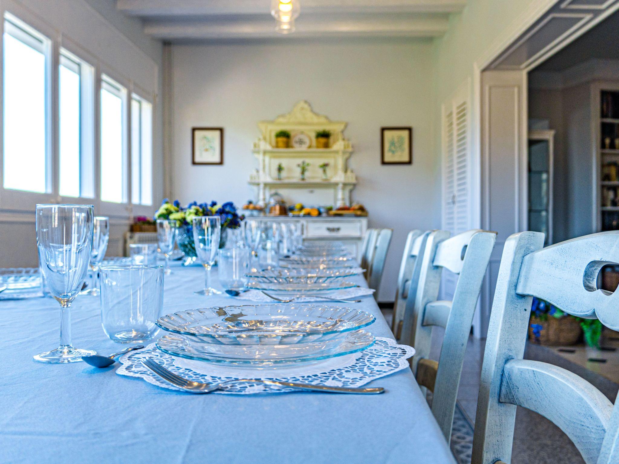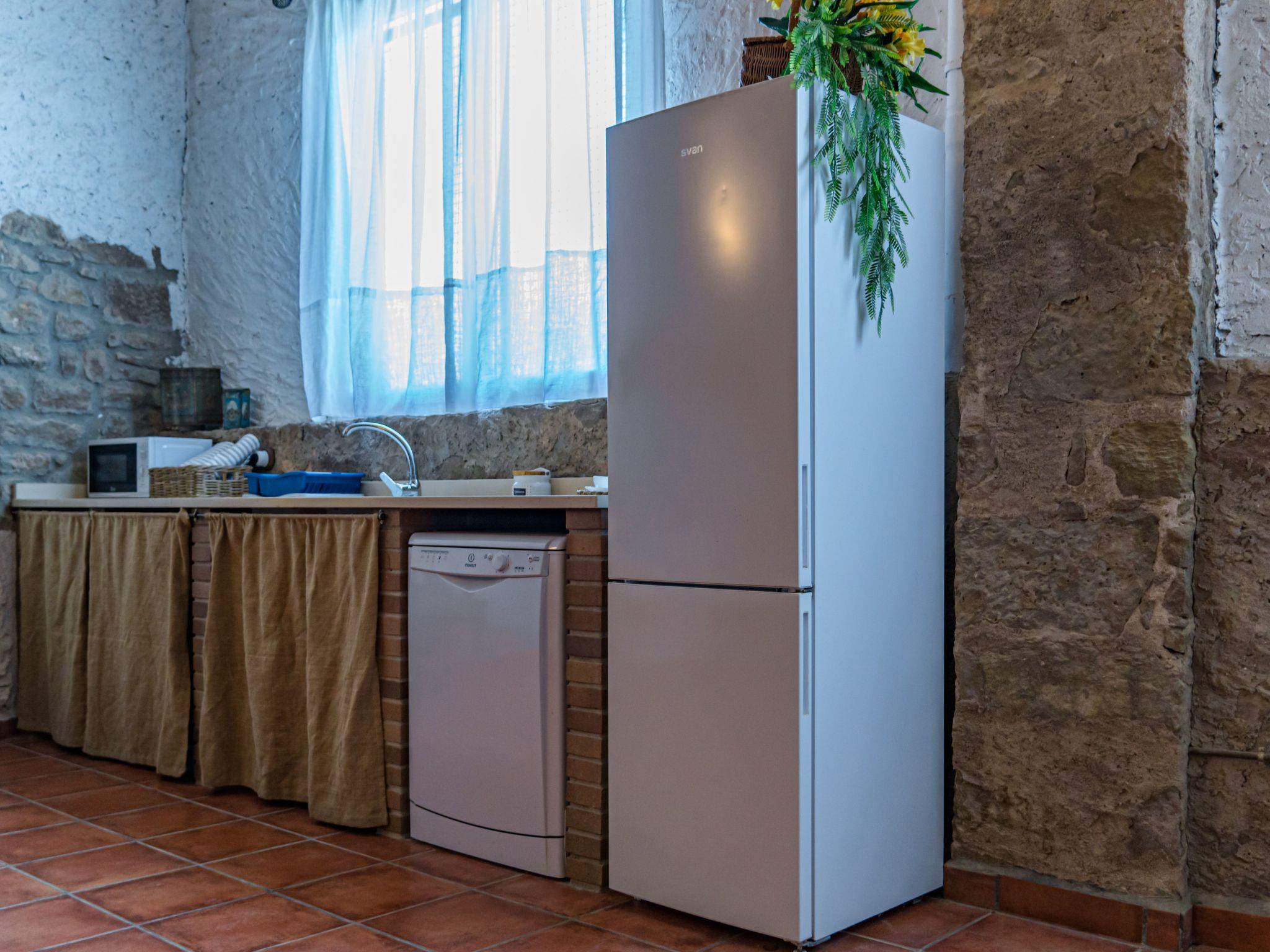 Im Inneren ist das Haus so ausgestattet, dass es allen Bedürfnissen seiner Gäste gerecht wird. In einigen Zimmern stehen Klimaanlagen zur Verfügung, die an den heißesten Tagen für eine kühle Umgebung sorgen, während zwei zusätzliche Ventilatoren für zusätzliche Abkühlung sorgen. An kühleren Abenden sorgt der Kamin für behagliche Wärme und schafft die perfekte Atmosphäre für ein gemütliches Beisammensein. Die gut ausgestattete Küche mit Cerankochfeld, Kaffeemaschine, Kapselkaffeemaschine und Geschirrspüler erleichtert die Zubereitung von Mahlzeiten für die Gruppe. Das Vorhandensein einer Waschmaschine zur ausschließlichen Nutzung durch die Gäste macht den Aufenthalt noch angenehmer.