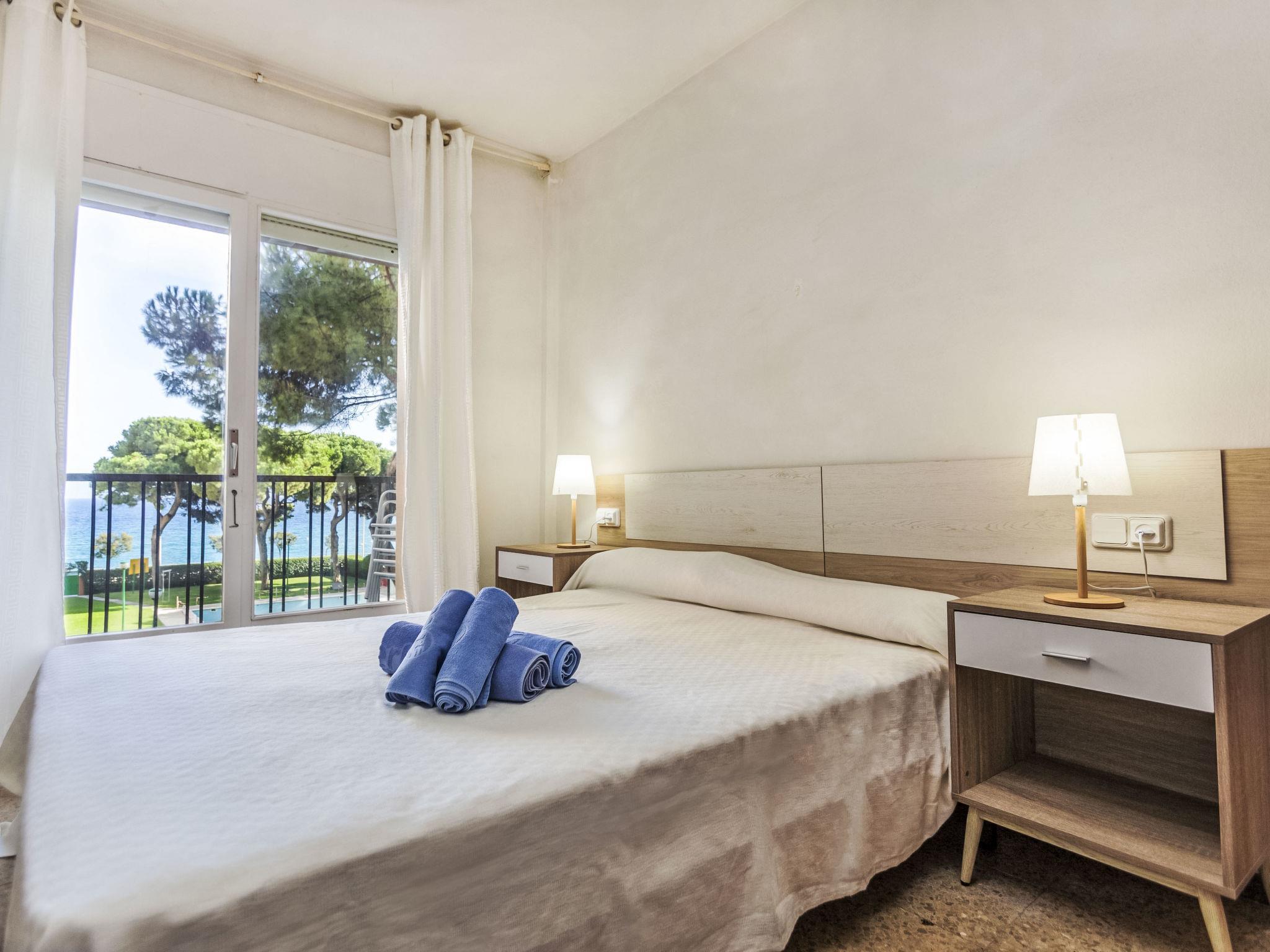 Platja s'Abanell 1 km von Blanes: Appartementhaus "Palmeras", auf 10 Stockwerken. Im Ort, 2 km vom Zentrum von Blanes, 70 m vom Meer. Zur Mitbenutzung: Garten 1'000 m2 (eingezäunt) Rasen, Schwimmbad (25 x 12 m, 120 - 300 cm tief, saisonale Verfügbarkeit: 15.Jun. - 30.Sep.). Kinderbecken, Aussendusche. Im Hause: Fahrstuhl. Treppenweg (8 Stufen) bis zum Haus. Öffentliche Parkplätze auf der Strasse. Lebensmittelgeschäft 10 m, Supermarkt 200 m, Restaurant 10 m, Sandstrand 70 m. Golfplatz 21 km. Jugendgruppen nur auf Anfrage.