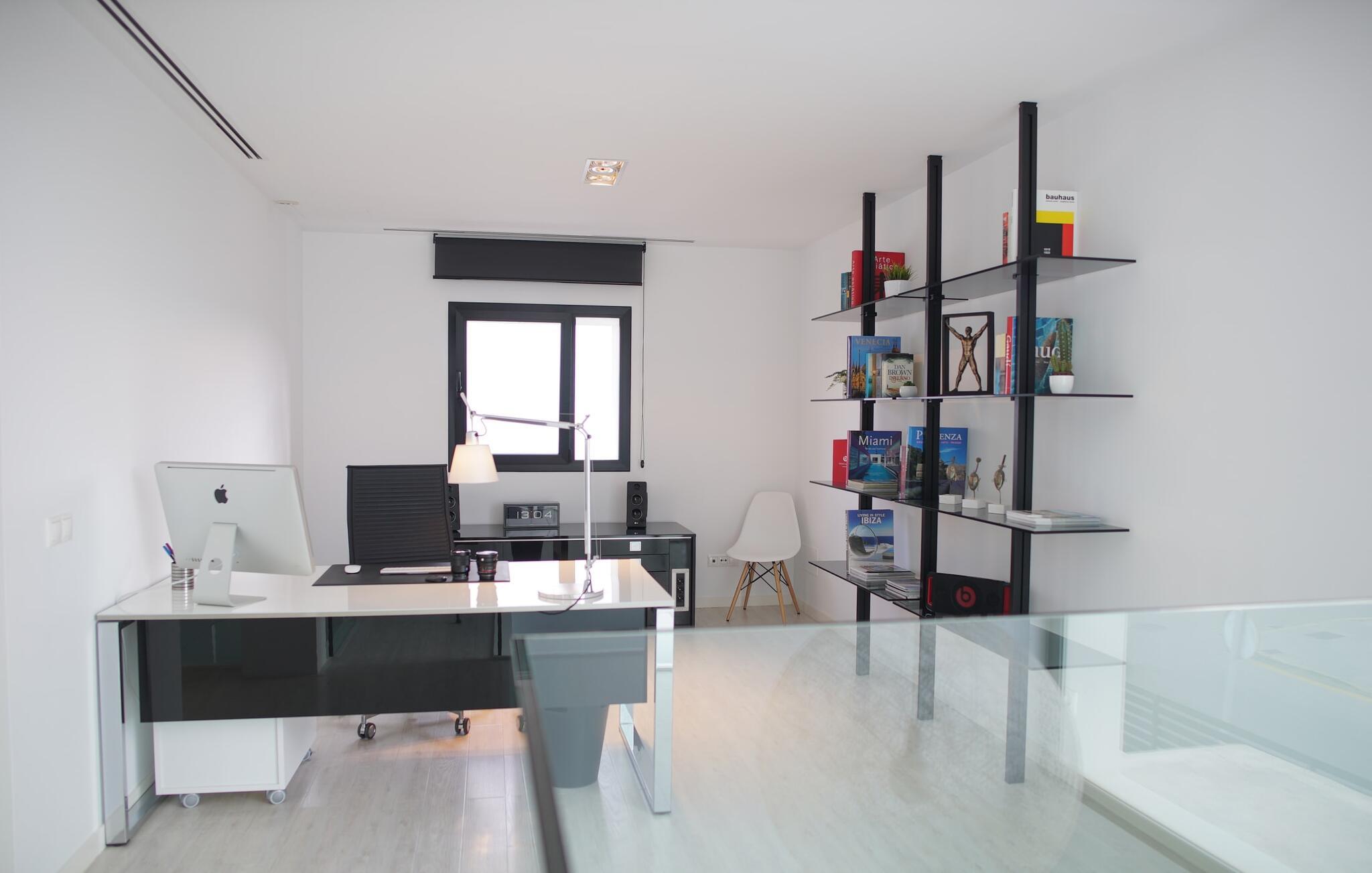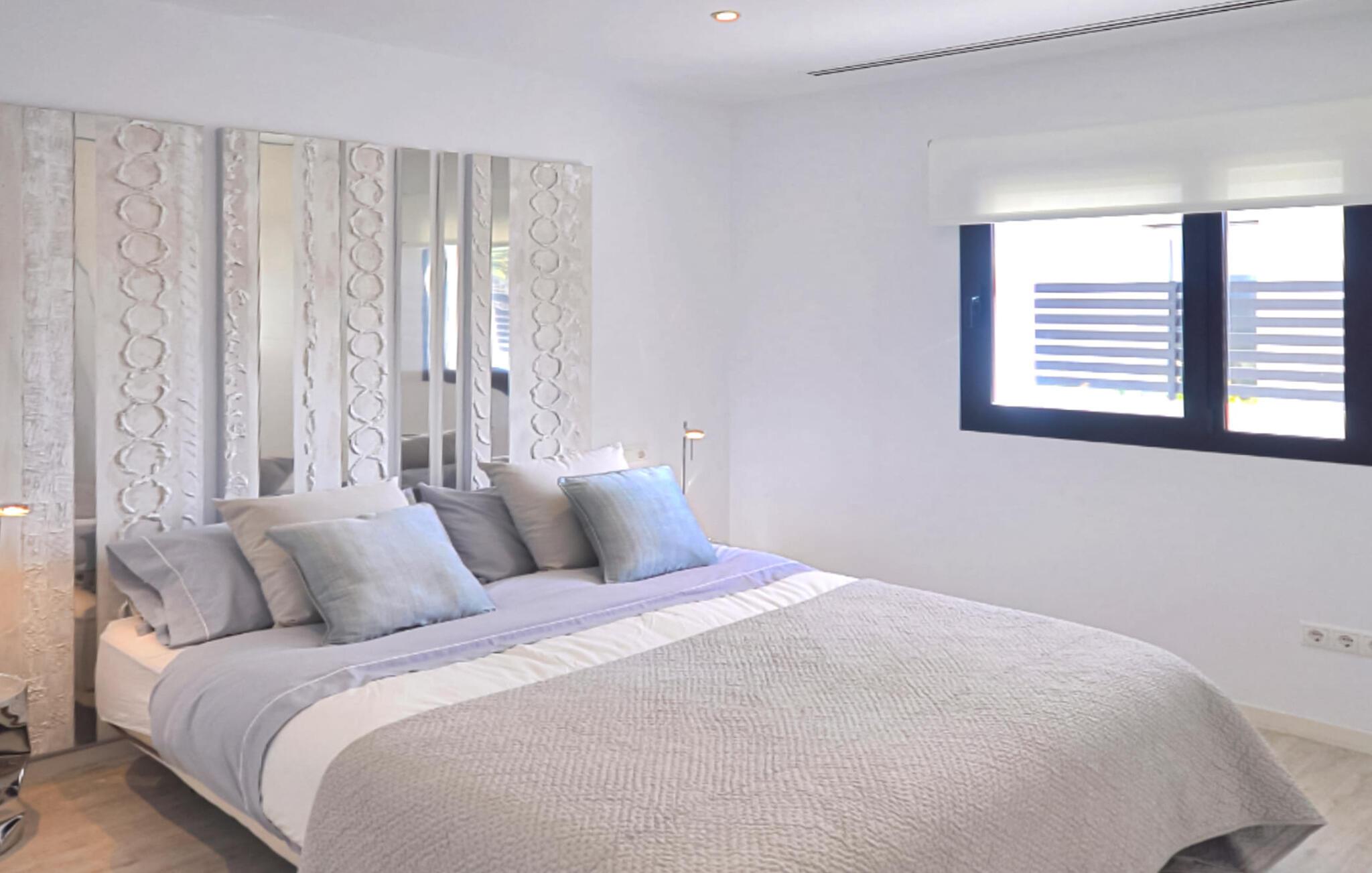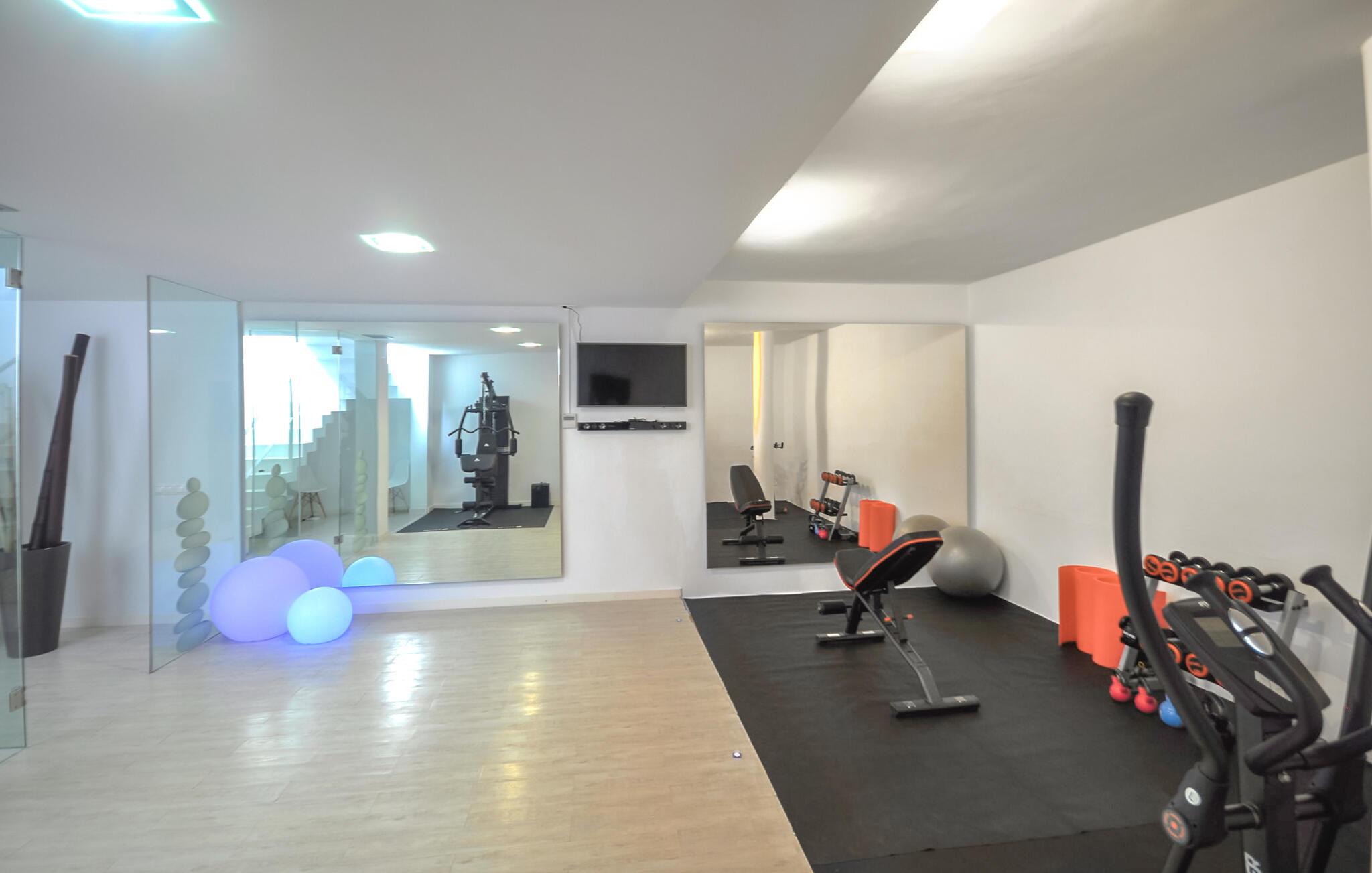 Oder gibt es das? Nur ein paar Schritte entfernt warten die schicken Innenmöbel darauf, von Ihnen entspannt zu werden. Sein minimalistisches Design und der ästhetisch dosierte Einsatz von Farben verleihen dem Innenraum des Hauses ein besonders ästhetisches Ambiente. Das Wohnzimmer mit seinen Glastüren, die auf die Terrasse führen, wirkt fast loftartig und lässt viel Raum zum Atmen. Machen Sie es sich auf dem exklusiven Sofa gemütlich, genießen Sie einen Film auf dem Flachbildfernseher, der zwar freistehend, aber dennoch unaufdringlich wirkt, und genießen Sie das Licht, das durch die gläserne Treppe auf der rechten Seite einfällt. Direkt daneben steht der Esstisch; Mit seiner originellen Tischplatte aus Holz und den üppigen Kugelleuchten aus Naturfaser ist es einem Essbereich im Freien durchaus ebenbürtig, mit dem zusätzlichen Vorteil, dass die integrierte, hochmoderne Küche mit allen modernen Notwendigkeiten nicht weit entfernt ist. Möchten Sie während Ihres Aufenthalts arbeiten? Gehen Sie dann nach oben in das speziell eingerichtete Büro, das Ihnen einen vollkommen ruhigen Ort bietet, an dem Sie Ihre Arbeit erledigen können. Die eigentlichen Ruheplätze sind natürlich die drei Doppelzimmer, alle geschmackvoll eingerichtet und eines sogar mit offenem Bad. Vier Badezimmer sorgen dafür, dass niemand warten muss, bis er an der Reihe ist – und wenn Sie Lust haben, im Fitnessstudio im Erdgeschoss zu trainieren, steht Ihnen gleich nebenan sogar ein eigenes Gäste-WC zur Verfügung.