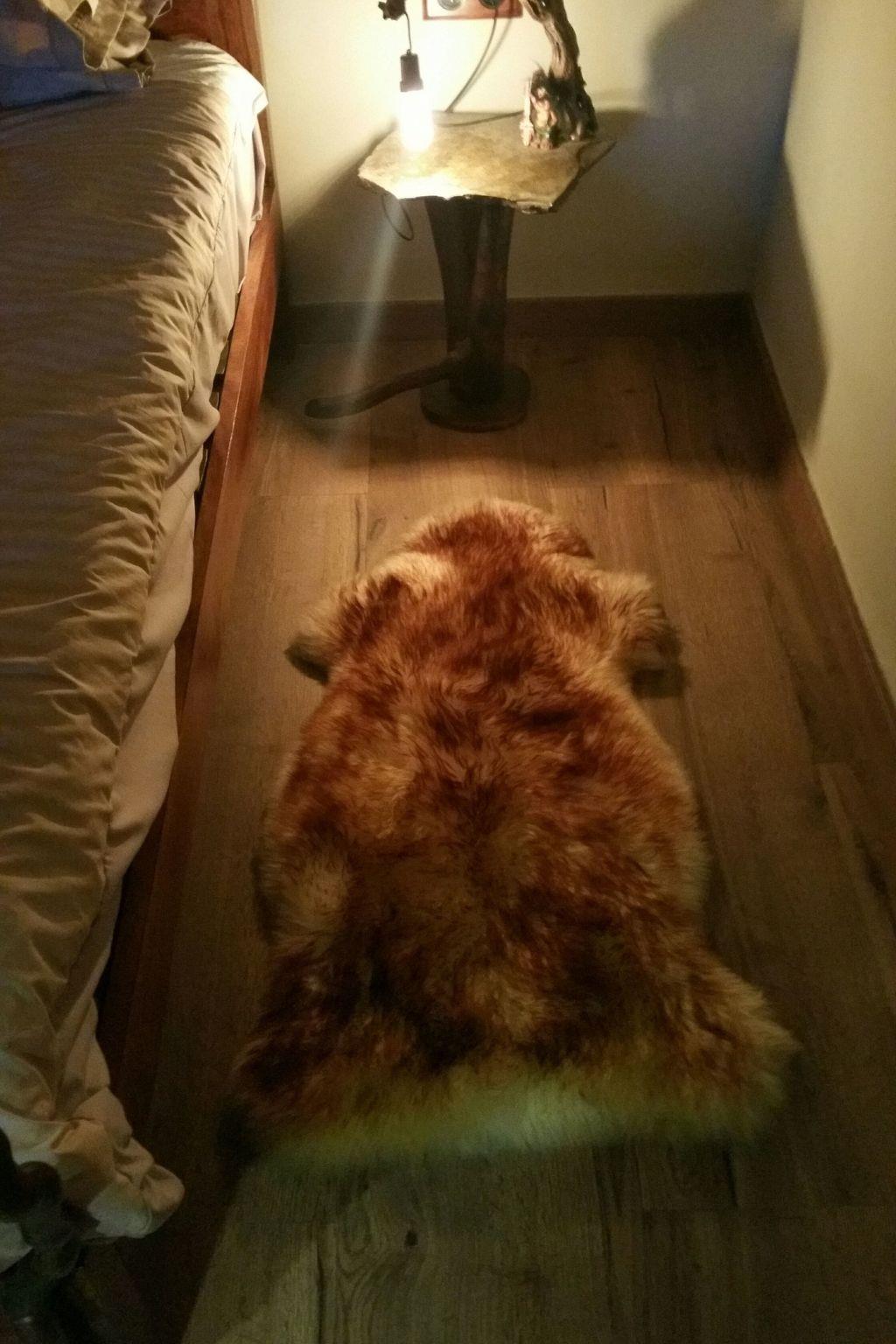 Naturlammteppiche, 2 im Schlafzimmer und ein großer im Wohnzimmer.