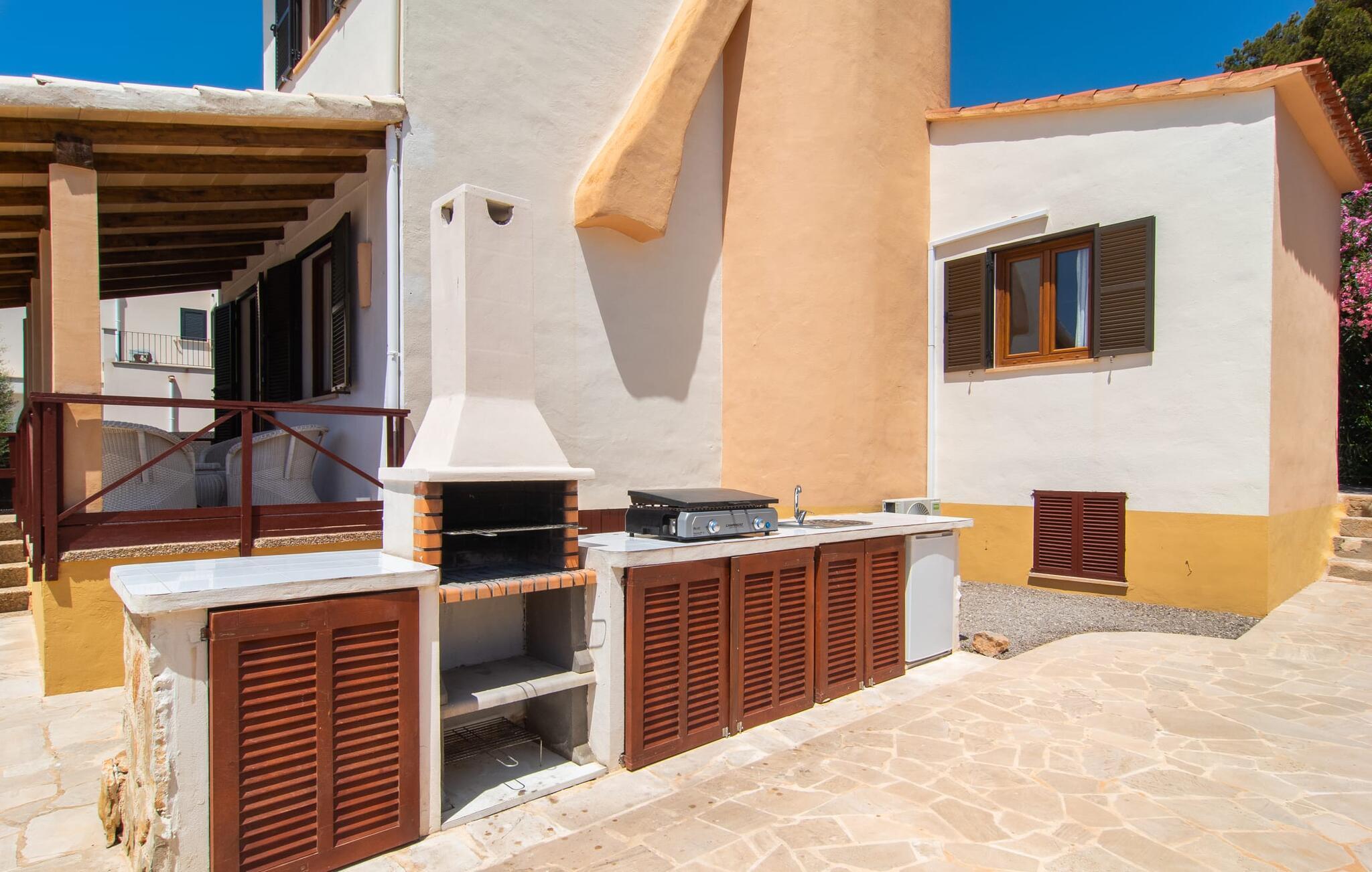 Die gemütliche Villa „Buena Vista de Cala Pi“ besticht durch ihre herrliche Lage in der zweiten Küstenlinie im Süden der Insel. Genau wie der Ort Cala Pí mit seinen 650 Einwohnern, der fernab vom Massentourismus liegt und dennoch ein breites Angebot an touristischen Attraktionen bietet, gibt sich das familienfreundliche Ferienhaus angenehm zurückhaltend. Obwohl die Villa von gleichgesinnten Häusern umgeben ist, begeistert sie dennoch mit ihrem uneingeschränkten Meerblick, den Sie vom Balkon und der Dachterrasse aus genießen können. Der Pool des Ferienhauses bietet angenehme Abkühlung für die ganze Familie. Auch der Terrassenbereich bietet ausreichend Platz für ausgedehntes und ungestörtes Sonnenbaden. Zahlreiche Sitzgelegenheiten im Freien locken zu jeder Tageszeit: Die gemütliche Ecke mit Café-Flair ist umgeben von mediterraner Blumenvielfalt und die überdachte Terrasse darf natürlich nicht fehlen. So finden Sie garantiert Ihren persönlichen Lieblingsplatz zum Sonnenaufgang, nach dem BBQ oder zum Sundowner.
