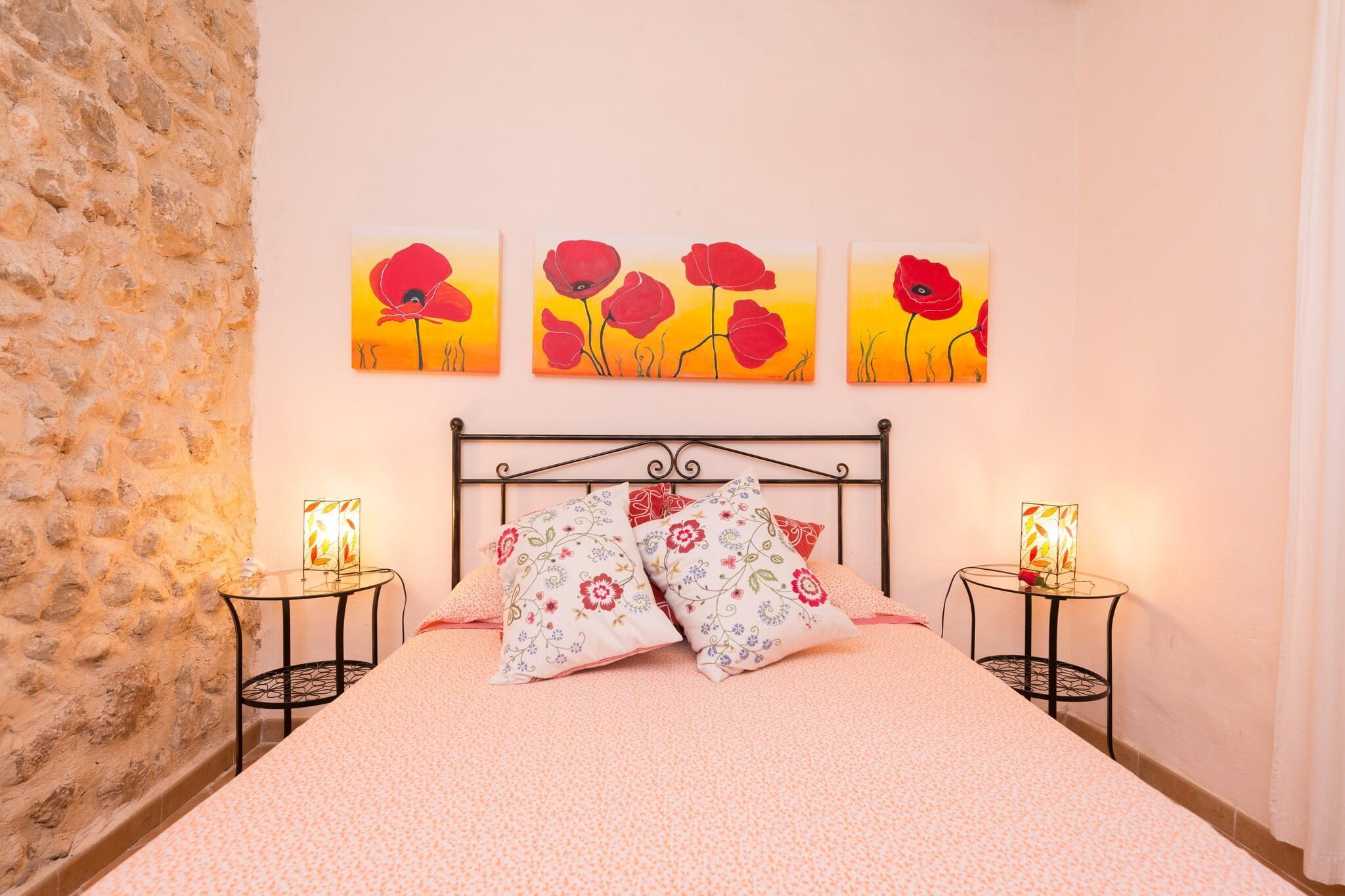 Die Finca beherbergt einen kleinen Garten und den privaten Pool, der zwischen Hecken und Bäumen gut sichtgeschützt liegt. Auf der Poolterrasse schnappt man sich eine der 4 Liegen und lässt die Mittelmeersonne ihre Arbeit tun oder legt sich unter den Sonnenschirm. Der 9 x 4 Meter große Salzwasserpool ist zwischen 1.2 und 1.9 Meter tief und stellt das Herzstück der Finca dar. Nach dem Schwimmen im Pool freut man sich auf ein ausgiebiges Frühstück auf der Veranda, die auf die Felder und Obstbäume blickt. Ein gemauerter Grill sorgt für Abwechslung im Speiseplan. Entspannen kann man auf der Hollywoodschaukel bei einem guten Buch oder beim süßen Nichtstun. Die typisch mallorquinische Finca wird mit Solarenergie betrieben und besticht durch die rustikalen Natursteinmauern, die sowohl innen als auch außen zu sehen sind. Im Wohn- Essbereich freut man sich auf Abende im Familienkreis, beim gemeinsamen Kochen und fernsehen (mit Satellit). Die Landhausküche ist mit Gasherd und allen wichtigen Haushaltsgeräten versehen, damit man auch im Urlaub einfache Speisen zubereiten kann. Die Waschküche ist mit Waschmaschine, Bügeleisen und Bügelbrett versehen. Zwei Schlafzimmer, eines mit Ehebett und das andere mit 2 Einzelbetten, laden zum Entspannen ein. Beide verfügen über einen Kleiderschrank und es kann ein Babybettchen sowie ein Hochstuhl zugestellt werden. Das Badezimmer im Haus ist mit Dusche ausgestattet. 2 Ventilatoren runden die Ausstattung ab. Die Finca befindet sich im zentralen Norden der Sonneninsel und ist ein guter Ausgangspunkt für Ausflüge an den Strand oder in die Berge. Dazu gehören die herrlichen Strände Puerto de Alcúdia, Playa de Muro, Can Picafort oder Cala Sant Vicenç, die mit kristallklarem Wasser und feinem Sand locken. Im kleinen Ort Búger gibt es ein paar Bars und Restaurants; den täglichen Einkauf kann man z.B. in Sa Pobla erledigen. Die pittoresken Dörfer Pollença und Alcúdia sind einen Besuch wert. Eventuelle Nebenkosten müssen beim Anbieter nachgefragt werden. Haustiere sind verboten. Partys oder ähnliche Veranstaltungen sind nicht gestattet. Es gibt Freiluftparkplätze für 2 Autos. Entfernungen Strand: 18.5 km - Puerto de Alcúdia Flughafen: 43.6 km - Son Sant Joan Golfplatz: 24.1 km - Golf Alcanada Ortsmitte: 2.4 km - Búger Bahnhof: 6.9 km - Sa Pobla Bushaltestelle: 1.9 km - Plaça de la Constitució, Búger Fähre: 21.8 km - Puerto de Alcúdia Krankenhaus: 7.5 km - Inca Touristen Lizenz: ETV/2736Einheitsregister: ESFCTU00000702200016311300000000000000000000ETV/27364Bei der Anreise muss die Ecotasa (Touristensteuer der Balearen) bar bezahlt werden. Der zu zahlende Betrag beträgt zwischen 0.55EURO pro Nacht und Gast in der Nebensaison und 2.2EURO pro Nacht und Gast in der Hochsaison. Ab dem 9. Tag reduziert sich die Steuer um die Hälfte. Personen unter 16 Jahren sind davon ausgenommen.Die Kaution ist bei Ankuuft direkt an den Eigentümer zu übergeben.