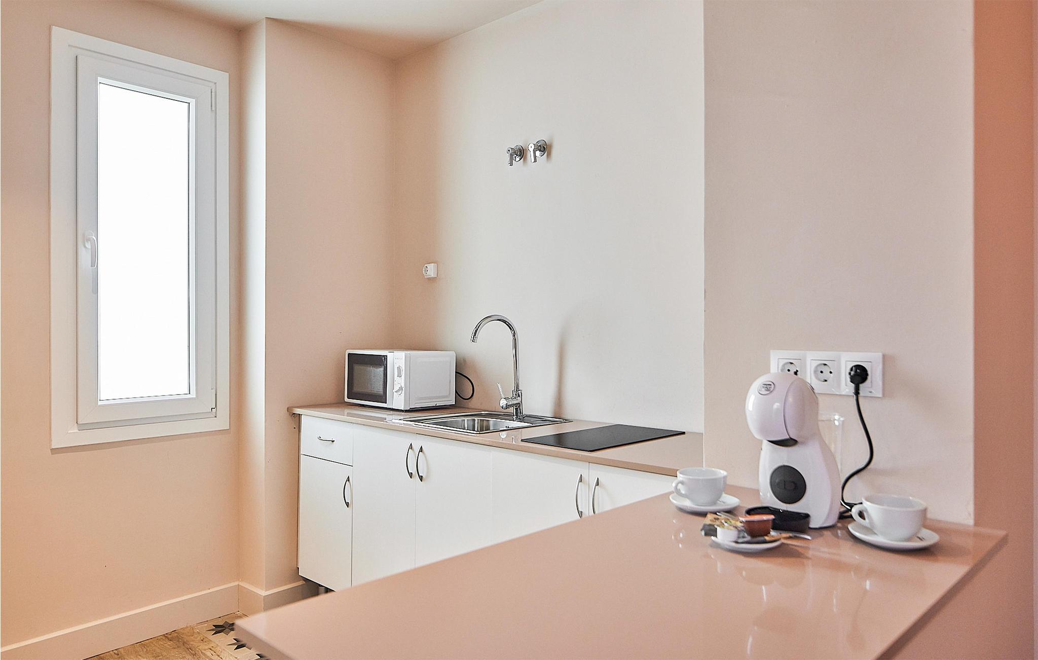Die Küchenzeile verfügt über heißes Wasser