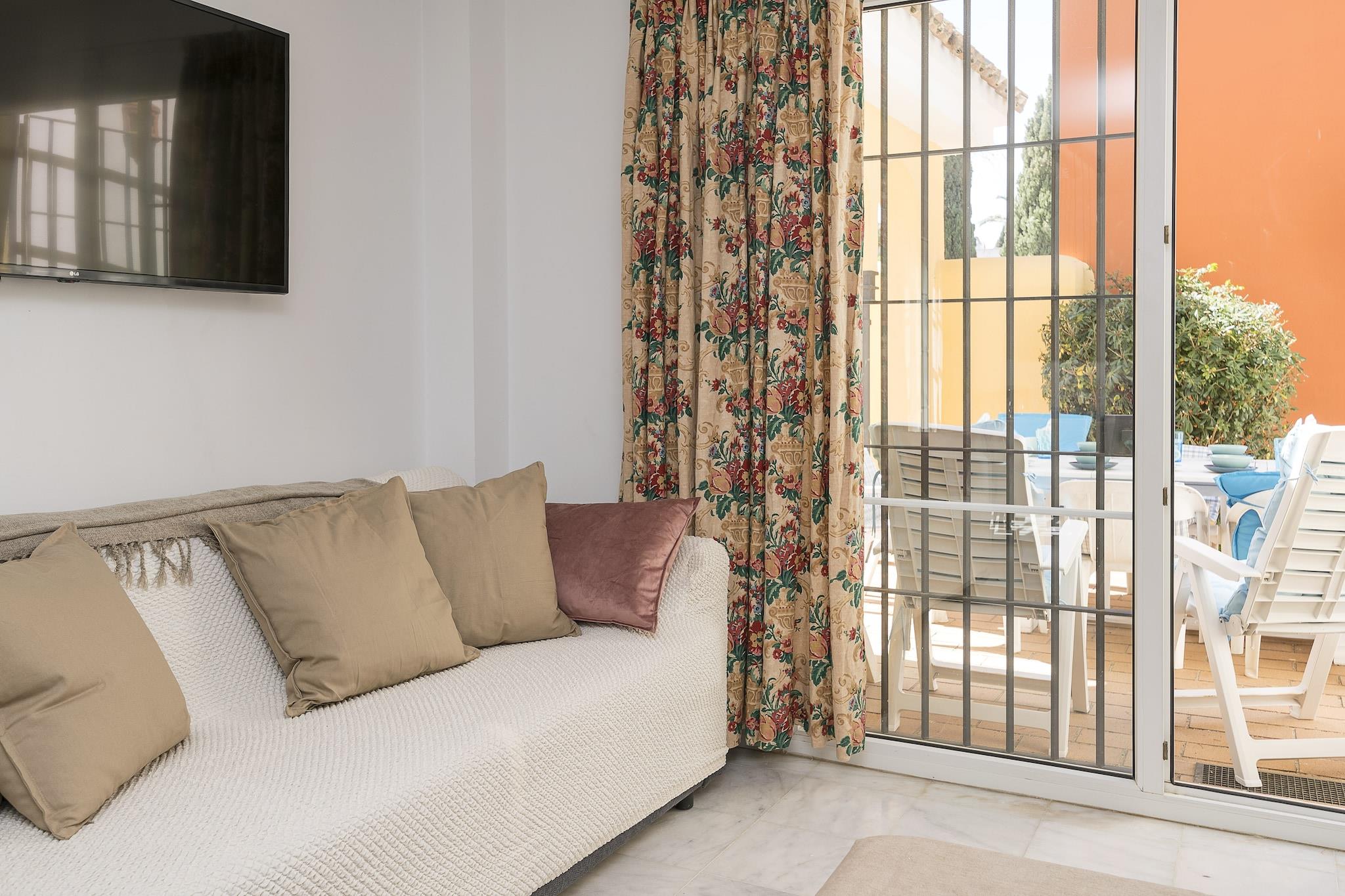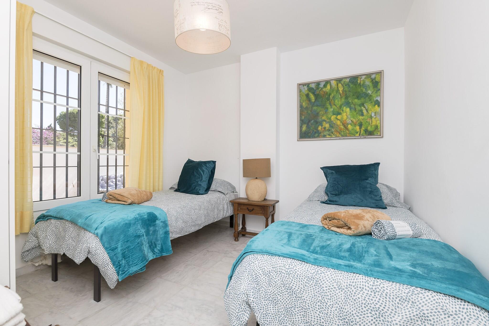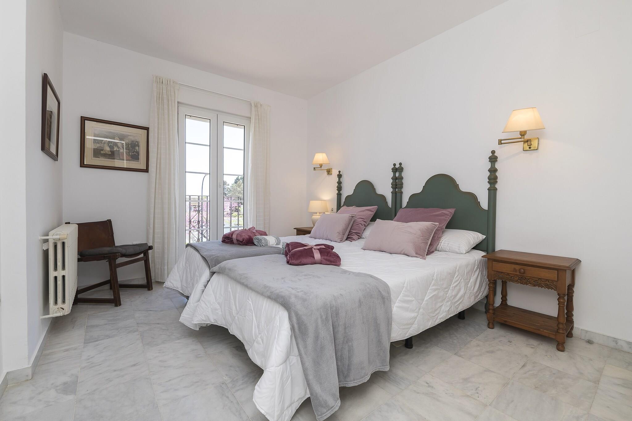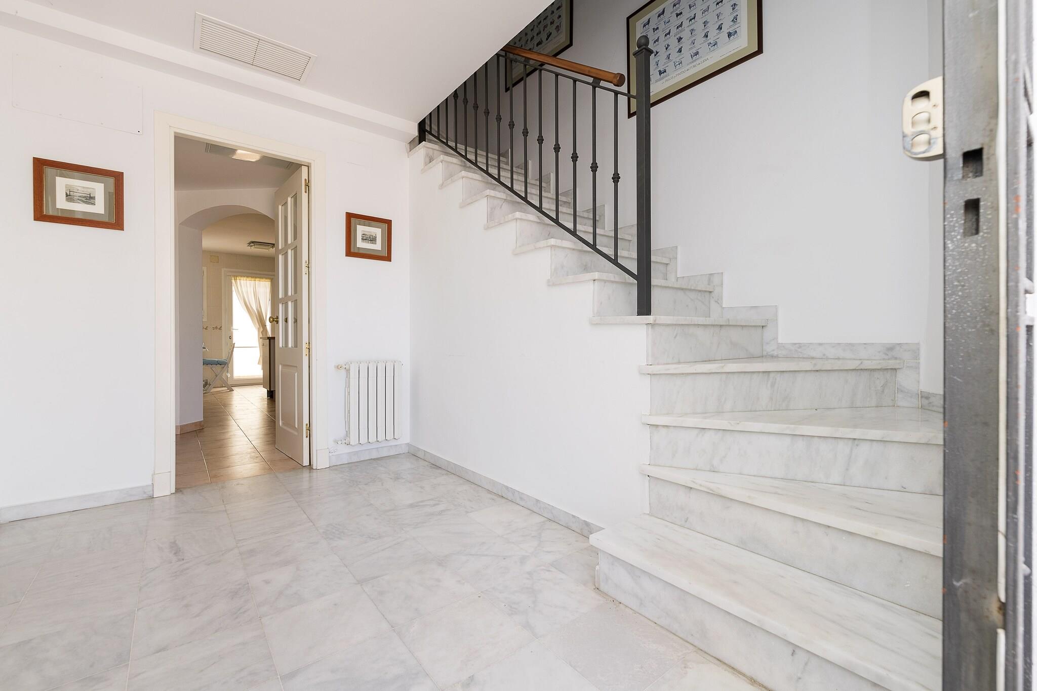 Im Außenbereich dieser fantastischen Wohnanlage, in der sich die Unterkunft befindet, finden Sie einen Gemeinschaftspool mit einer Größe von 19m x 8m und einer Tiefe von 1m bis 2m. Auf der privaten, möblierten Terrasse Ihrer Unterkunft können Sie sich auf einer der Liegen von der Sonne verwöhnen lassen, lange Abende mit Ihren Lieben auf den Outdoor-Sofas verbringen oder den Tisch für die Mahlzeiten im Freien decken. Das Haus liegt in einer Wohnanlage und hat direkte Nachbarn. Die Räume des Hauses verteilen sich über 3 Etagen. Im Erdgeschoss befindet sich das klimatisierte Wohn-Esszimmer mit Smart TV und bequemen Sofas. Die Küche, mit Cerankochfeld, ist unabhängig und verfügt über alle notwendigen Utensilien, um bequem zu kochen. Von den 5 klimatisierten Schlafzimmern befindet sich eines mit zwei Einzelbetten auf dieser Etage. Ein Badezimmer mit Dusche vervollständigt die Etage. Die Treppe führt in den ersten Stock, wo sich drei Schlafzimmer mit je zwei Einzelbetten befinden. Eines davon hat ein eigenes Bad mit Badewanne. Ein weiteres Badezimmer mit Badewanne ist für alle Bewohner zugänglich. In der obersten Etage schließlich befindet sich ein Schlafzimmer mit zwei Einzelbetten, eigenem Bad mit Dusche und direktem Zugang zur zweiten Terrasse des Hauses. Bis zu zwei weitere Gäste können, dank des Schlafsofas im Wohnzimmer, untergebracht werden. Zwei Ventilatoren, Waschmaschine, Bügeleisen und Bügelbrett stehen zu Ihrer Verfügung. Wenn Sie mit Ihrem Baby reisen, können wir ein Kinderbett und einen Hochstuhl bereitstellen. In el Puerto de Santa María ist eine abwechslungsreiche Freizeitgestaltung sehr gut möglich. Zum einen gibt es feine Sandstrände und kristallklares Wasser, wie die Strände Valdelagrana und La Muralla, ideal für lange Strandtage und Wassersport. Ein reiches historisches und kulturelles Erbe mit Sehenswürdigkeiten wie der Burg von San Marcos, der Iglesia Mayor Prioral, für alle Kulturinterresierten. Die alten Weinkellerei Osborne ist auf jeden Fall einen Besuch wert. Ein Anziehungspunkt für Besucher ist das historische Stadtzentrum mit seinen gepflasterten Straßen, malerischen Plätzen und historischen Gebäuden, in denen sich Bars und Restaurants befinden, die lokale Spezialitäten wie den berühmten Pescaíto frito (frittierter Fisch) anbieten. Außerdem liegt die Stadt an der Weinstraße von Jerez, einer Weinregion, die für ihre Bodegas und Weine berühmt ist, sodass es möglich ist, diese zu besuchen und zu verkosten. Wir empfehlen einen Besuch der Stadt Cádiz, die nur 20 Autominuten entfernt liegt und für ihre beeindruckende Altstadt, ihre Strände und ihre lebhafte Atmosphäre bekannt ist. Eventuelle Nebenkosten müssen beim Anbieter nachgefragt werden. Haustiere sind verboten. Partys oder ähnliche Veranstaltungen sind nicht gestattet. Es gibt Parkplätze für 2 Autos in der Garage. Bitte beachten Sie, dass die Öffnungs- und Schließzeiten des Gemeinschaftspools den jeweiligen Hausordnungen unterliegen und je nach Saison ohne vorherige Ankündigung variieren können. Aktuelle Informationen erhalten Sie bei Ihrer Ankunft. Entfernungen Strand: 2.5 km - Playa de las Redes Flughafen: 28.1 km - Aeropuerto de Jerez Golfplatz: 11.3 km - Rota Club de Golf Ortsmitte: 2.2 km - El Puerto de Santa María Bahnhof: 5.5 km - Estación de tren Valdelagrana Bushaltestelle: 0.096 km - Parada de autobús Fähre: 2.7 km - Muelle del Catamarán Krankenhaus: 1.5 km - Hospital General Santa María del Puerto Touristen Lizenz: VUT/CA/03399Einheitsregister: ESFCTU0000110210005954460000000000000000VFT/CA/033996