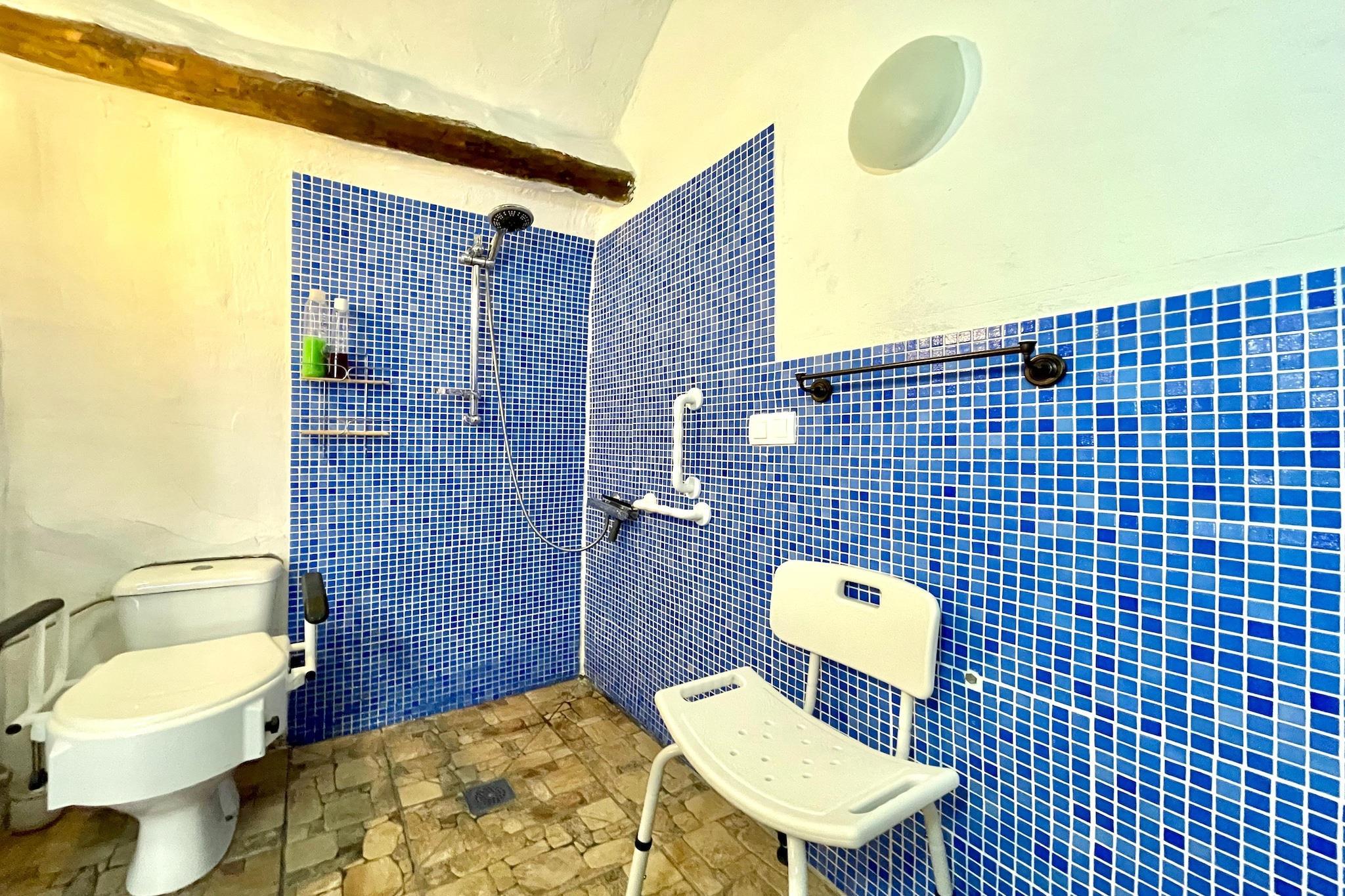Diese wunderschöne Unterkunft besteht aus drei einzigartigen Höhlenhäusern, EdiNah, die elegant eingerichtet und mit allen Annehmlichkeiten ausgestattet sind. Sie bietet außerdem Zugang zu zahlreichen Gemeinschaftseinrichtungen. Die Residenz befindet sich in El Margen, Cúllar, unweit eines Supermarkts und mehrerer gemütlicher Restaurants. Auch viele weitere Sehenswürdigkeiten wie Cuevas und die Wüste von Tabernas sind einen Besuch wert. Cúllar hat eine reiche Geschichte, die bis in die Römerzeit zurückreicht, was sich in seiner Architektur und seinen Denkmälern widerspiegelt. Erkunden Sie die charmanten Straßen der Altstadt und bewundern Sie die maurischen Einflüsse in den Gebäuden. Die Stadt ist auch für ihre farbenfrohen Feste bekannt, wie zum Beispiel die Feria de Cúllar, eine jährliche Veranstaltung im August. Die Straßen sind voller Musik, Tanz und Trachten, und es gibt verschiedene Aktivitäten für Jung und Alt. Die Unterkunft selbst verfügt über gemütliche Schlafzimmer, komfortable Badezimmer, ein Wohnzimmer mit Kamin, ein Spiel- und Lesezimmer, eine voll ausgestattete Küche und einen schönen Außenbereich mit Gartenmöbeln und Gasgrill (gegen Aufpreis). Die Unterkunft ist besonders barrierefrei und verfügt über eine Dusche und barrierefreie Hilfsmittel in den Badezimmern des Hauses. Studenten ist der Zutritt zu diesem Haus nicht gestattet. Hinweis: Das Schwimmbad ist vom 1. Oktober 2025 bis zum 1. März 2026 geschlossen.