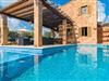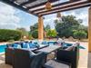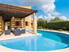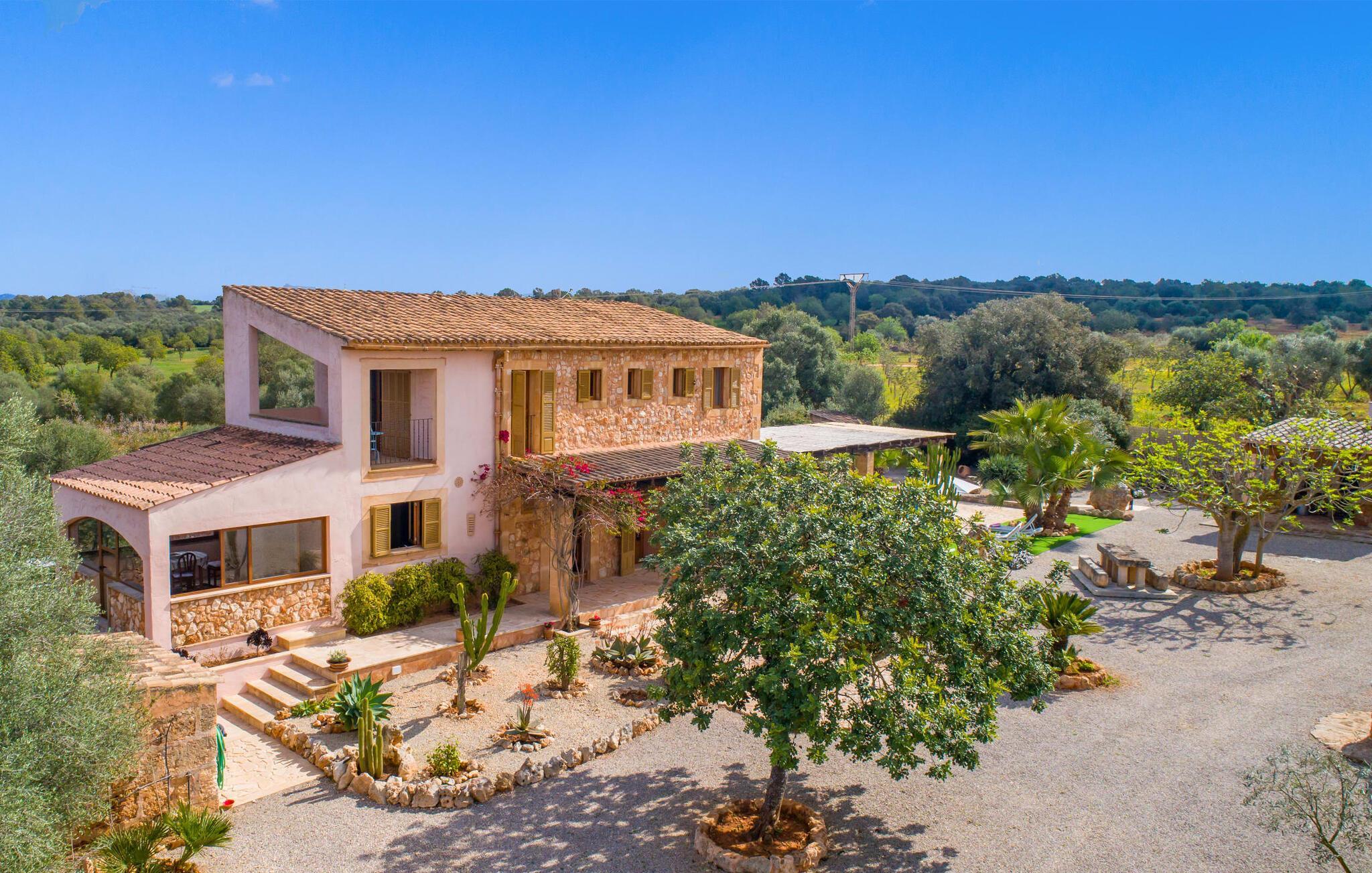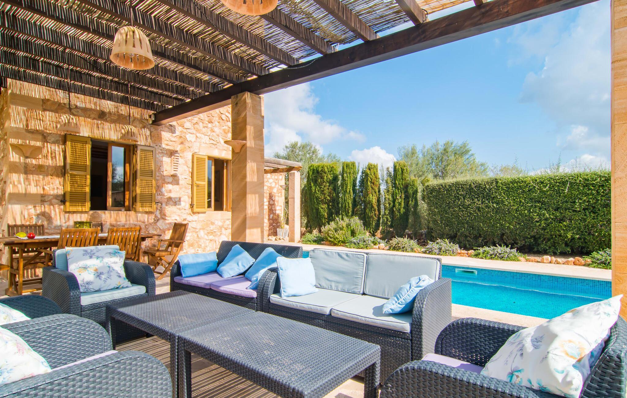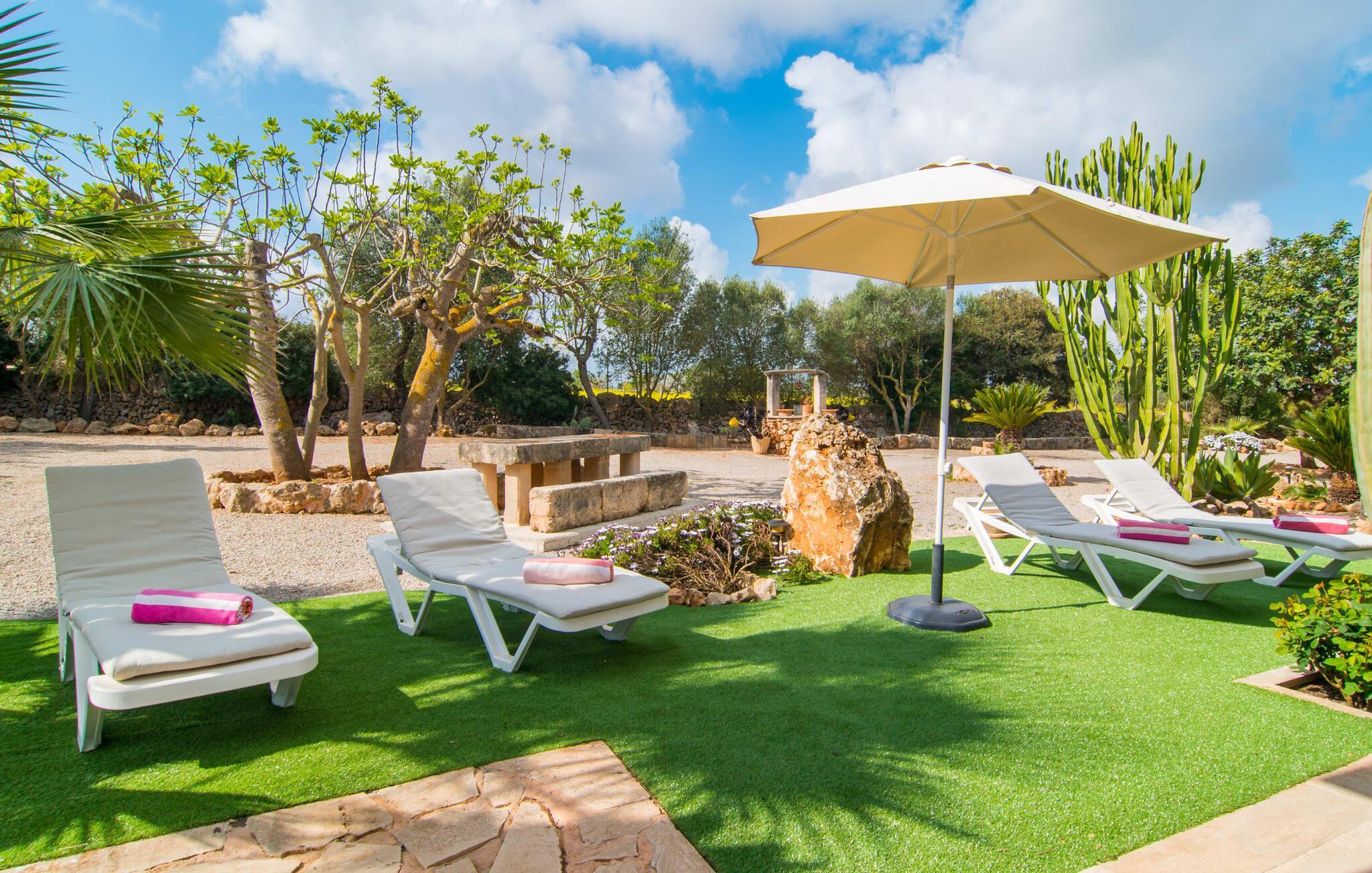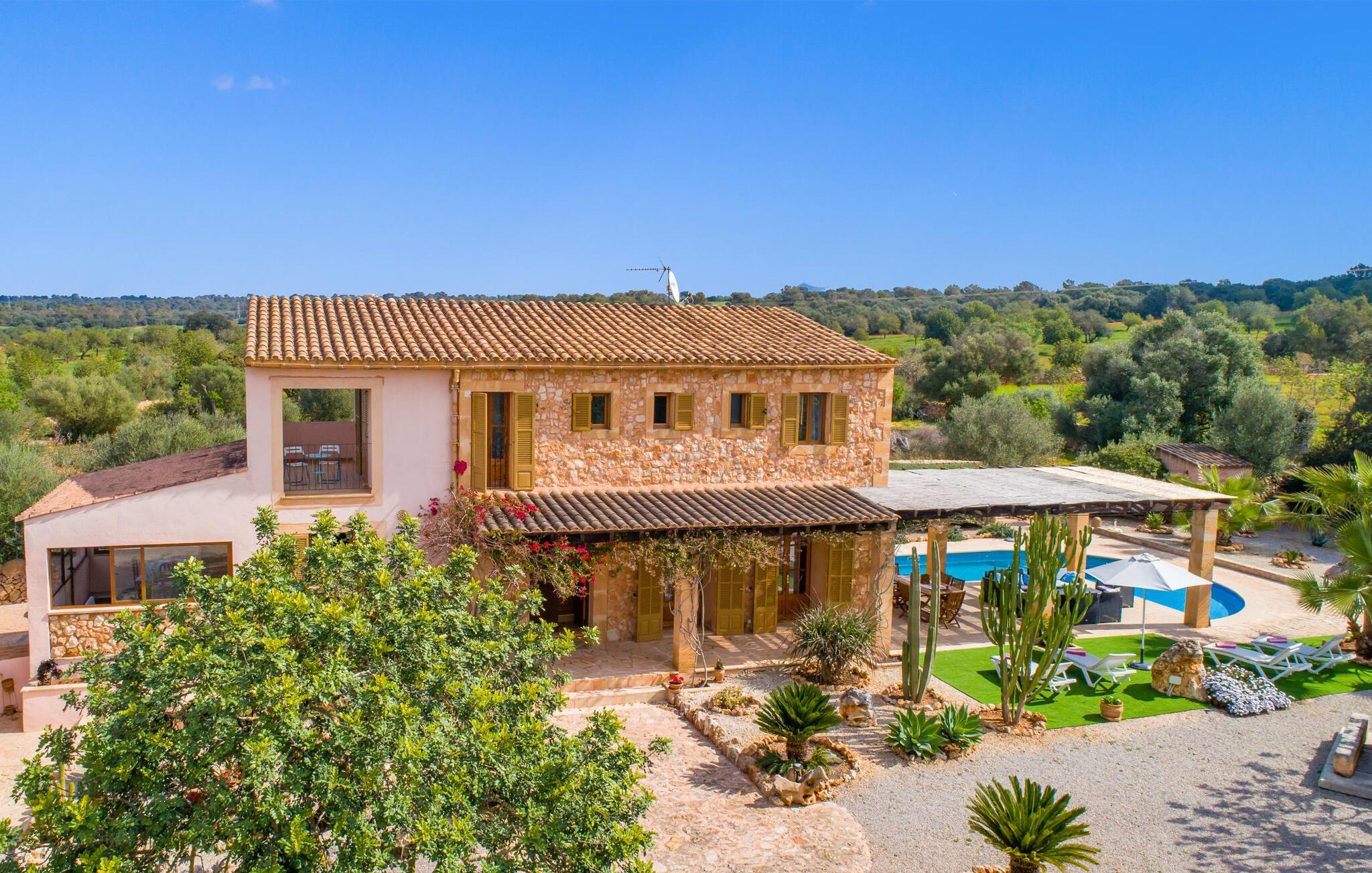 Man könnte fast glauben, dass dieses safrangelbe mediterrane Villenanwesen mit seinen Oliven-, Feigen- und Johannisbrotbäumen, seinen Palmen, Zypressen und Kakteen aus der fruchtbaren Erde von Campos selbst entstanden sei. Neu erbaut im Jahr 2015, so ehrlich, unkompliziert und sonnengereift wie ein guter Wein, stellenweise etwas prickelnd und voller Charakter, schon der erste Vorgeschmack macht Lust auf mehr. Ein einzigartiger halbmondförmiger Pool rund um die überdachte Terrasse bietet alles Wasser, das Sie für Ihr tägliches Bad benötigen – ein echter Hingucker! Hier können Sie den Tag gemütlich ausklingen lassen – bei einem späten Frühstück, einer Zeitschrift oder einem Glas Wein – während die Kinder sicher um Sie herum planschen. Man könnte fast von einem Urlaub im Schwimmbad statt am Pool sprechen und könnte in Versuchung geraten, direkt aus einem der Fenster direkt ins kühle Nass zu springen (aber bitte nicht – das ist leichtsinnig und man verletzt sich). )...aber „Ca Na Carmen“ sorgt dafür, dass Sie nicht den Kopf verlieren.