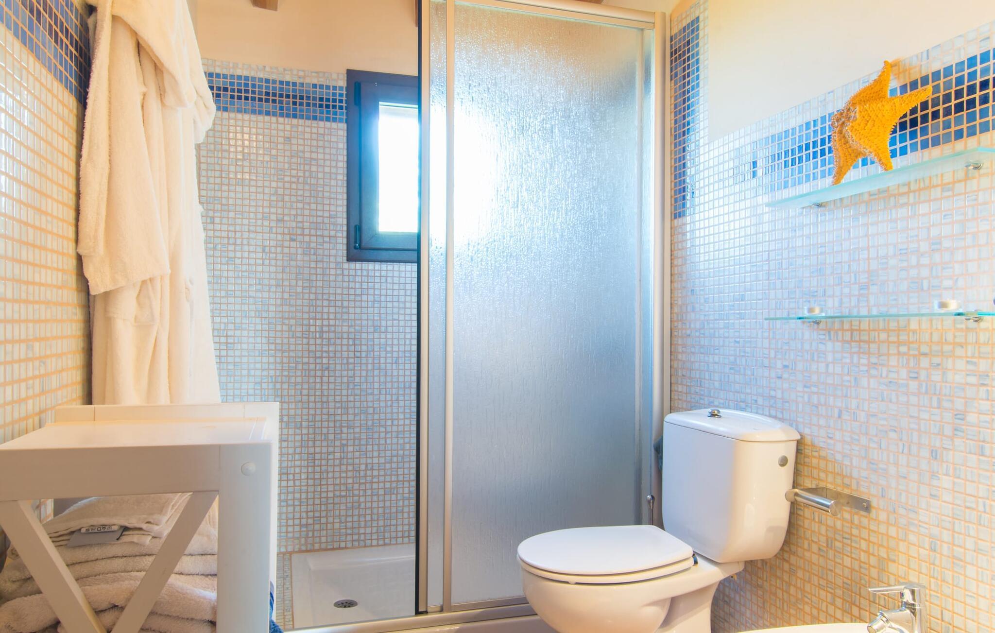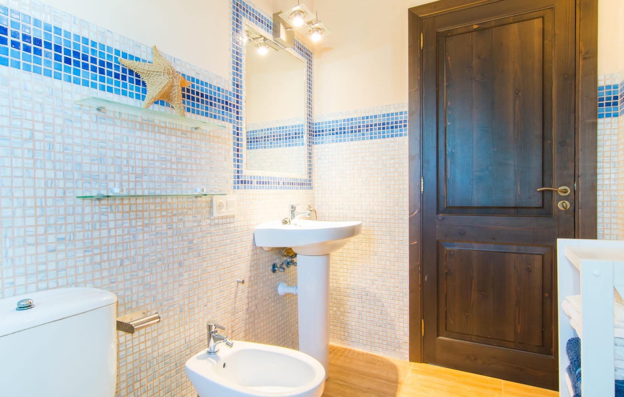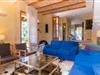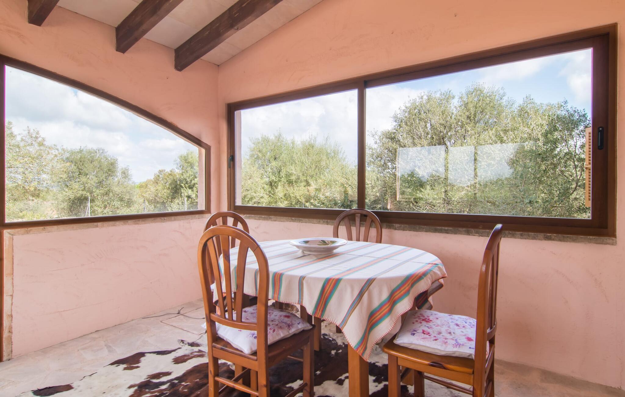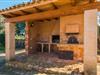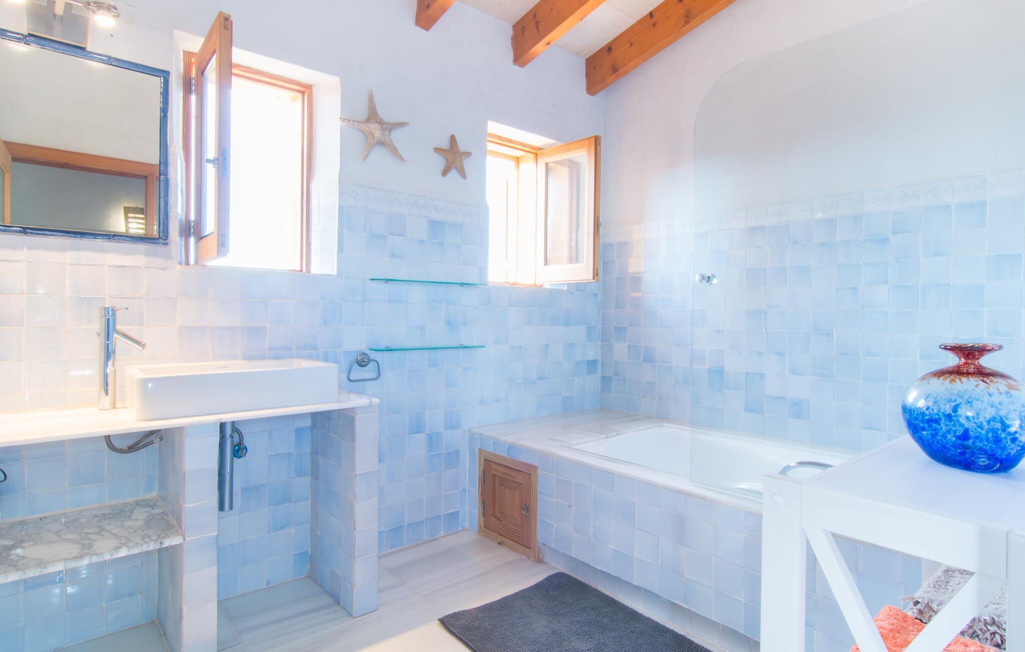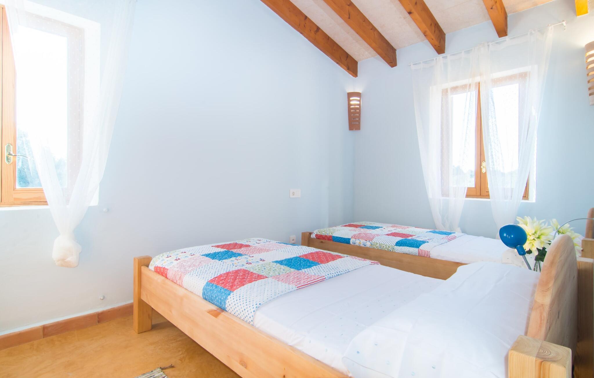 Wie eine Frucht, die hält, was ihre äußere Schale verspricht, enttäuscht auch das Innere nicht: mallorquinisch, bodenständig, sonnenhell und blumig. Eine frische Brise scheint durch das Haus zu wehen und luftige Vorhänge verleihen dem Raum eine leichte Note. Der großzügige, offene Wohn-, Koch- und Essbereich umgibt gemütlich leuchtend blaue Sofas, die zum Eintauchen in einen Filmabend einladen. Natürlich können Sie auch in den angenehm schlichten Schlafzimmern mit Massivholzbetten ins Reich der Träume abdriften; Die Schlafzimmer sind wahlweise mit dunkleren oder helleren Möbeln eingerichtet und eines der oberen Schlafzimmer verfügt über direkten Zugang zu einem geschützten Balkon mit herrlicher Aussicht über die Bäume bis zu den dahinter liegenden Bergen. Wer hier schläft, kann die Tür ruhig offen lassen. Die Badezimmer – eines im Erdgeschoss und eines im Obergeschoss – werden jeweils von zwei Schlafzimmern geteilt. Bleibt nur noch die moderne, gut ausgestattete Küche mit eigenem Plätzchen an der Sonne zu erwähnen, an deren Wänden knackig-frisches Gemüse vom Wochenmarkt in Campos appetitlich hängt: ein Paradies für Vegetarier und Rohkost-Fans – wenn das so wäre Da wäre nicht der fantastische gemauerte Grill direkt vor der Tür, der geradezu danach schreit, benutzt zu werden. Es wäre eine Schande, nicht... ¡Buen provencho!