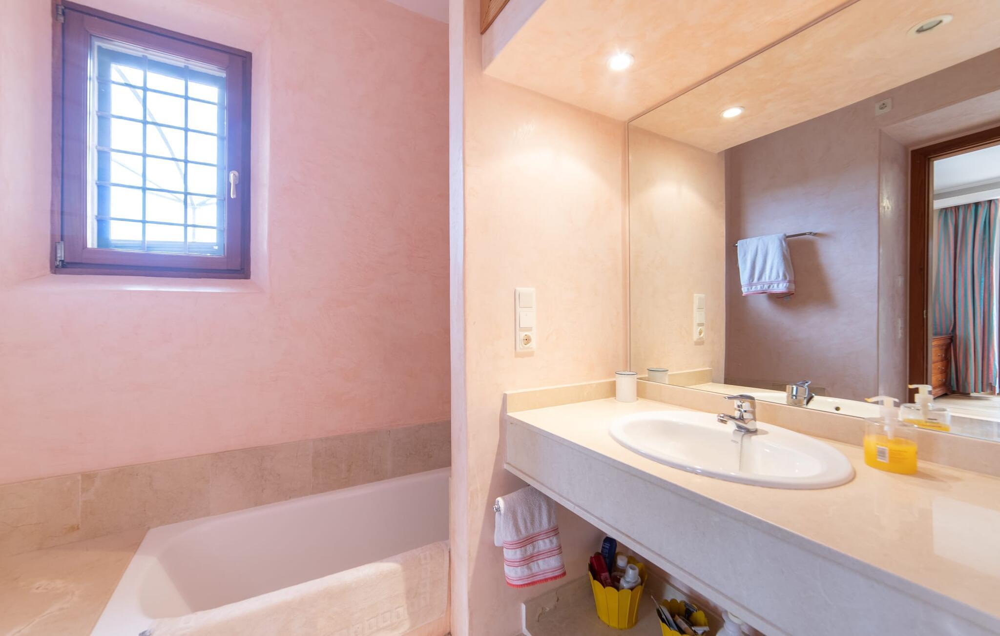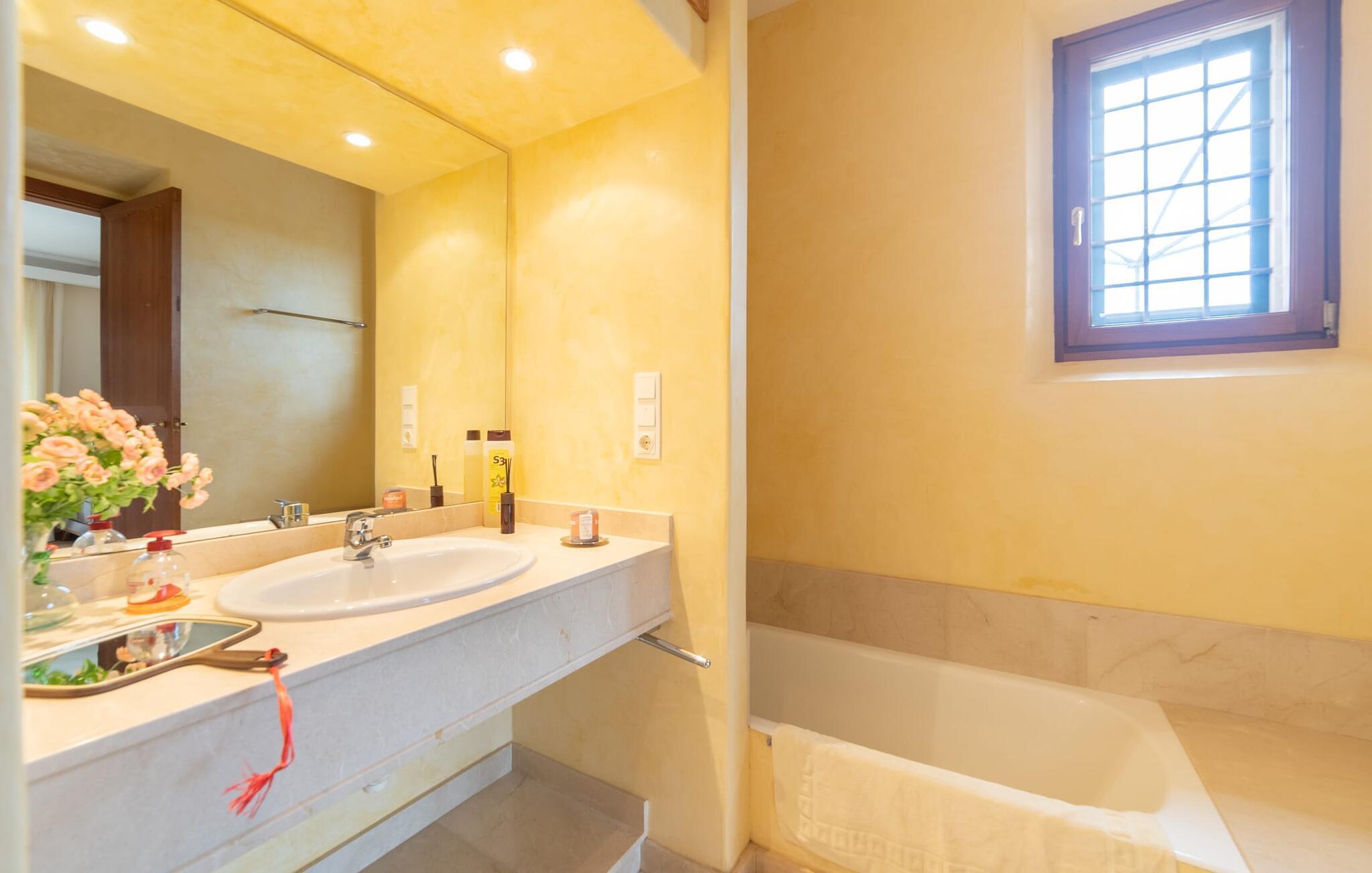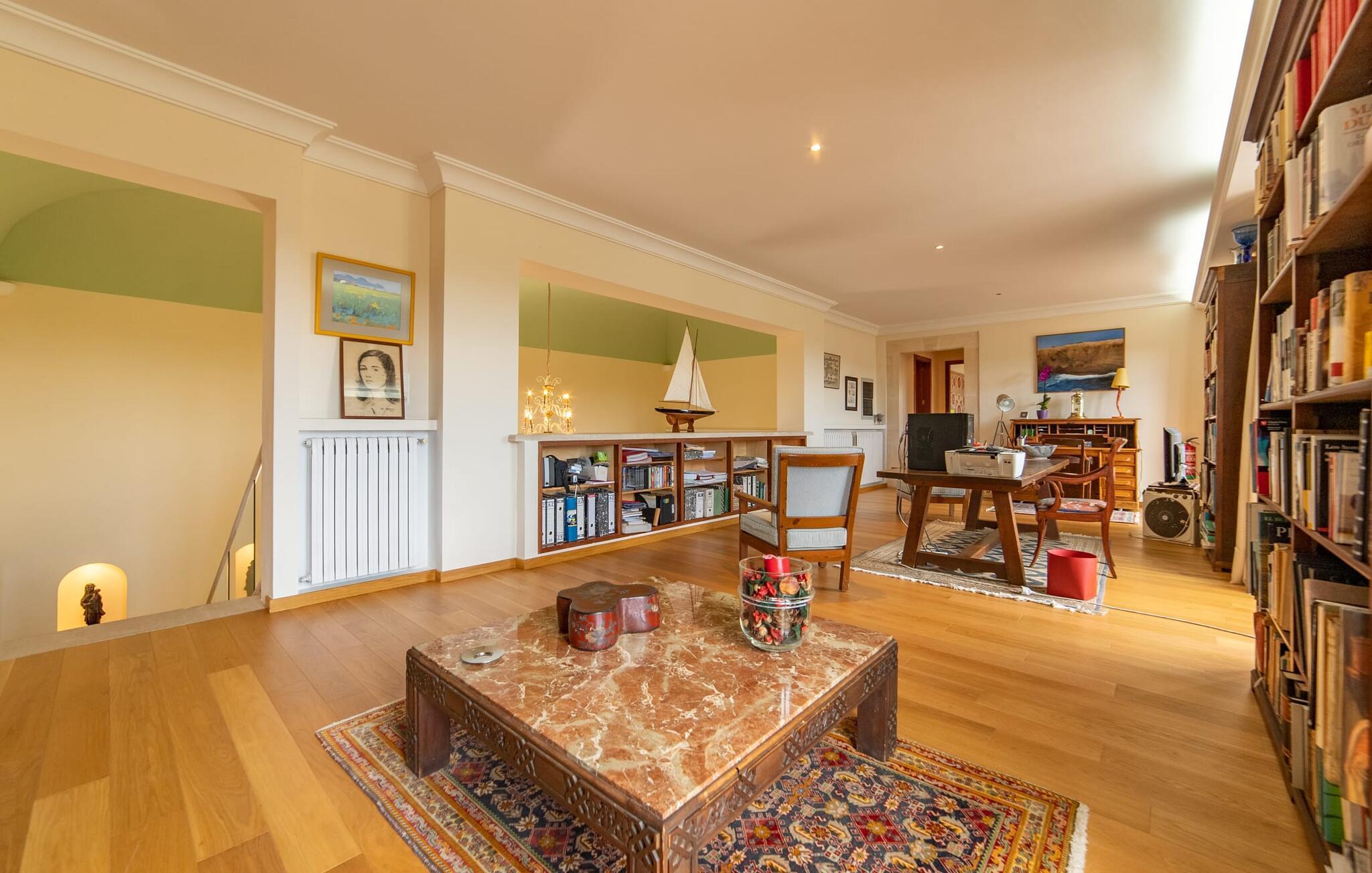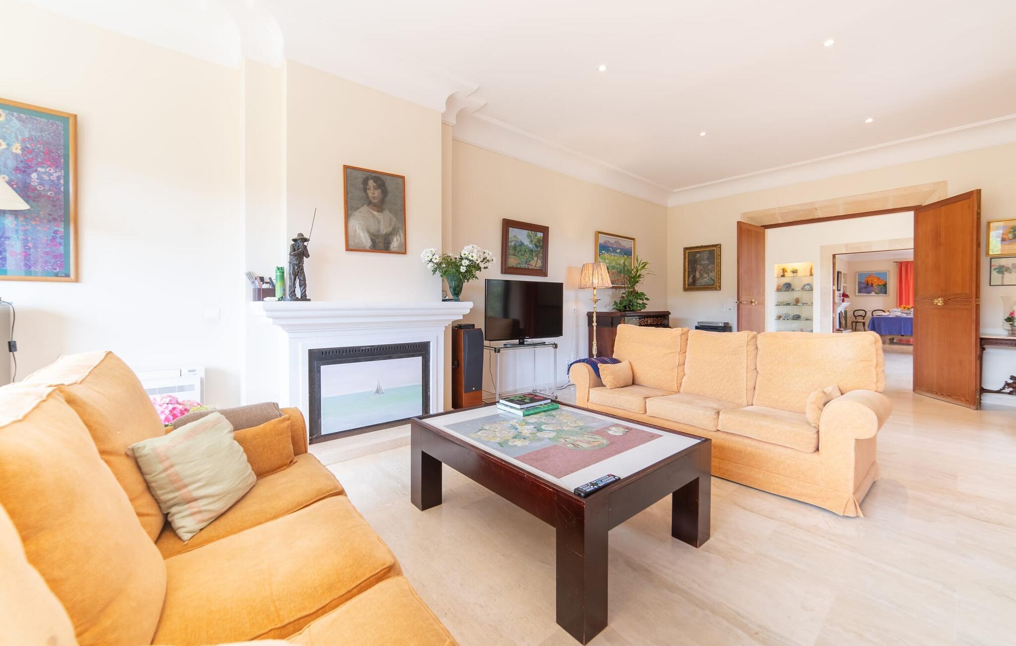 Von hier aus gelangt man direkt in das stilvolle und sehr großzügige Innere des Hauses. Der großzügige Wohnraum erstreckt sich über zwei Wohnebenen. Im Erdgeschoss gibt es ein großes Esszimmer und ein gemütliches Wohnzimmer mit Kamin und Klimaanlage. Auf dieser Etage befindet sich außerdem eine voll ausgestattete Küche, die ebenfalls viel Platz bietet, sowie ein gemütliches Schlafzimmer mit Doppelbett. Im Obergeschoss dieses Bauernhauses auf Mallorca befindet sich eine schöne Bibliothek. Außerdem gibt es noch die angenehmen vier Doppelzimmer, jeweils mit eigenem Bad. Im Obergeschoss gibt es außerdem eine große Terrasse, von der aus Sie eine spektakuläre Aussicht genießen können. „Ca Nostra de Esporlas“ – ein tolles Domizil für Naturliebhaber, Ruhesuchende und Individualisten!