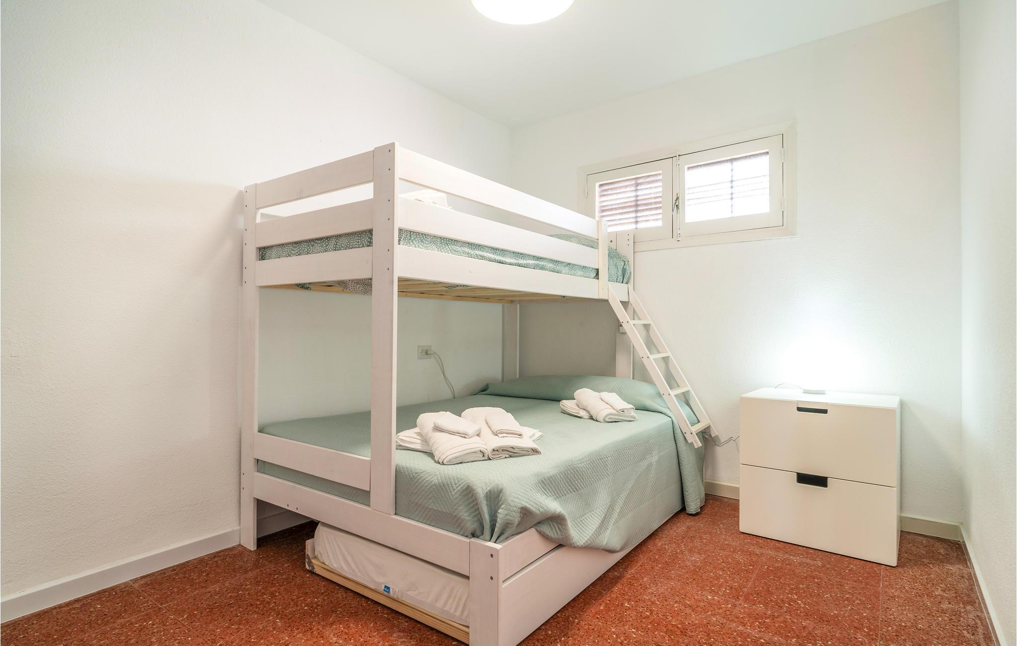 Schlafzimmer (nr. 2) - 1 Schlafmöglichkeit. (Einzelbett(en)). 2 Schlafmöglichkeiten. (Doppelbett(en)). 1 Schlafmöglichkeit. (Etagenbett).