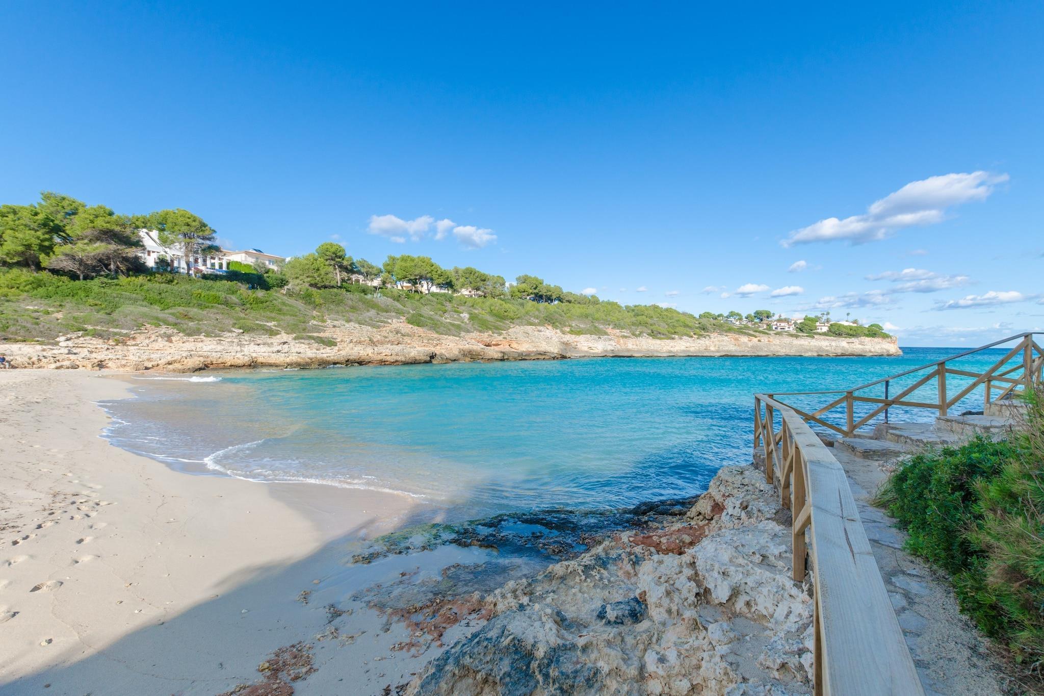 Die Außenbereiche dieses Apartments werden Sie verzaubern. Nicht nur die unglaubliche Größe der Terrasse und die grandiose Ausstattung, sondern vor allem der unglaublich schöne Ausblick auf die idyllische Bucht Cala Mandia wird Sie begeistern. Jeden Morgen können Sie sich erst ein Frühstück richten und danach den Ausblick auf einer der 6 Sonnenliegen mit Meeresblick genießen, oder einen Tag am Strand mit einem Barbecue ausklingen lassen. Und das Beste daran, das Gebäude verfügt über einen direkten Zugang zum Strand. Im Inneren erwartet Sie ein angenehmes Ambientes. Der Ess- und Wohnbereich ist perfekt, um hier gemeinsam zu essen und am Sofa mit Satelliten TV zu entspannen. Weiter geht es in die mit einem Cerankochfeld und allen wichtigen Utensilien ausgestatte Küche. Hier finden Sie auch die Waschmaschine, Bügelbrett und Bügeleisen. Es gibt drei Schlafzimmer mit Kleiderschrank, eines mit einem Doppelbett und zwei mit je zwei Einzelbetten. Zwei Badezimmer, eines mit Badewanne und eines mit Dusche komplettieren das Apartment. Der Wohn- und Essbereich, sowie die Schlafzimmer sind mit einer Klimaanlage ausgestattet. Kinderbettchen und Hochstuhl können gerne zur Verfügung gestellt werden. Die Wohnung befindet sich im ersten Stock und es gibt keinen Aufzug. Cala Mandia ist eine Küstensiedlung im Verwaltungsgebiet von Manacor und eine der wohl spektakulärsten Buchten auf der Insel. Das Apartment befindet sich lediglich 200 m entfernt und verfügt über einen direkten Zugang. In Cala Mandia finden Sie Bars, Restaurants, einen kleinen Einkaufsladen, eine Bushaltestelle und vieles mehr. Für den größeren Einkauf empfiehlt sich der Weg nach Portocolom oder Manacor. Eventuelle Nebenkosten müssen beim Anbieter nachgefragt werden. Haustiere bis 5.00 kg sind willkommen. Partys oder ähnliche Veranstaltungen sind nicht gestattet. Entfernungen Strand: 0.20 km - Cala Mandia Flughafen: 60 km - Son Sant Joan Golfplatz: 19.6 km - Club de Golf Son Servera Ortsmitte: 0 km - Cala Mandia Bahnhof: 14.2 km - Manacor Bushaltestelle: 0.26 km - Cala Mandia Fähre: 55.8 km - Puerto de Alcúdia Krankenhaus: 15.2 km - Hospital de Manacor Touristen Lizenz: ETVPL/12558Einheitsregister: ESFCTU00000702300116993700000000000000000ETVPL/125589Bei der Anreise muss die Ecotasa (Touristensteuer der Balearen) bar bezahlt werden. Der zu zahlende Betrag beträgt zwischen 0.55EURO pro Nacht und Gast in der Nebensaison und 2.2EURO pro Nacht und Gast in der Hochsaison. Ab dem 9. Tag reduziert sich die Steuer um die Hälfte. Personen unter 16 Jahren sind davon ausgenommen.Die Kaution ist bei Ankuuft direkt an den Eigentümer zu übergeben.