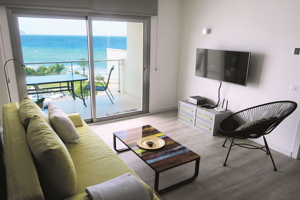 Wohnen wie bei Freunden! Individuell designtes Strandapartment im 6. Stock mit majestätischem Blick aufs Meer in erster Linie. Die 64 m² große Ferienwohnung im 6. Stock (Aufzug vorhanden) mit Meerblick aus allen Fenstern bietet ein Schlafzimmer, Bad mit Dusche, einen großen Wohn-/Ess-/Küchenbereich und einen Abstellraum. Der 11m² große, überdachte Balkon blickt Richtung Osten auf die Bucht von Cala Millor, gibt aber im hinteren Teil auch den Blick landeinwärts auf die Berge im Westen frei. Mit viel Liebe zum Detail ist die helle Ferienwohnung stylish nach dem Motto 'Modern purism meets Belle Époque' eingerichtet. Das Doppelbett im Schlafzimmer ist 180 x 200 cm groß (getrennte Matratzen) und die Wohnzimmer-Couch ist ausziehbar (ca. 150 x 200 cm) - so bietet die Ferienwohnung Raum für 3 Personen. Die Ferienwohnung bietet zudem noch Bücher (deutsch, englisch), Spiele, Stereoanlage, Astra-Satellitenreceiver, Flachbild-TV und kostenloses WiFi