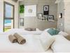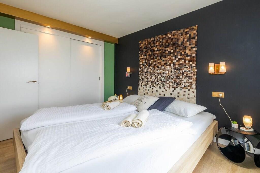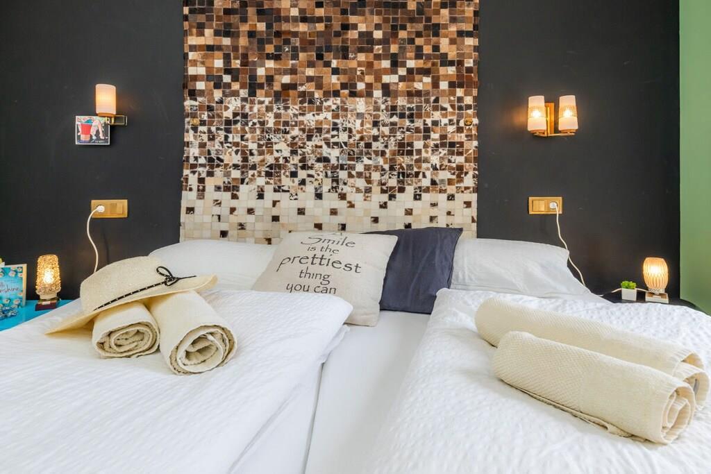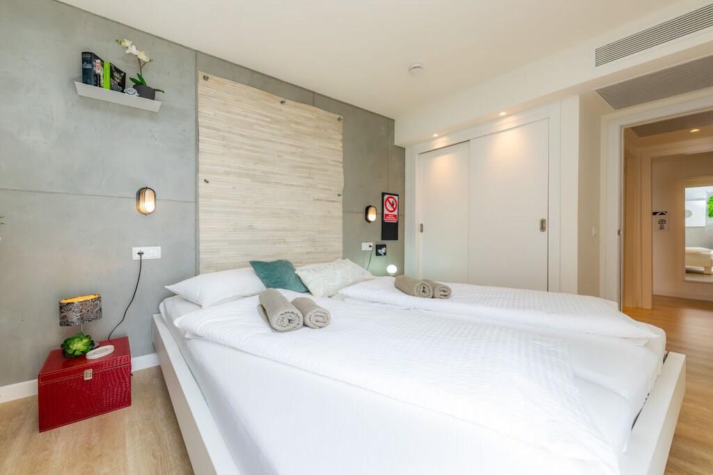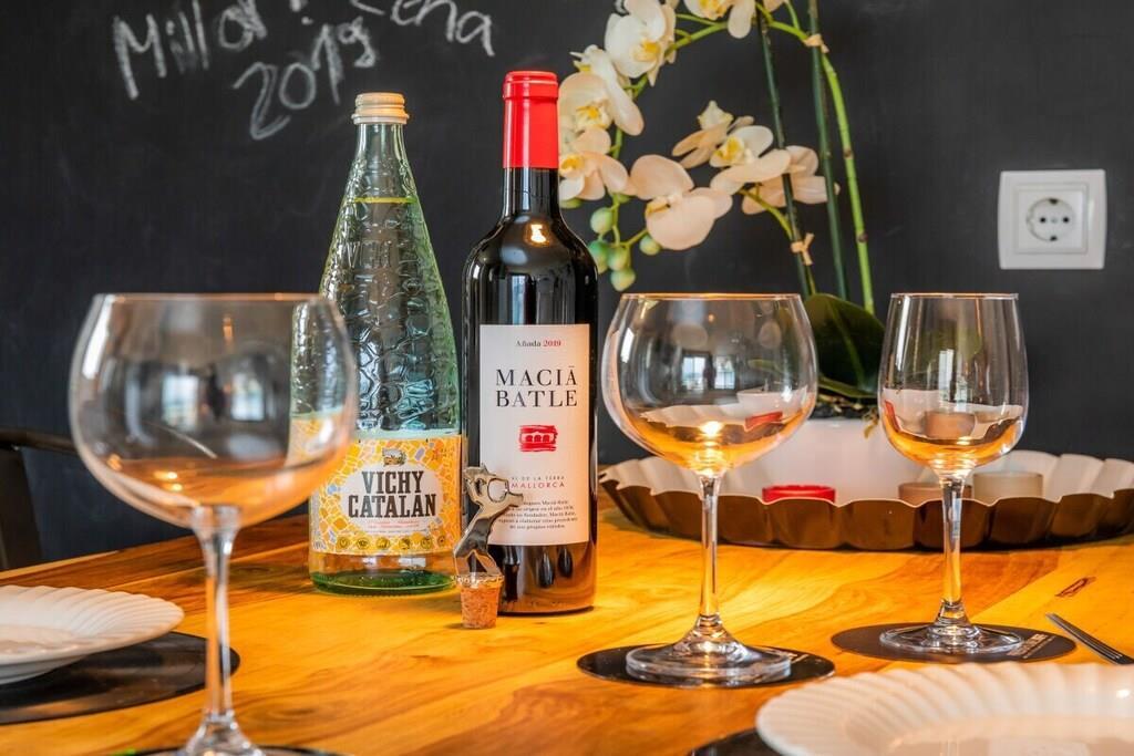 Wohnen wie bei Freunden! Individuelle Strandferienwohnung im Loft-Style in erster Meereslinie mit uneingeschränktem Panoramablick über die ganze Bucht. Die 81 m² große Ferienwohnung im 2. Stock (Aufzug vorhanden) bietet 2 Schlafzimmer, Bad mit Dusche, einen großen Wohn-/Ess-/Küchenbereich, einen Abstellraum und einen 11m² großen, überdachten Balkon mit Blick über die gesamte Bucht in vorderster Lage zum Meer. Auch aus jedem Fenster kann man Strand, Palmen und den Naturpark Punta de n'Amer überblicken. Die helle Ferienwohnung ist nach dem Motto 'Vintage industrial meets music' gestaltet, es dominieren Echtholz, Leder und Metall. Beide Schlafzimmer bieten ein 180 x 200 cm großes Doppelbett (getrennte Federkernmatratzen) und die Wohnzimmer-Couch ist ausziehbar (150 x 200 cm) - so bietet das Apartment Raum für 5 Personen. Die Ferienwohnung bietet zudem noch Bücher (deutsch, englisch), DVDs, Spiele, Stereoanlage mit CD/Radio/USB, Astra-Satellitenreceiver, schwenkbar an der Wand montierter LED-TV und kostenloses WiFi.