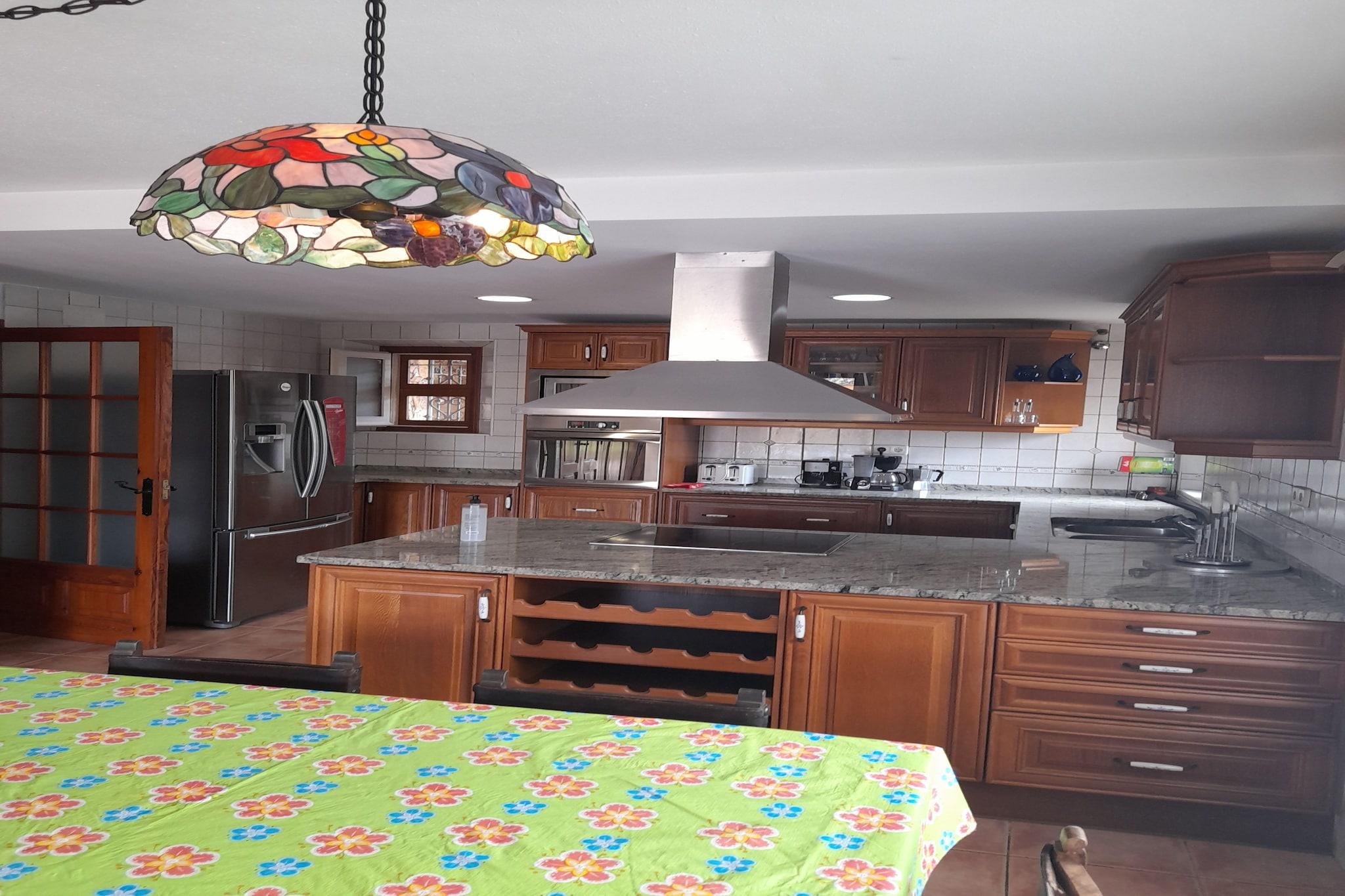 Privater Pool & Garten Entspannen Sie in dieser geräumigen Villa in Calonge inmitten der Natur. Genießen Sie den 13 x 6 m großen Salzwasserpool, Sonnenliegen, einen Grillplatz und einen Billardtisch für Spaß mit Familie und Freunden. Die Villa bietet vier Doppelzimmer und ein Zimmer mit zwei Einzelbetten sowie drei Badezimmer. Eine voll ausgestattete Küche und eine Poolhausküche sorgen für gemütliches Essen, während die Außenterrassen zum Entspannen einladen. Gemütlicher Wohnbereich Das Wohnzimmer verfügt über einen Flachbildfernseher und einen Kamin. Die Essbereiche laden zu gemeinsamen Mahlzeiten ein. Zur Waschküche gehören eine Waschmaschine, ein Trockner, ein Bügeleisen und ein Bügelbrett. Balkone und Terrassen verbinden Innen- und Außenbereich. Der Eigentümer wohnt in einem separaten Haus auf dem Anwesen und bietet so Privatsphäre, ist aber dennoch für Unterstützung erreichbar. Strand & Restaurants Nur 4,5 km von Playa Bahía de Palamós entfernt, ist die Villa ideal, um die Costa Brava zu erkunden. Golfer erreichen einen 16 km entfernten Golfplatz, und die Restaurants in Vall Repòs sind nur 4 km vom Anwesen entfernt. Da der Flughafen 32 km entfernt ist, bietet die Villa einen praktischen und ruhigen Ausgangspunkt, um die Strände, die Landschaft und die Küstenstädte zu genießen.