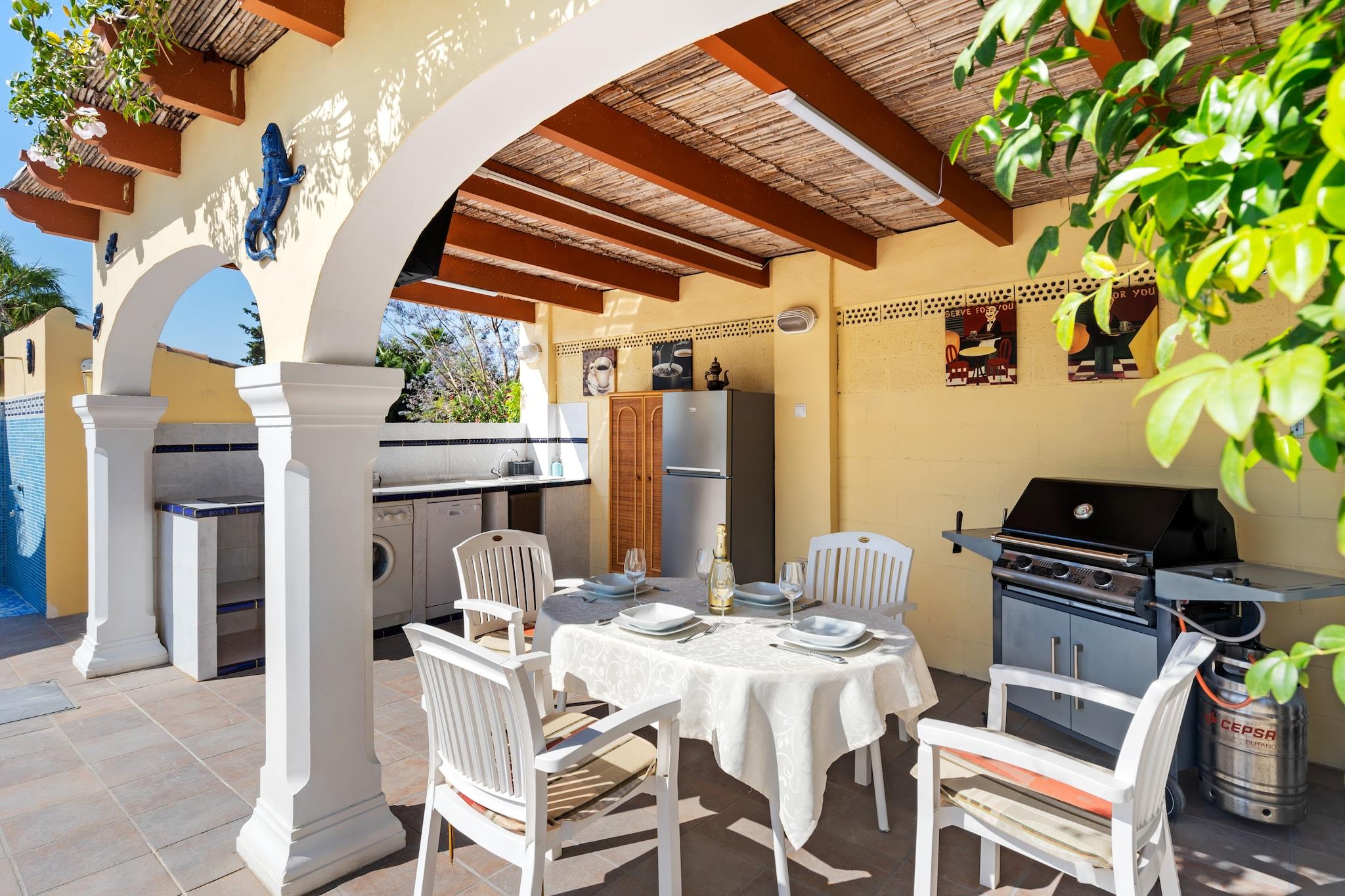 Entspannter Rückzugsort an der Küste Diese geräumige Villa in Calpe bietet einen ruhigen Rückzugsort für Familien oder Gruppen mit bis zu neun Gästen. Die helle und luftige Villa verfügt über einen privaten Pool für erfrischende Sommerbäder, einen sonnendurchfluteten Balkon für wohlige Wärme im Winter und einen Gasgrill für Abendessen im Freien. Mit mehreren Schlafzimmern und Badezimmern bietet das Haus Komfort und Privatsphäre und schafft gleichzeitig den idealen Rahmen für gemeinsame Erinnerungen und entspannte Momente. Fußbodenheizung und Klimaanlage sorgen das ganze Jahr über für einen angenehmen Aufenthalt. Erstklassige Lage & Natur Die Villa liegt in einem farbenfrohen Wohngebiet, nur 3 km vom unberührten Strand Platja de la Fossa und 5 km von der palmengesäumten Promenade von Arenal-Bol entfernt. Naturliebhaber werden den nahegelegenen Naturpark Peñón de Ifac zu schätzen wissen, der sich ideal zum Wandern, Vogelbeobachten und Fotografieren eignet. Die Gegend vereint ruhigen Wohncharme mit einfachem Zugang zum pulsierenden Strandleben und bietet Gästen so die Möglichkeit, sowohl zu entspannen als auch neue Entdeckungen zu entdecken. Restaurants und Annehmlichkeiten in der Nähe Restaurants mit regionaler und internationaler Küche befinden sich im Umkreis von 1 km. Supermärkte für Selbstversorger sind weniger als 3 km entfernt. Für längere Ausflüge ist das Einkaufszentrum Plaza Central nur 3,8 km entfernt. Der Flughafen Alicante liegt 81 km von der Villa entfernt, sodass der Transfer unkompliziert ist. Ob Sie ein Mittagessen mit der Familie am Pool genießen, Küstenwege erkunden oder in den nahegelegenen Restaurants speisen - diese Villa ist der ideale Ausgangspunkt für ein unvergessliches Costa-Blanc-Erlebnis.