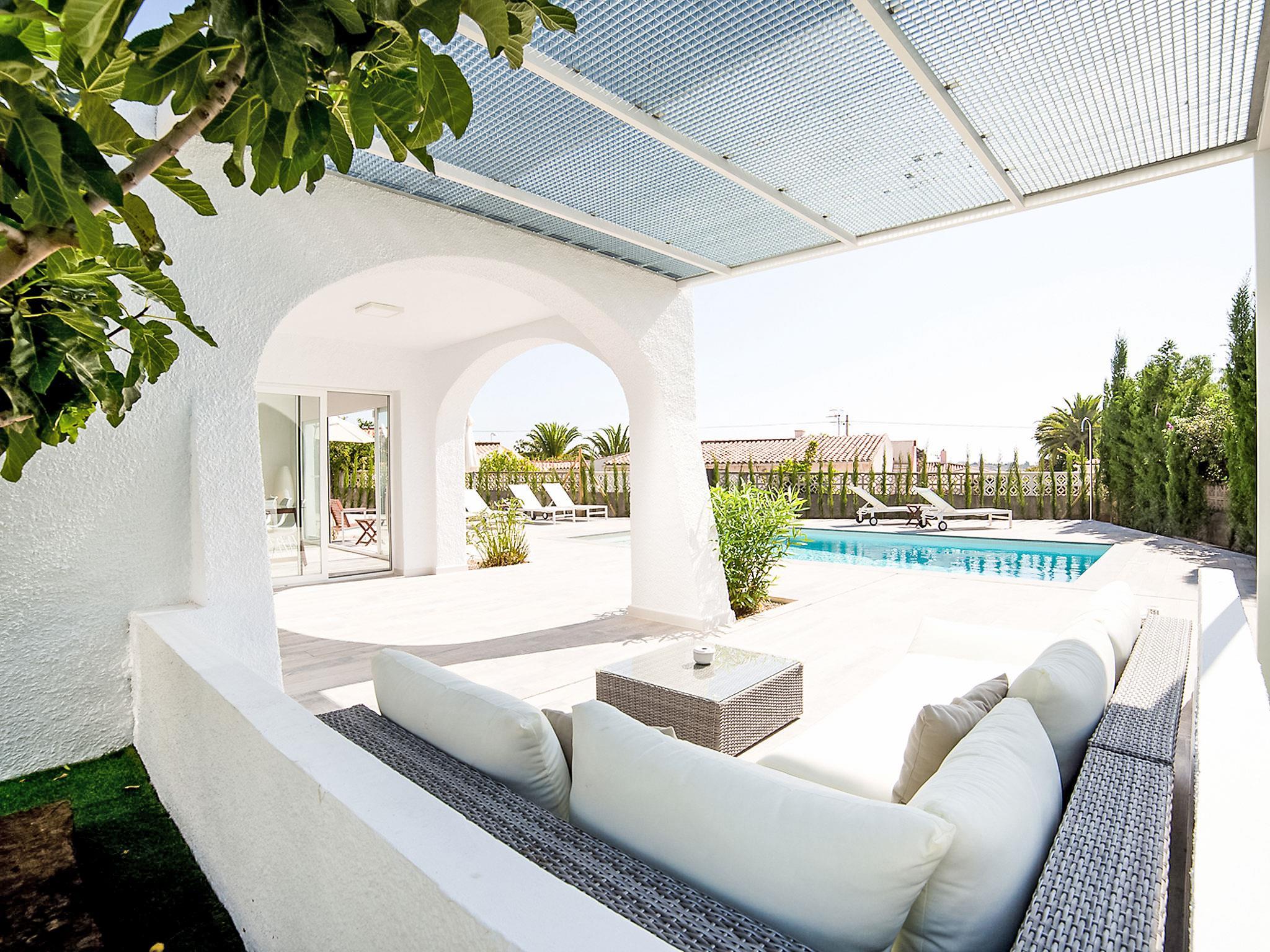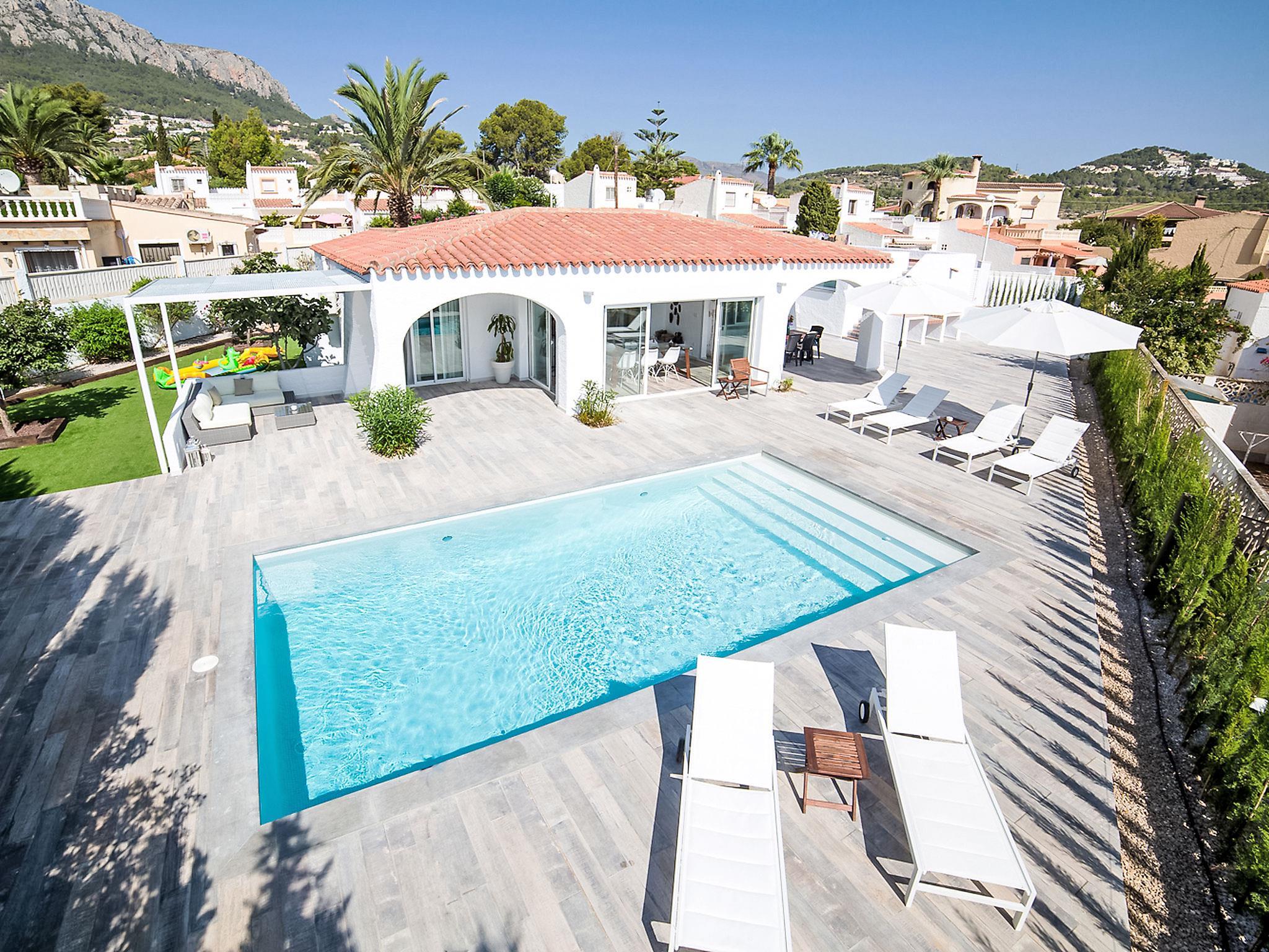 Las Adelfas 1 km von Calpe: Kinderfreundliche, moderne, schöne Villa "Trebol", renoviert im Jahre 2016. Im Ort, 1.1 km vom Zentrum von Calpe, ruhige Lage im Villenviertel, 1.6 km vom Meer, 1.6 km vom Strand. Zur Alleinbenutzung: Grundstück 1'084 m2 (eingezäunt), gepflegter Garten, Schwimmbad eckig, eingezäunt (5 x 8 m, saisonale Verfügbarkeit: 01.Jan. - 31.Dez.) mit Innentreppe. Aussendusche, Gartenmöbel, Grill. Im Hause: Alarmanlage. Parkplatz. Supermarkt 1 km, Bushaltestelle 700 m, Bahnstation 2 km, Sandstrand 1.4 km. Golfplatz (18 Loch) 13.2 km, Tennis 1.3 km. Nahe gelegene Sehenswürdigkeiten: Aqualandia, Mundomar, Terra Mítica, Terra Natura, Benidorm Palace (Benidorm). Der Besitzer akzeptiert keine Jugendgruppen.