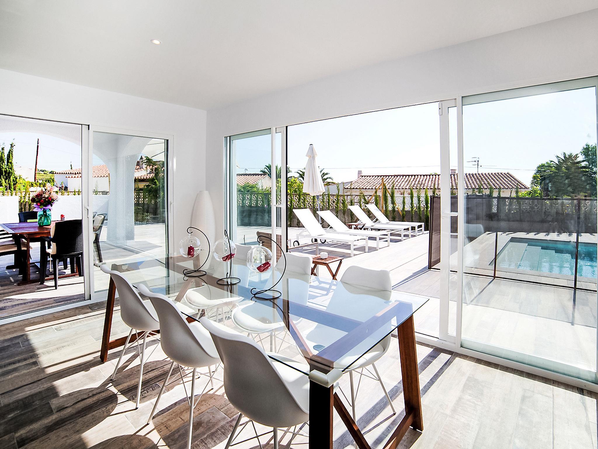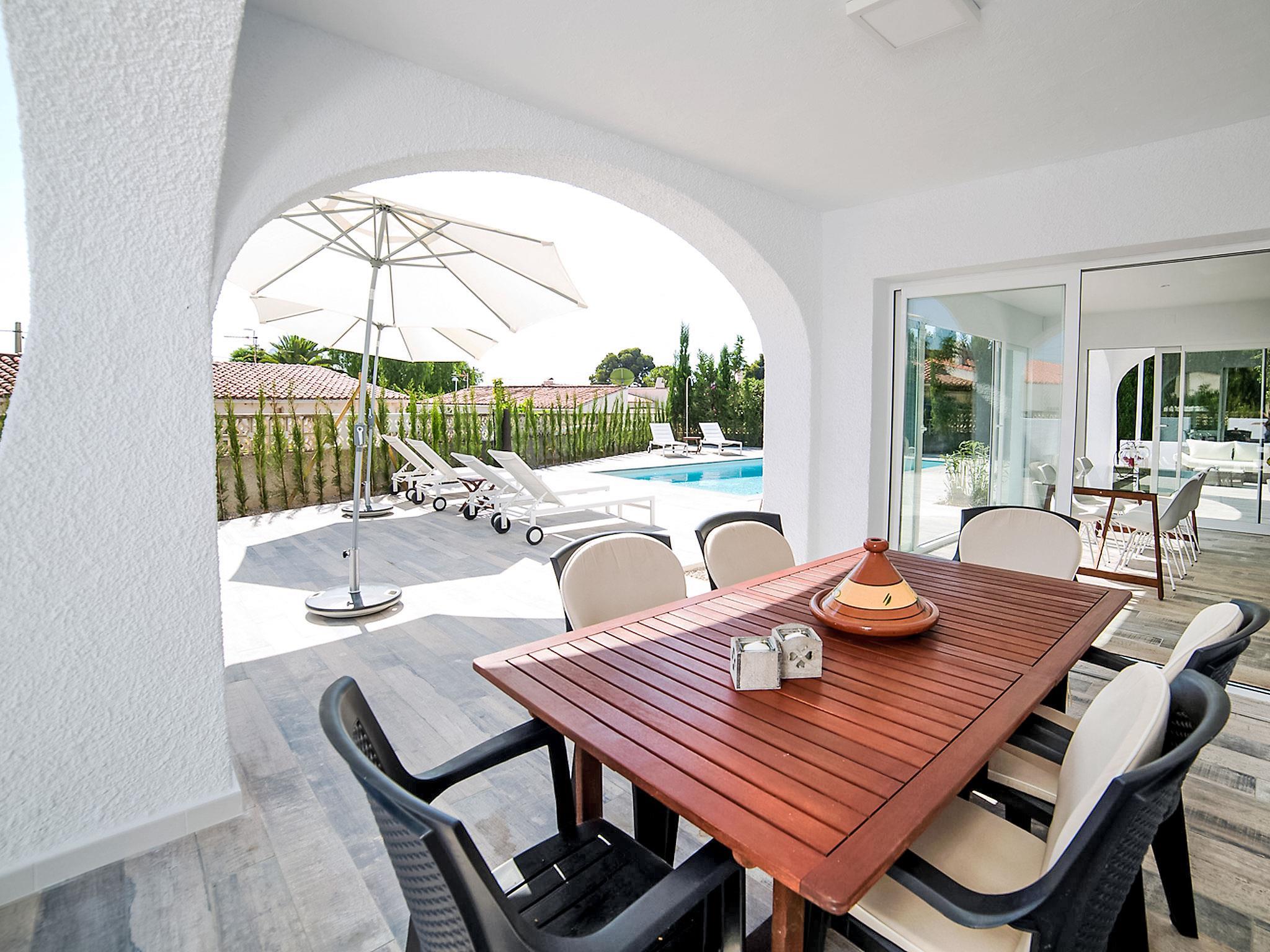 "Trebol", 6-Zimmer-Haus 200 m2. Geräumig, renoviert im Jahre 2016, schön und modern eingerichtet: offenes grosses Wohn-/Esszimmer mit offenem Kamin, Sat-TV, Digital-TV und E-Heizung. Ausgang zur Terrasse, zum Schwimmbad. 1 Zimmer mit 1 franz. Bett (150 cm, Länge 190 cm), Sat-TV, Digital-TV, Klimaanlage und Warmluftheizung. Ausgang zur Terrasse. 1 Zimmer mit 1 franz. Bett (160 cm, Länge 200 cm), Sat-TV, Digital-TV, Klimaanlage und Warmluftheizung. 1 Kinderzimmer mit 1 Ausziehbett (2 Pers. 2 x 90 cm, Länge 190 cm). 1 Zimmer mit begehbarem Kleiderschrank mit 1 franz. Bett (160 cm, Länge 200 cm), Sat-TV, Digital-TV, Klimaanlage und Warmluftheizung. 1 Kinderzimmer mit 1 Wandschrankbett (90 cm, Länge 190 cm), 1 Ausziehbett (2 Pers. 2 x 90 cm, Länge 190 cm), Sat-TV, Digital-TV, Klimaanlage und Warmluftheizung. Küche (5 Kochplatten, Backofen, Geschirrspüler, Mikrowelle, elektrische Kaffeemaschine). 2 Duschen/WC. Terrassenmöbel, Gartengrill, Liegestühle. Zur Verfügung: Waschmaschine, Bügeleisen, Kinderhochstuhl, Babybett bis 2 Jahre, Haartrockner. Internet (WLAN, gratis). Parkplatz. Geeignet für Familien. AT-450669-A // Reg. Nr.: ESFCTU00000302900023849400000000000000000AT-450669-A0