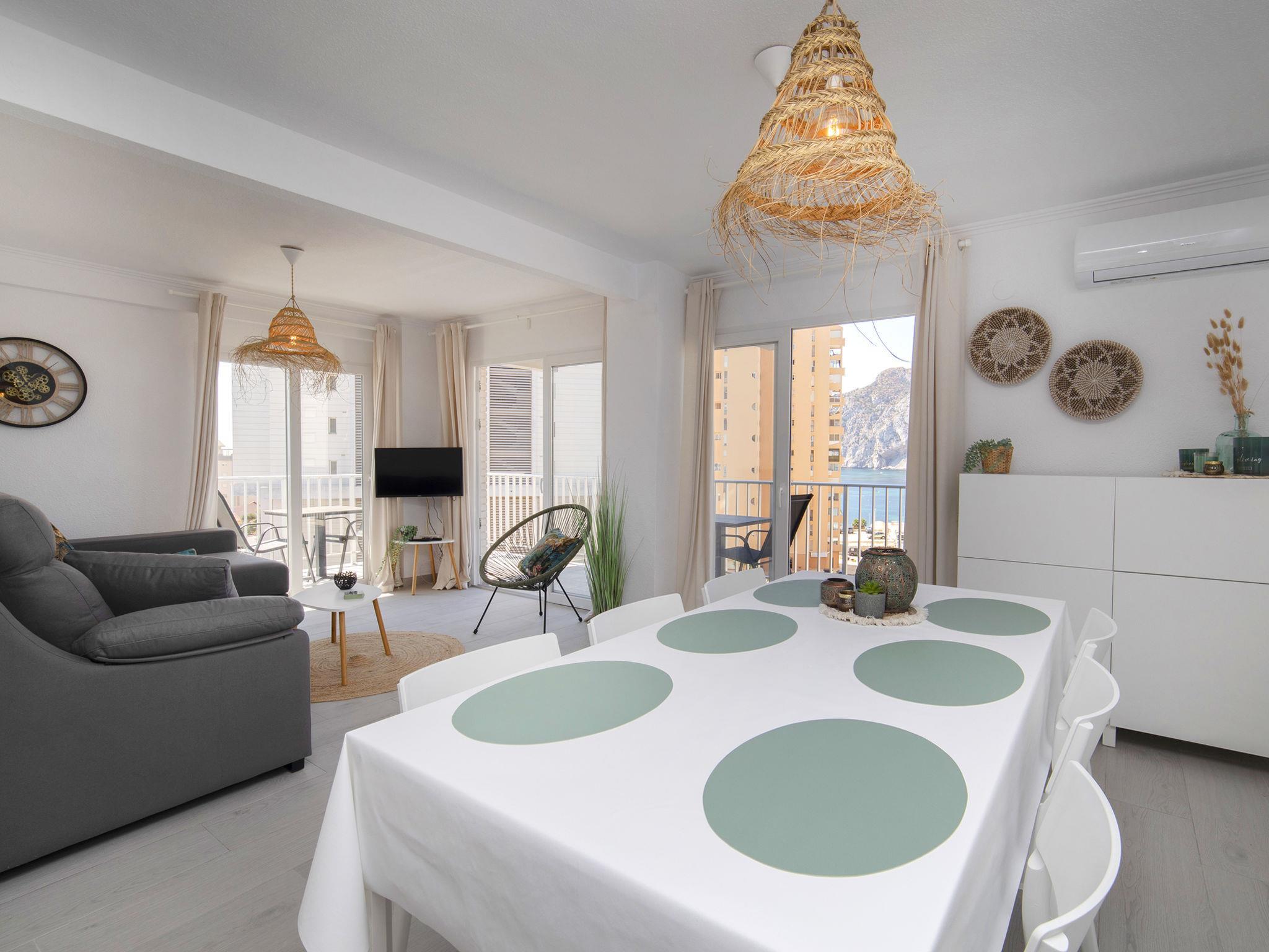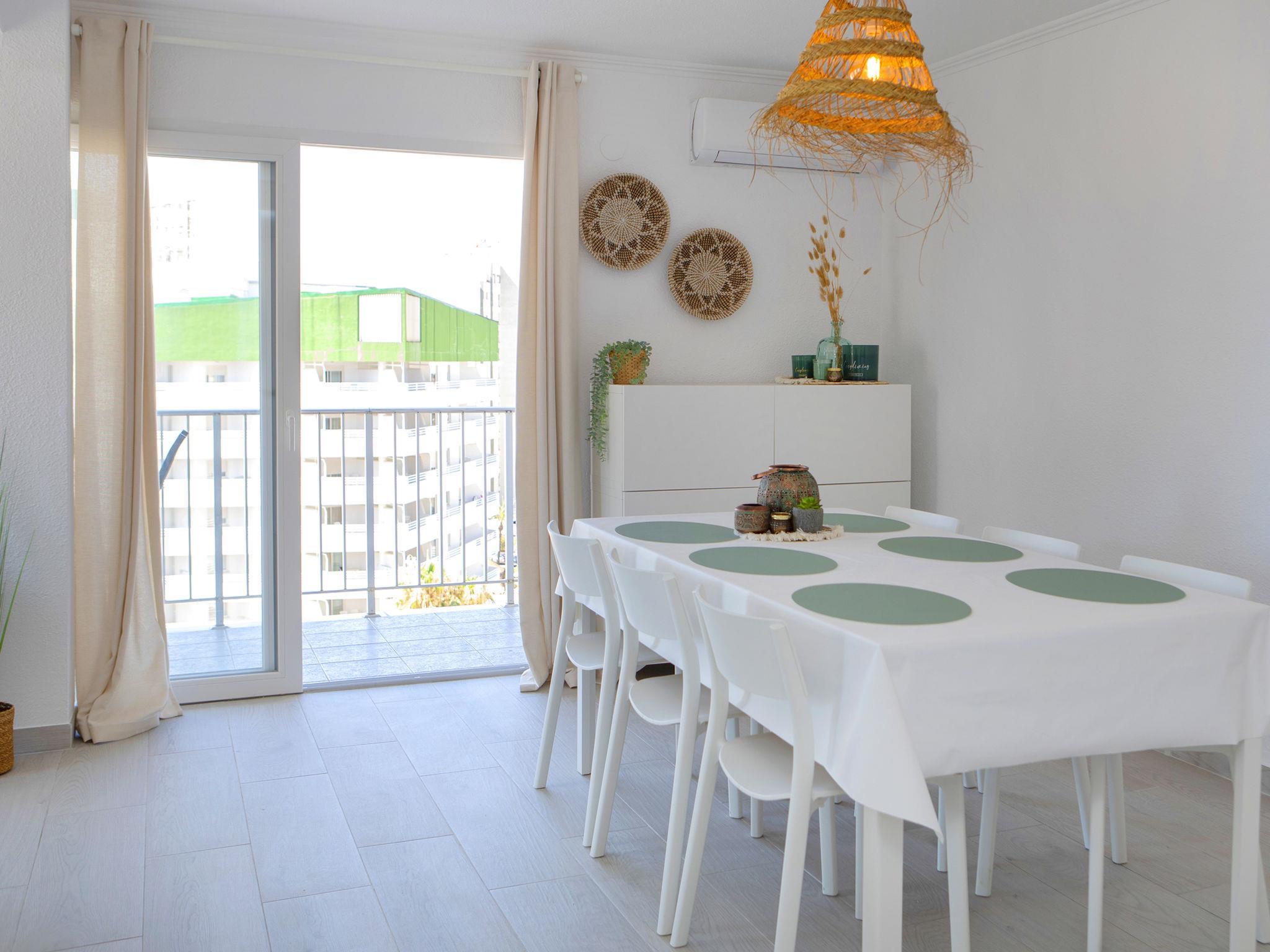 "Miramar 03", 3-Zimmer-Wohnung im 8. Stock. Geräumig und hell, vollständig renoviert im Jahre 2022, schön und modern eingerichtet: Wohn-/Esszimmer mit Sat-TV, Digital-TV, Klimaanlage und Warmluftheizung. Ausgang zur Terrasse. 2 Zimmer, jedes Zimmer mit 1 franz. Bett (1 x 150 cm, Länge 190 cm). Offene Küche (Backofen, Geschirrspüler, 4 Glaskeramikplatten, Toaster, Wasserkocher, Mikrowelle, elektrische Kaffeemaschine). Dusche/WC. Grosse Terrasse. Balkonmöbel. Sicht auf das Meer und die Stadt. Zur Verfügung: Waschmaschine, Bügeleisen, Haartrockner. Internet (WLAN, gratis). Geeignet für Familien. VT-496051-A // Reg. Nr.: ESFCTU00000302900031873800000000000000000VT-496051-A2