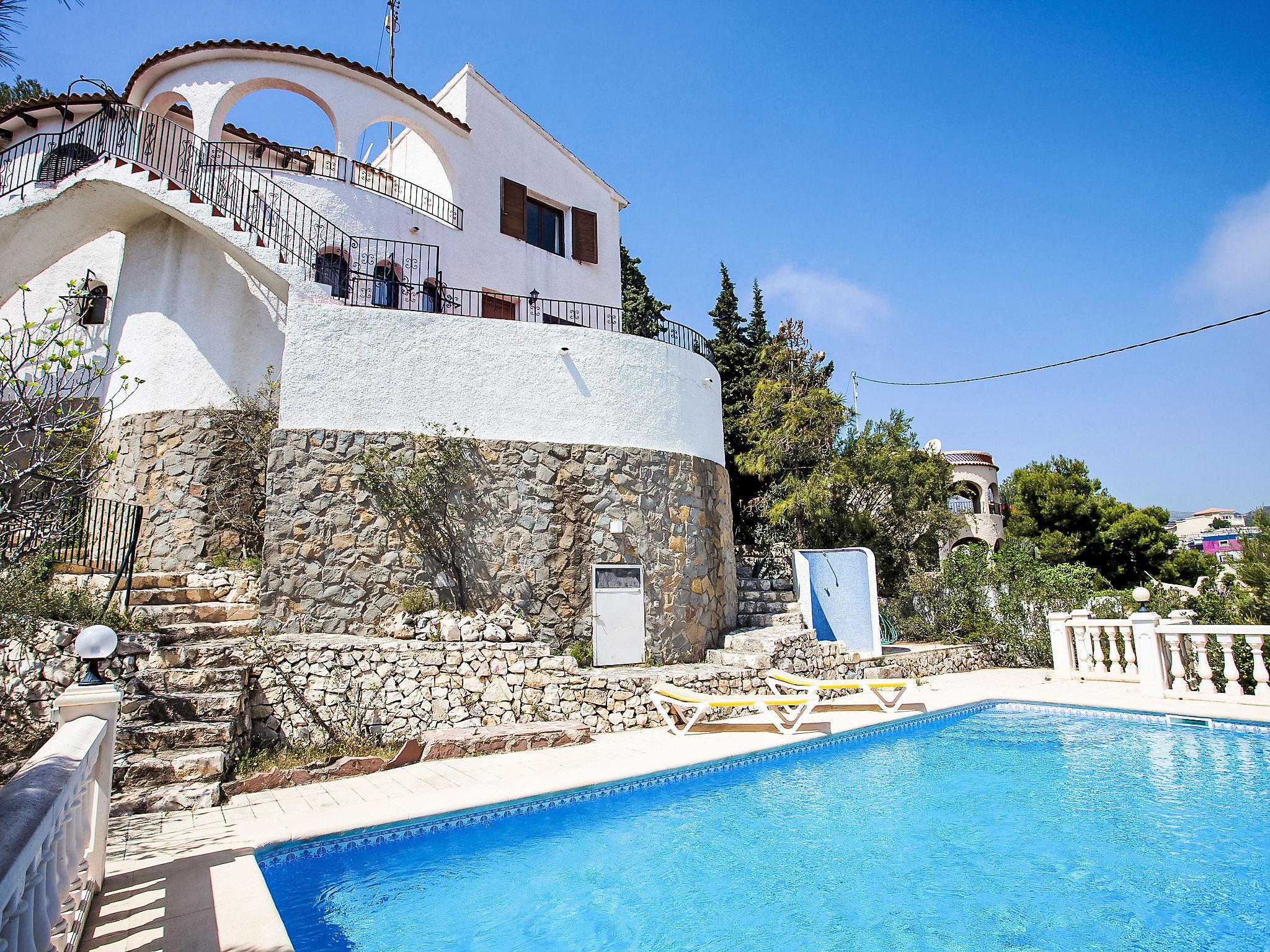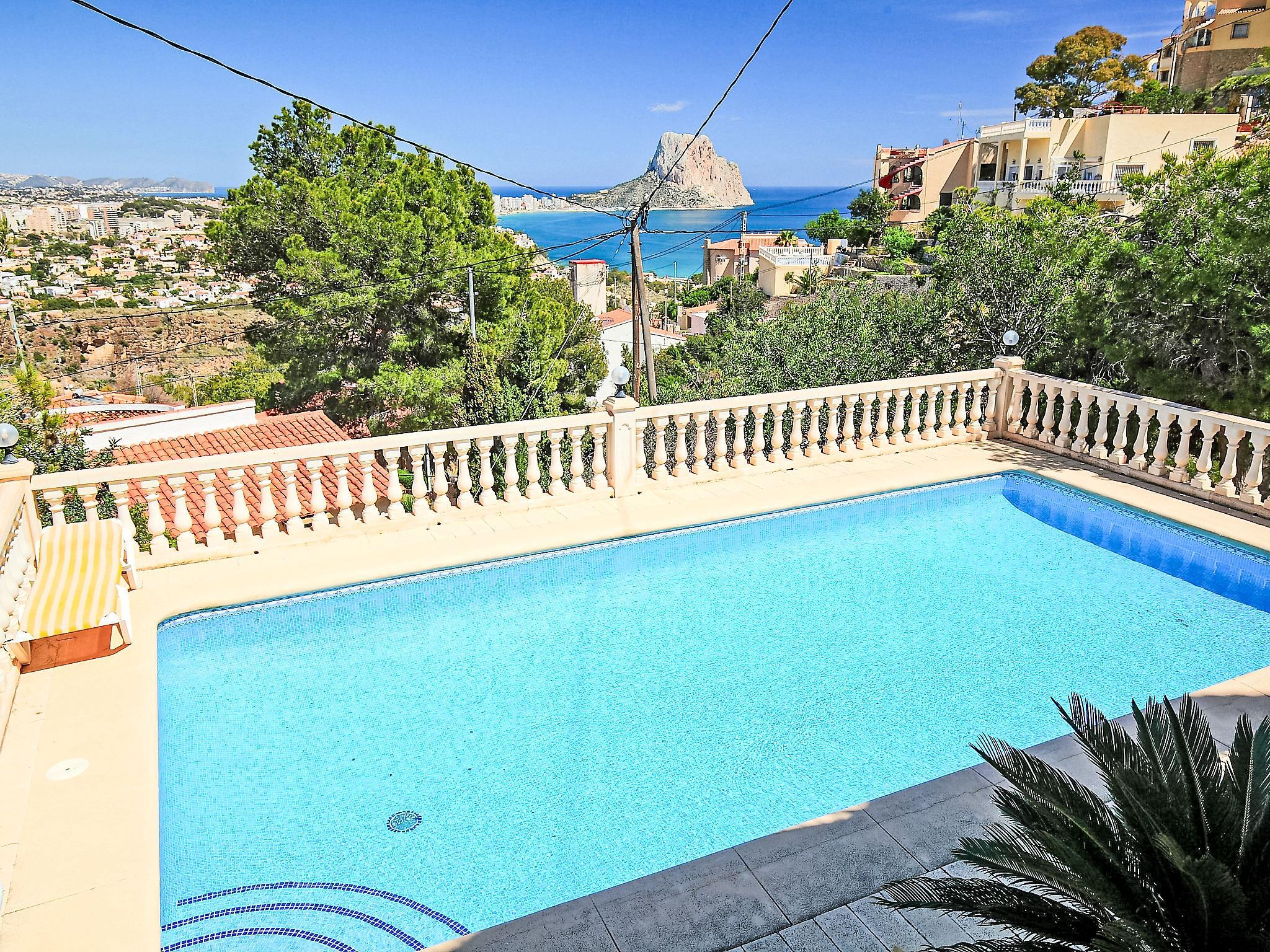 Maryvilla: Schönes, gemütliches Einfamilienhaus "Vista Ifach", auf 2 Stockwerken. 2.8 km vom Zentrum von Calpe, ruhige, erhöhte Lage am Hang, im Villenviertel, 1.1 km vom Meer. Zur Alleinbenutzung: Grundstück 800 m2, Naturgarten, Schwimmbad (10 x 4 m, 100 - 150 cm tief, saisonale Verfügbarkeit: 01.Jan. - 31.Dez.). Aussendusche, Terrasse, Gartenmöbel, Grill. Supermarkt 1.8 km, Restaurant, Bar 700 m, Bushaltestelle 2.7 km, Sandstrand 1.4 km, Badebucht 1.1 km. Sporthafen 6 km, Jacht-Hafen 6 km, Surfschule 6 km, Segelschule 6 km, Tennis 700 m. Nahe gelegene Sehenswürdigkeiten: Aqualandia, Mundomar, Terra Mítica, Terra Natura, y Benidorm Palace (Benidorm). Ein Teil des Hauses ist geschlossen und nicht bewohnt.