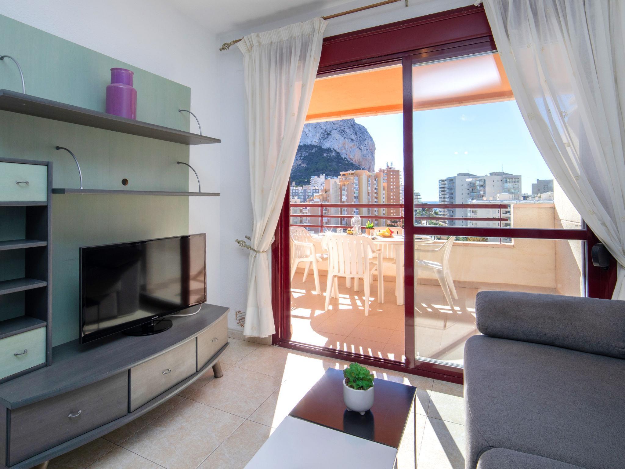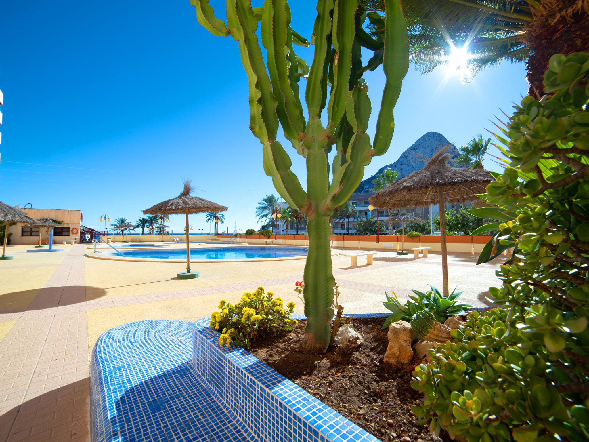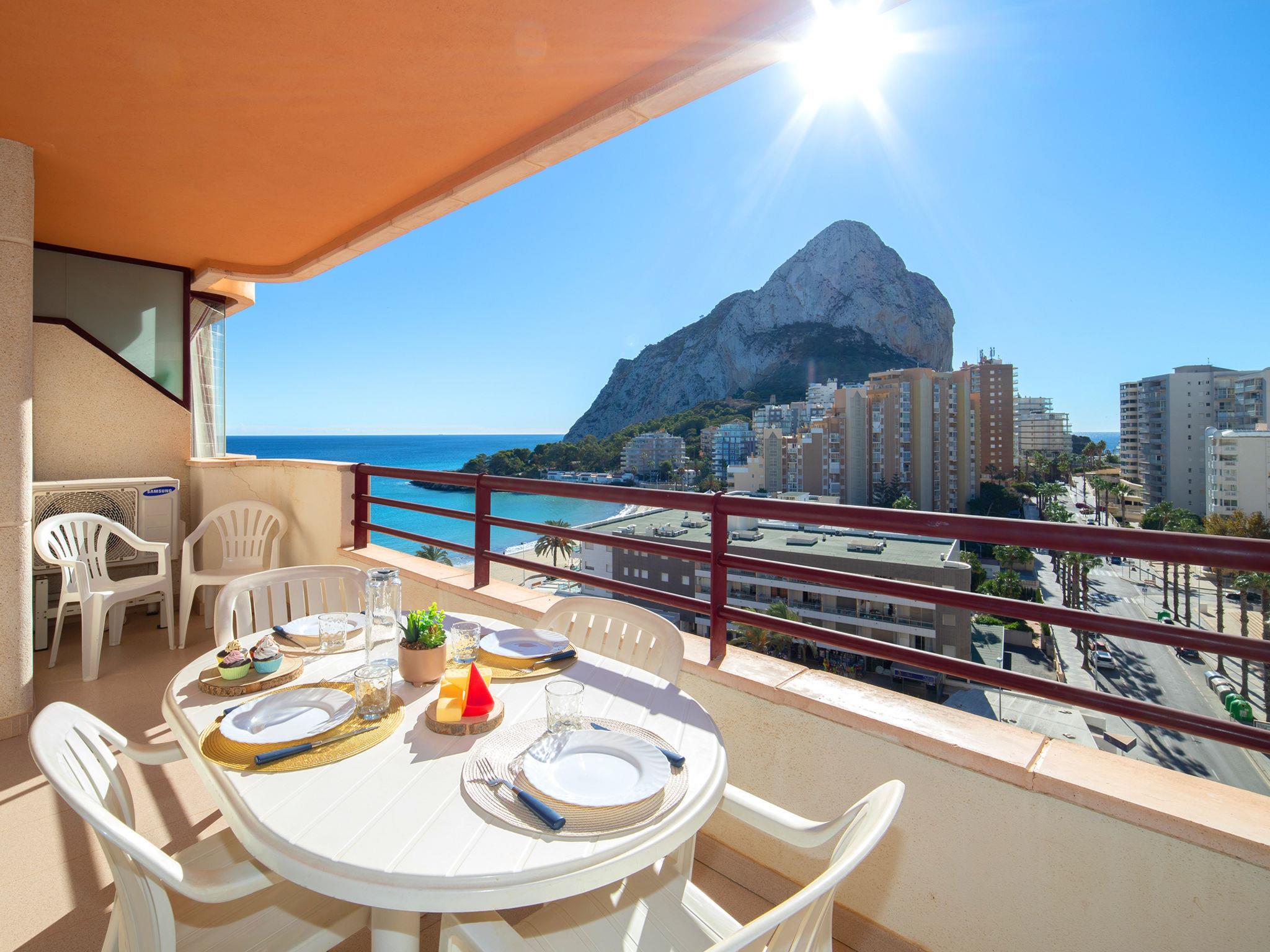 Playa Levante: Grosses, schönes Appartementhaus "Zafiro". 1.8 km vom Zentrum von Calpe, sonnige Lage, 50 m vom Meer, 50 m vom Strand, direkter Zugang zum Strand. Zur Mitbenutzung: Grundstück (eingezäunt), 3 Schwimmbäder (40 - 180 cm tief, saisonale Verfügbarkeit: 01.Jan. - 31.Dez.). Kinderbecken, Aussendusche, Terrasse. Zur Alleinbenutzung: Terrasse. In der Anlage: Fahrstuhl. Supermarkt 100 m, Restaurant, Bar 10 m, Bushaltestelle 300 m. Golfplatz (9 Loch) 12 km, Tennis 2 km. Nahe gelegene Sehenswürdigkeiten: Aqualandia, Mundomar, Terra Mítica, Terra Natura, Benidorm Palace (Benidorm). Wandergebiete: Peñon de Ifach 700 m.
