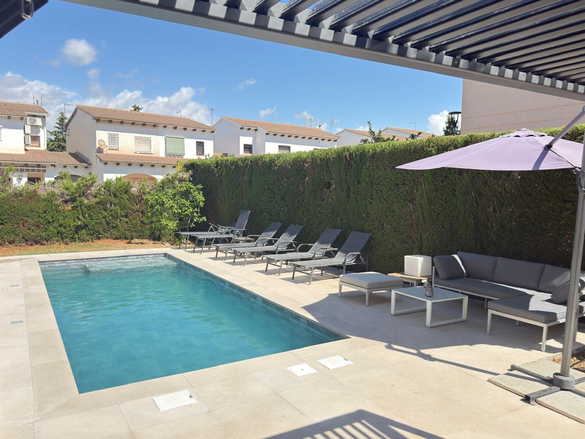 Cambrils Badia 1 km von Cambrils: Modernes, schönes Haus "La Barca", auf 2 Stockwerken, einseitig angebaut, renoviert im Jahre 2025. Ausserhalb des Ortes Cambrils, 200 m vom Meer, 200 m vom Strand. Zur Alleinbenutzung: Grundstück (eingezäunt), wunderschöner Garten zum Entspannen, Schwimmbad eckig, beheizt (8 x 3 m, 150 - 150 cm tief, saisonale Verfügbarkeit: 01.Jan. - 31.Dez.). Aussendusche, Terrasse, Gartenmöbel, Grill, Parkplatz beim Haus, öffentliche Parkplätze auf der Strasse. Einkaufsgeschäft 1 km, Lebensmittelgeschäft 200 m, Supermarkt 600 m, Restaurant 1 km, Bushaltestelle 400 m, Bahnstation 3 km. Sporthafen 1 km. Nahe gelegene Sehenswürdigkeiten: Port Aventura 3 km, Aquopolis 6 km. Bitte beachten: Babyausstattung (inkl.). Jugendgruppen nur auf Anfrage.