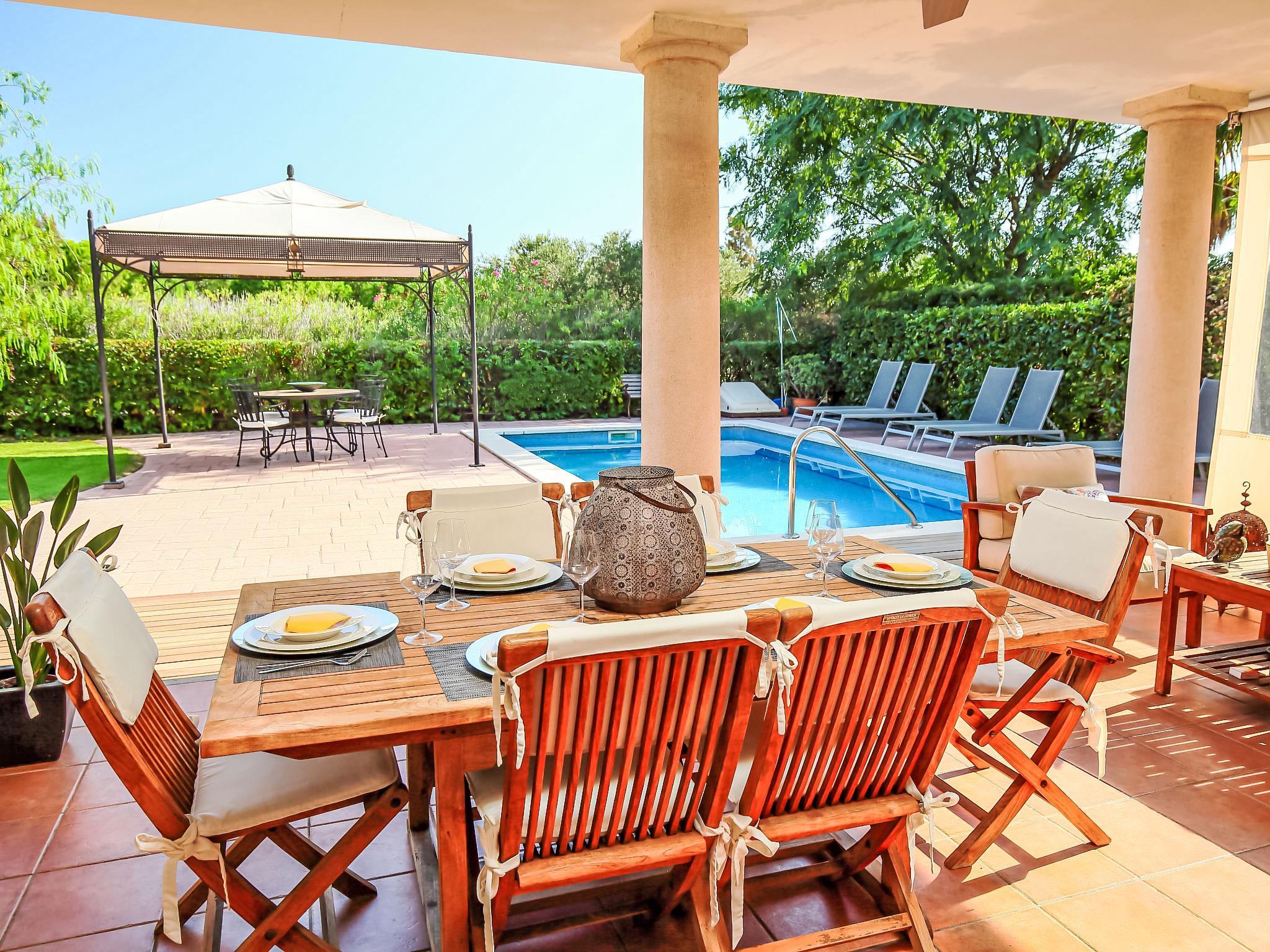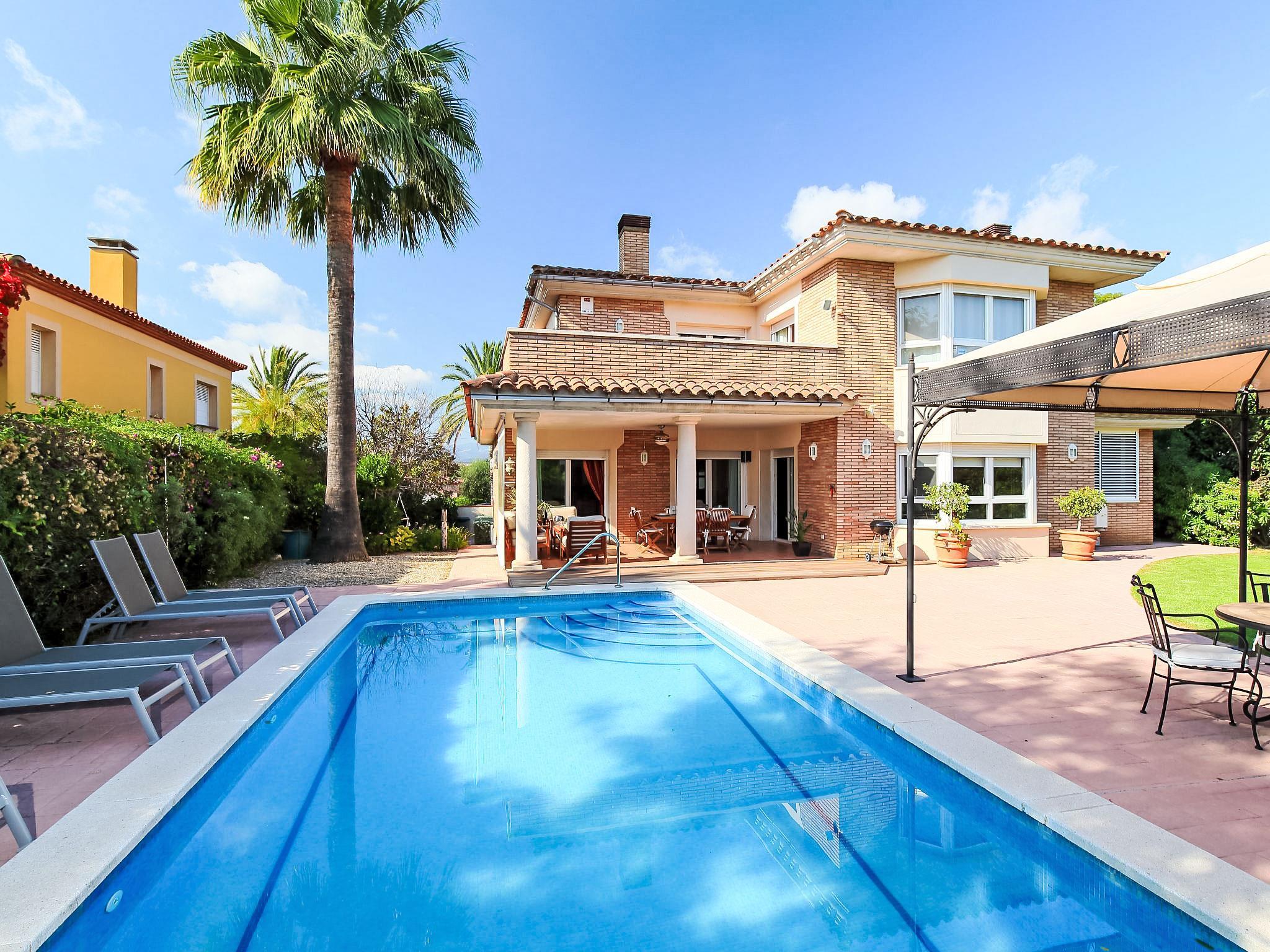 Gaudi Reus Golf 9 km von Cambrils: Sehr grosse, luxuriöse Villa "Bertoni Golf & Sea", auf 2 Stockwerken. Ausserhalb des Ortes, 3 km vom Zentrum von Reus, im Bezirk Les Palemeres d'Aigüesverds, ruhige Lage im Villenviertel, verkehrsberuhigte Zone, 9 km vom Meer, 9 km vom Strand, am Golfplatz, Richtung Nordosten. Zur Mitbenutzung: Tennis (extra), Tischtennis, Basketball, Kinderspielplatz (Rutschbahn). Zur Alleinbenutzung: wunderschöner Garten zum Entspannen, Schwimmbad eckig, beheizt (8 x 4 m, saisonale Verfügbarkeit: 01.Jan. - 31.Dez.) mit Innentreppe. Aussendusche, Poolpflege durch den Besitzer/Gärtner. In der Anlage: Restaurant, Bar. Öffentliche Parkplätze auf der Strasse. Lebensmittelgeschäft 3 km, Supermarkt 3 km, Einkaufszentrum 7 km, Restaurant, Bar, Café 600 m, Fußgängerzone 3 km, Bushaltestelle "Reus" 3 km, Bahnstation "Reus" 7 km. Sporthafen 12 km, Golfplatz (18 Loch) 25 m, Surfschule 12 km, Segelschule 12 km, Tennis 600 m, Reitstall 3 km, Radweg 100 m. Nahe gelegene Sehenswürdigkeiten: Port Aventura 10 km, Aquum Spa 12 km. Wandergebiete: La Mussara 40 km. Bitte beachten: Fahrzeug empfohlen. Babyausstattung auf Anfrage. Der Besitzer akzeptiert keine Jugendgruppen. Be- und Entladen am Ferienhaus möglich. Residenz ist 24 Std. überwacht. Flugplatz in der Nähe. Die Nachbarschaft ist sehr lärmempfindlich. Ruhe und gutes Benehmen wird erwartet.