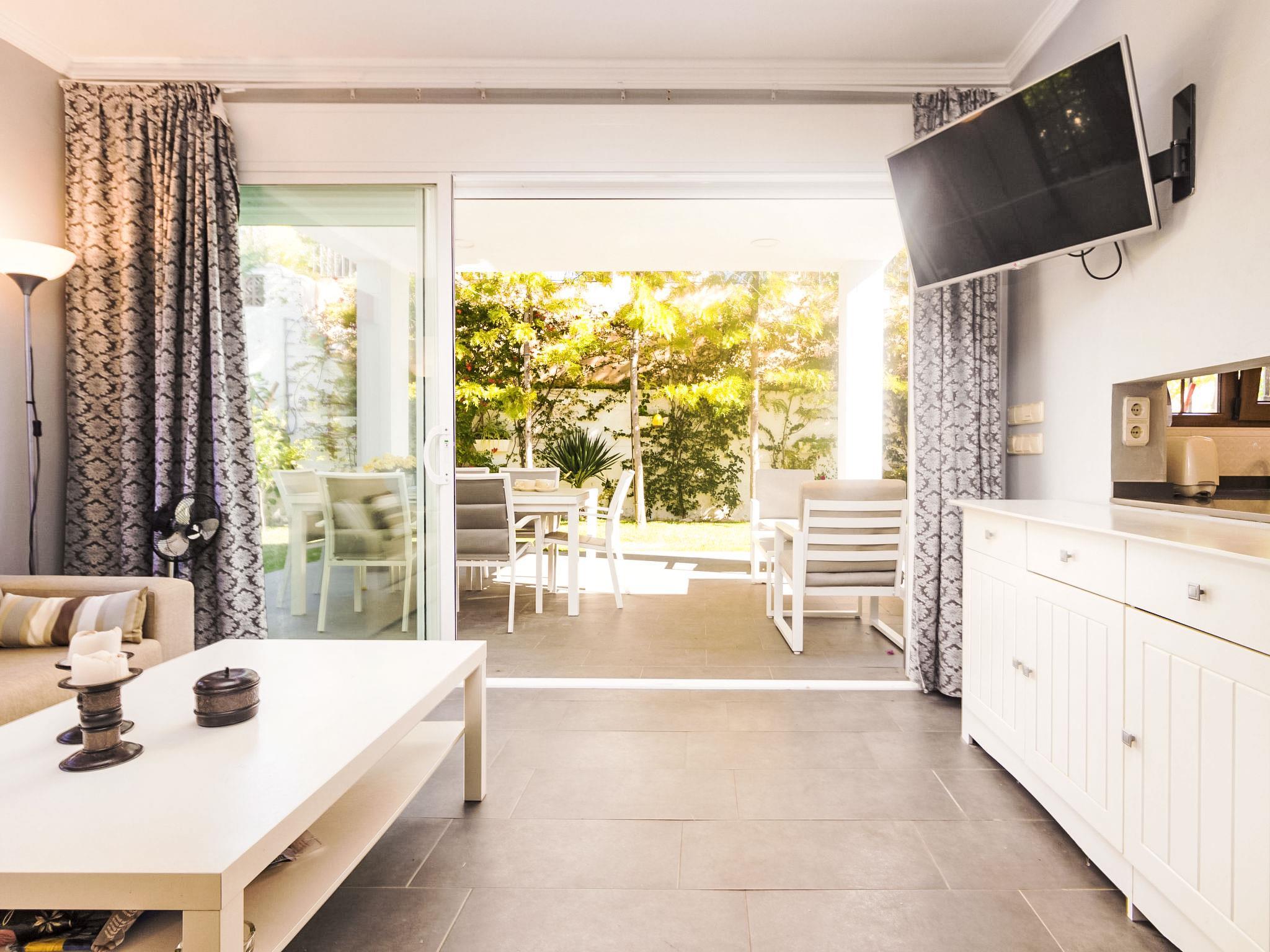 "El Dorado Playa - Villa La Roca", 6-Zimmer-Haus 170 m2. Objekt geeignet für 8 Erwachsene. Geräumig, komfortabel und geschmackvoll eingerichtet: Wohn-/Esszimmer mit Digital-TV. Ausgang zum Gartensitzplatz. 2 Zimmer, jedes Zimmer mit 2 Betten. 1 Zimmer mit 1 franz. Bett. Salon. Ausgang zum Gartensitzplatz. Küche (Backofen, Geschirrspüler, 3 Glaskeramikplatten, Toaster, Wasserkocher, Mikrowelle, elektrische Kaffeemaschine). Bad/WC, Dusche/WC. Keine Heizmöglichkeit. Obergeschoss: 1 Zimmer mit 2 Betten. Gartensitzplatz. Terrassenmöbel, Gartengrill, Liegestühle (4). Schöne Sicht auf den Garten. Zur Verfügung: Waschmaschine, Bügeleisen, Kinderhochstuhl, Babybett, Haartrockner. Internet (WLAN). Bitte beachten: geeignet für Familien. Nichtraucher-Haus. HUTT-003333 // Reg. Nr.: ESFCTU00004303100000472400000000000000000HUTT-0033338