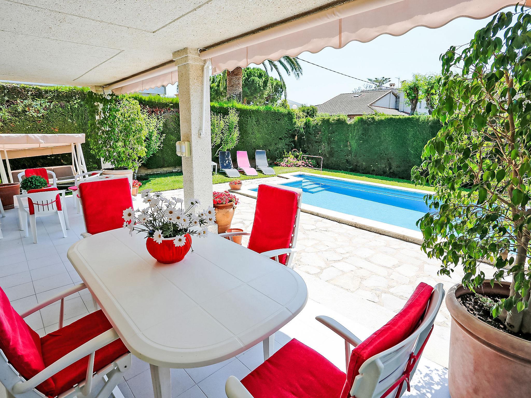 Vilafortuny 5 km von Cambrils Centro: Kinderfreundliches, schönes Einfamilienhaus "Annamaria", auf 2 Stockwerken. Ruhige Lage im Villenviertel, 800 m vom Meer, 800 m vom Strand. Zur Alleinbenutzung: gepflegter Garten (eingezäunt), Schwimmbad eckig (saisonale Verfügbarkeit: 01.Jan. - 31.Dez.). Aussendusche, Pergola, Poolpflege durch den Besitzer/Gärtner. Öffentliche Parkplätze auf der Strasse. Einkaufsgeschäft, Lebensmittelgeschäft, Supermarkt 500 m, Einkaufszentrum 2 km, Restaurant 600 m, Bäckerei 500 m, Café 600 m, Bushaltestelle "santiago russiñol" 200 m. Sporthafen 5 km, Jacht-Hafen 5 km, Golfplatz (18 Loch) 8 km, Surfschule 5 km, Segelschule 5 km, Reitstall 8 km. Nahe gelegene Sehenswürdigkeiten: Port Aventura 6 km, Aquopolis 6 km, Aquum Spa 6 km, Electric Carting Salou 6 km. Bitte beachten: Fahrzeug empfohlen. Geeignet für Familien. Der Besitzer akzeptiert keine Gruppen. Der Besitzer akzeptiert keine Jugendgruppen. Be- und Entladen am Ferienhaus möglich. Die Nachbarschaft ist sehr lärmempfindlich. Ruhe und gutes Benehmen wird erwartet.
