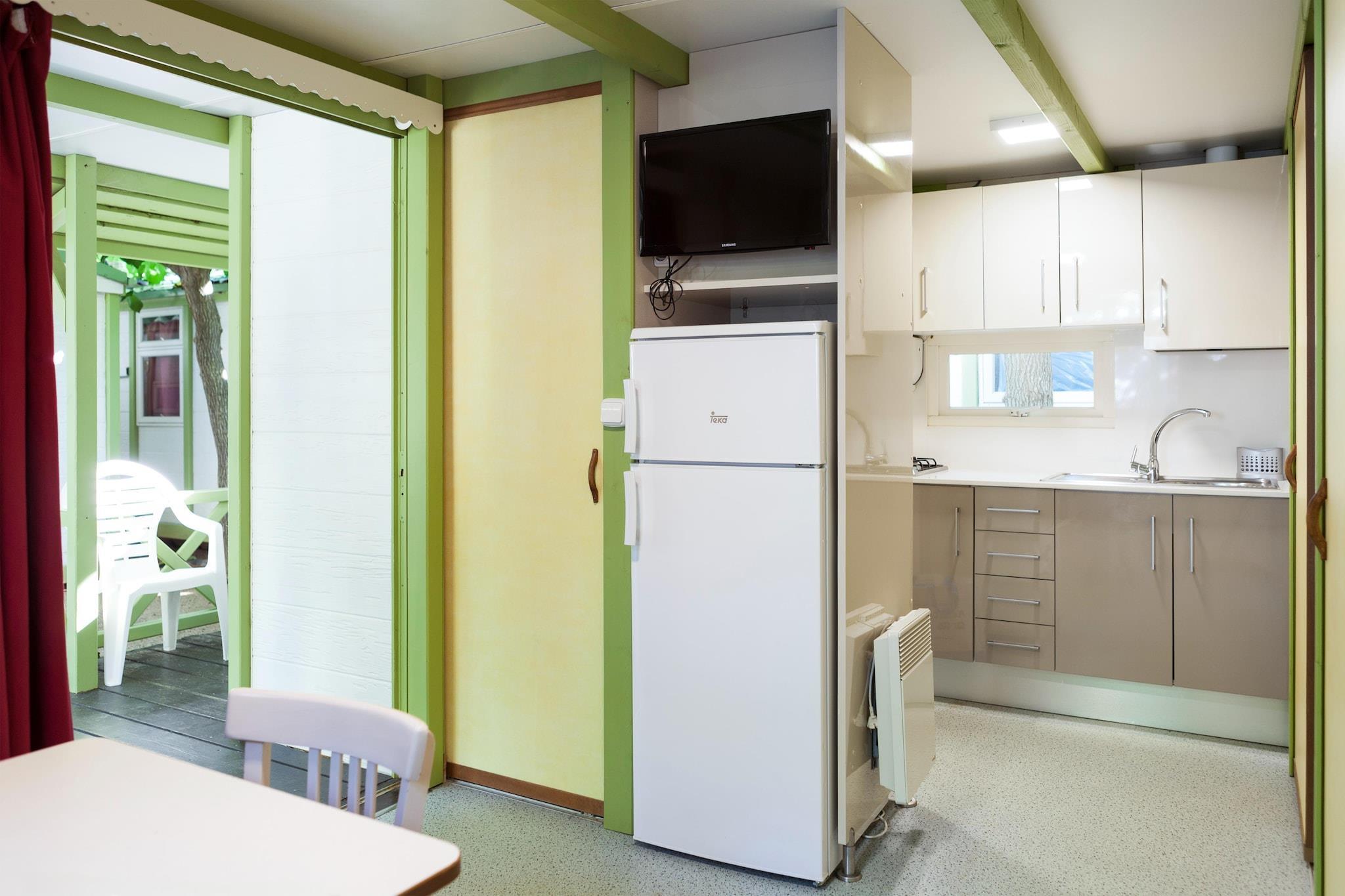 Gemütlicher Rückzugsort an der Küste Willkommen auf dem Campingplatz Platja Cambrils, Ihrem ruhigen Rückzugsort am Meer, nur 200 Meter vom goldenen Sandstrand Platja de l’Esquirol entfernt. Eingebettet in einen familienfreundlichen Ferienpark bietet dieser charmante Bungalow mit 2 Schlafzimmern einen gemütlichen, unkomplizierten Rückzugsort, ideal für Familien oder kleine Gruppen (bis zu 5 Gäste). Mit einem sonnigen Wohnbereich, einer offenen Küche und Ihrer eigenen Terrasse mit Gartenmöbeln ist er ein wunderbarer Ort zum Entspannen nach einem Strandtag. Strandglück & Stadtcharme Beginnen Sie Ihren Morgen mit einem Spaziergang zum Strand und erfrischen Sie sich anschließend im Gemeinschaftspool. Nur 1 km vom Zentrum von Cambrils entfernt finden Sie charmante Geschäfte, Bäckereien und einen geschäftigen Yachthafen in unmittelbarer Nähe. Die Annehmlichkeiten vor Ort, darunter Heizung, ein gut ausgestattetes Badezimmer und Highspeed-Internet, sorgen für alles, was Sie für einen komfortablen Aufenthalt benötigen. Entdecken Sie die Costa Dorada! Cambrils ist ein kulinarischer Hotspot! Genießen Sie frische Meeresfrüchte im Les Barques oder probieren Sie traditionelle Tapas im Can Bosch – beides nur eine kurze Autofahrt entfernt. Ob Sie mit dem Fahrrad die palmengesäumte Promenade entlangfahren oder den Sonnenuntergang von Ihrer Terrasse aus genießen – dieser Bungalow verbindet Ruhe am Strand mit kulturellem Reichtum. Buchen Sie jetzt für einen unvergesslichen Urlaub an der Costa Dorada – ohne Lärm und Lärm!