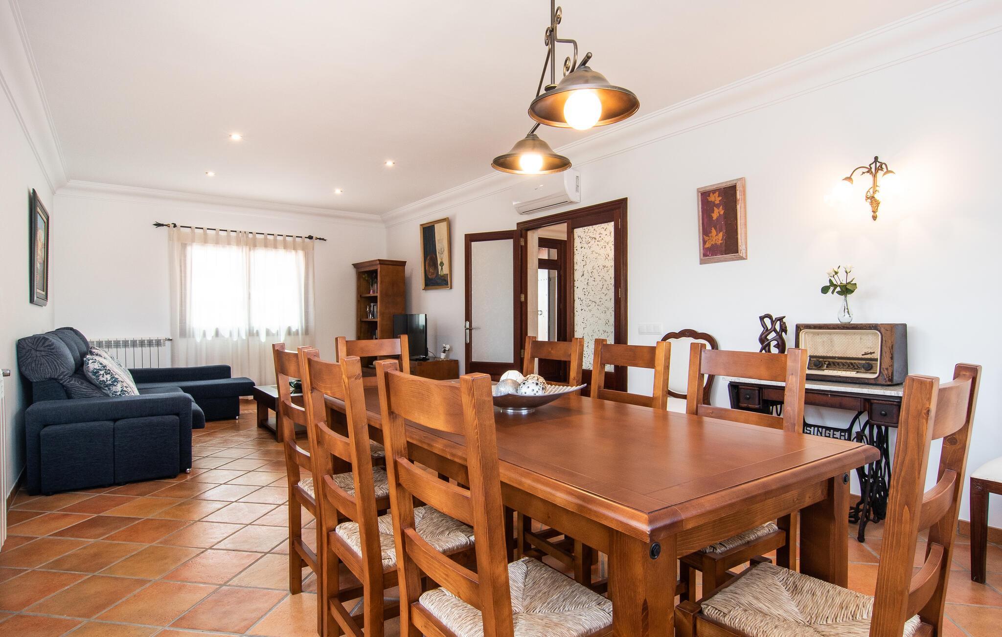 In dieser bezaubernden mallorquinischen Finca, unweit traumhafter Sandstrände, genießen Sie zugleich rustikalen Charme und moderne Annehmlichkeiten, die Ihre Auszeit mit Freunden oder der Familie zu einem erholsamen und komfortablen Erlebnis machen. Das geräumige, traditionell eingerichtete Interieur bietet viel Platz zum Kochen, Speisen und Entspannen in großer Runde. Freuen Sie sich auf gesellige Mahlzeiten am langen Esstisch und ruhen Sie sich nach einem langen Tag bei einem Film auf dem gemütlichen Sofa aus.