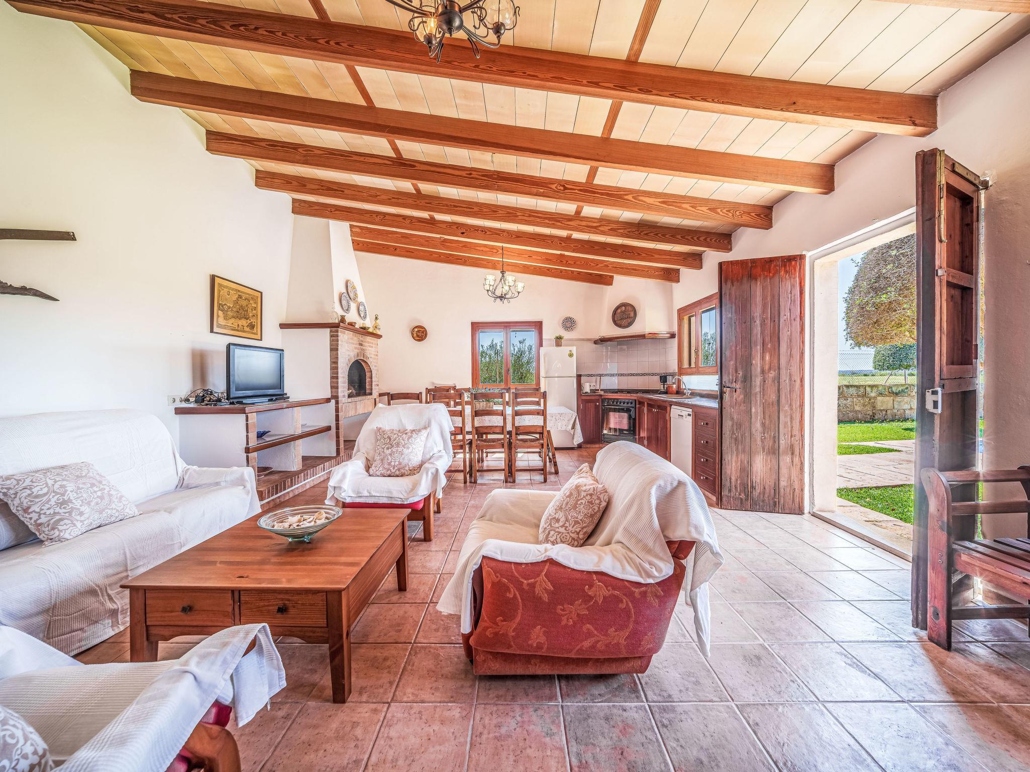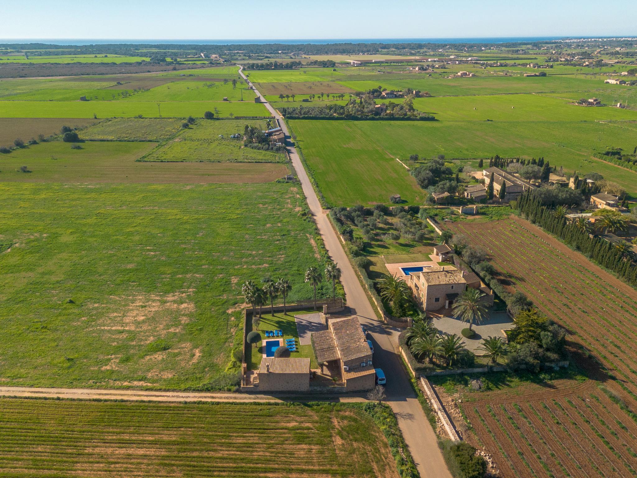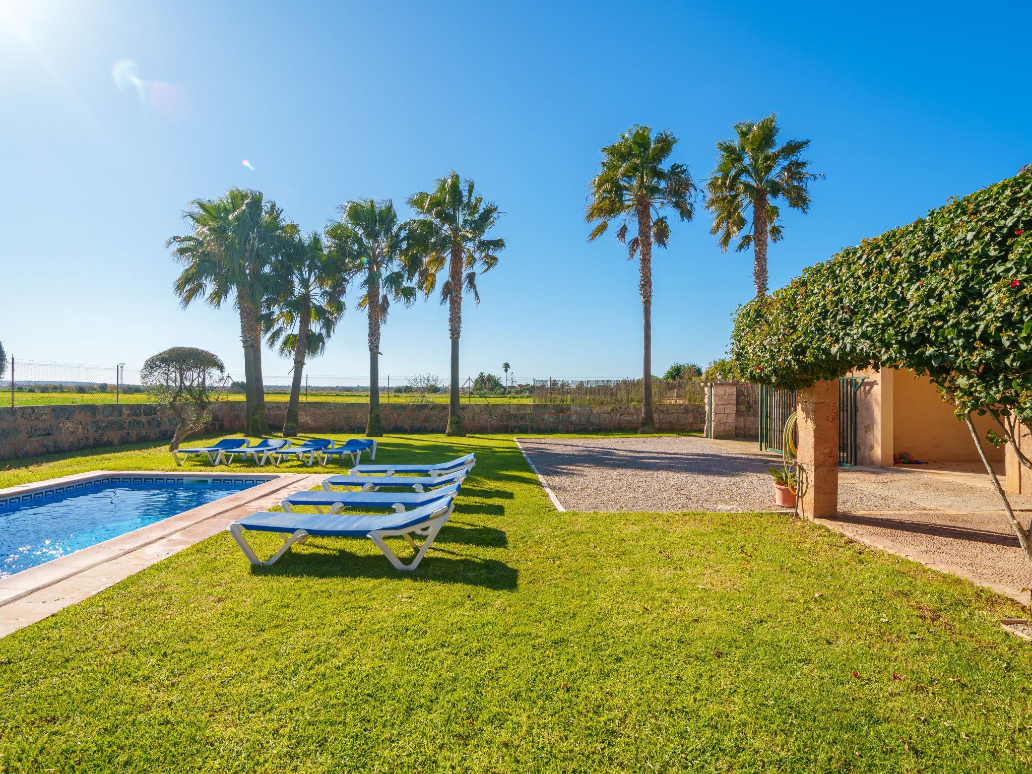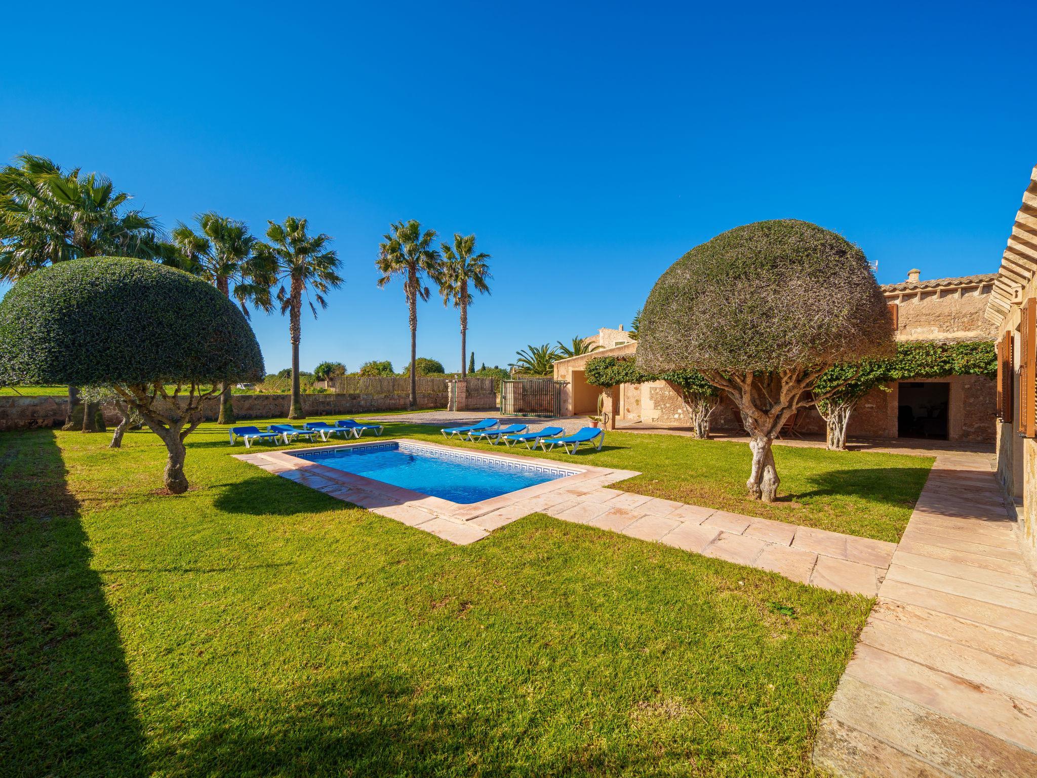Campos 5 km von Es Trenc: Schönes, gemütliches, einfaches Bauernhaus "Es Palmer des Trenc", auf 2 Stockwerken. Mietobjekt bestehend aus Haupt- und Nebengebäude, 6 km vom Meer, 6 km vom Strand. Zur Alleinbenutzung: Garten mit Rasen, Schwimmbad eckig (3 x 7 m, saisonale Verfügbarkeit: 01.Mar. - 31.Okt.). Sitzplatz, Pergola, Gartenmöbel, Grill, Poolpflege durch den Besitzer/Gärtner. Im Hause: Waschmaschine. Parkplatz beim Haus. Lebensmittelgeschäft 8 km, Supermarkt 8 km, Einkaufszentrum 8 km, Restaurant 6 km, Bar 6 km, Bäckerei 8 km, Bushaltestelle "Campos" 8 km, Sandstrand "Ses Covetes" 6 km. Jacht-Hafen 8 km, Golfplatz (18 Loch) 16 km. Nahe gelegene Sehenswürdigkeiten: Ses Covetes 8 km, Campos 8 km, Santanyi 14 km, Ses Salines 6 km. Bitte beachten: Fahrzeug empfohlen. Geeignet für Familien, Babyausstattung (inkl.). Objekt geeignet für 8 Erwachsene. Der Besitzer akzeptiert keine Jugendgruppen. Be- und Entladen am Ferienhaus möglich. Flugplatz 39 km vom Haus.