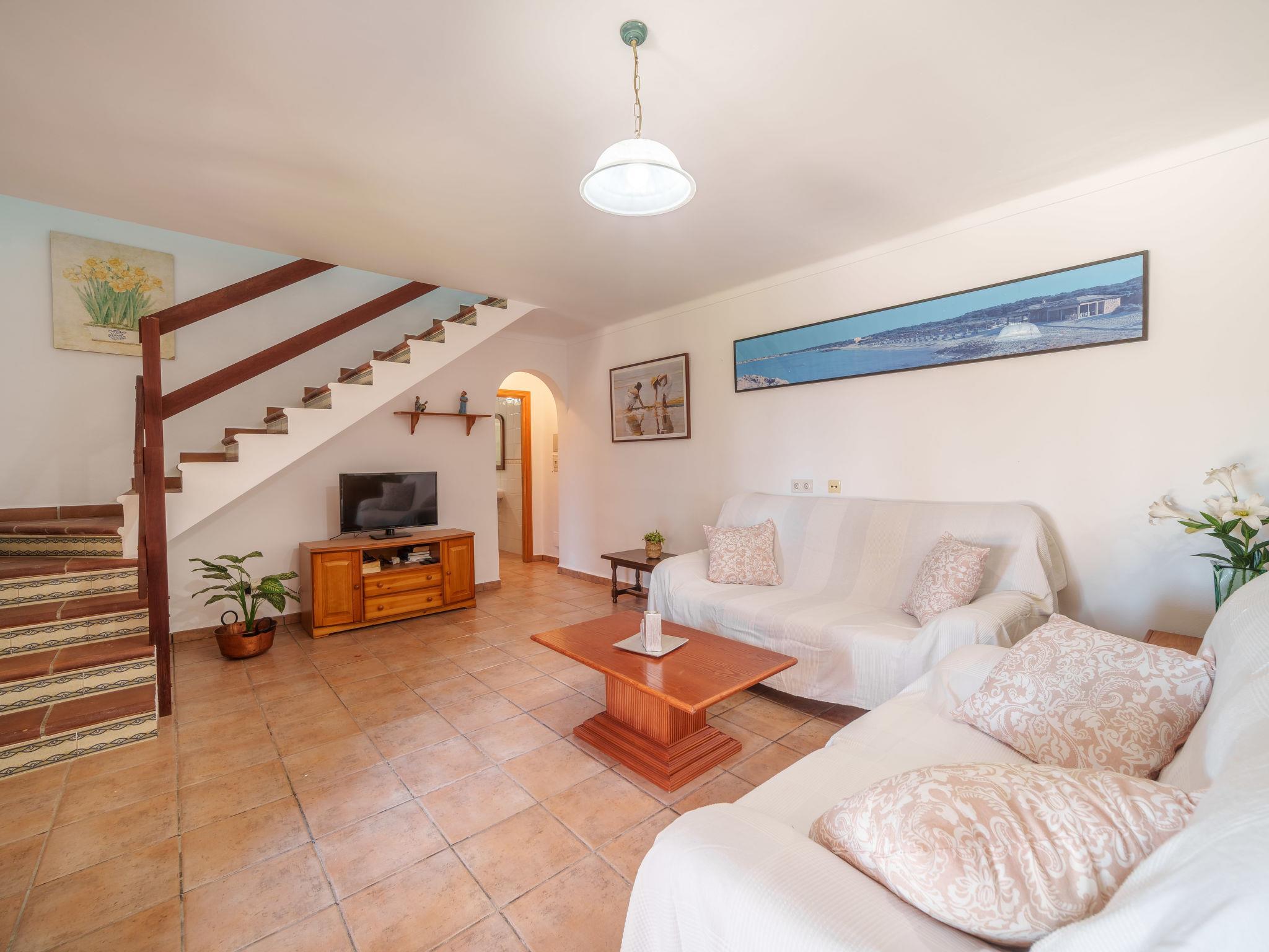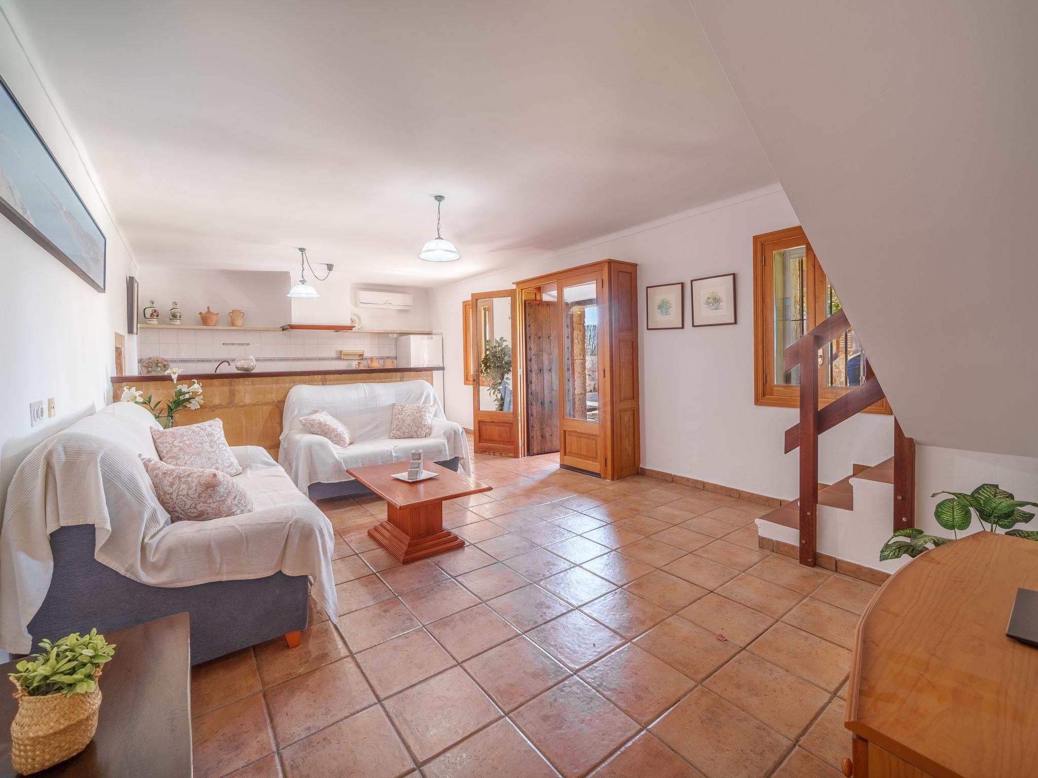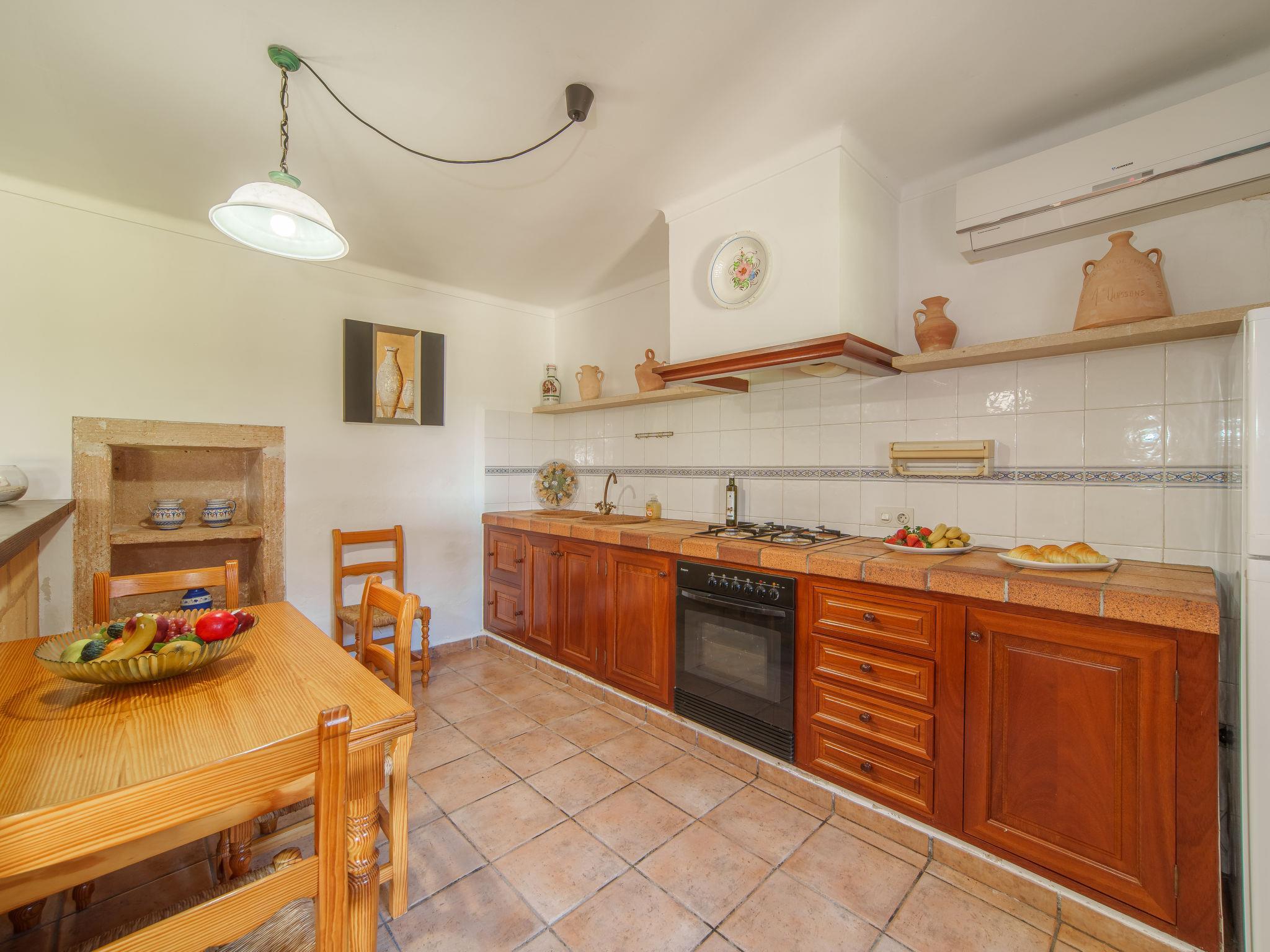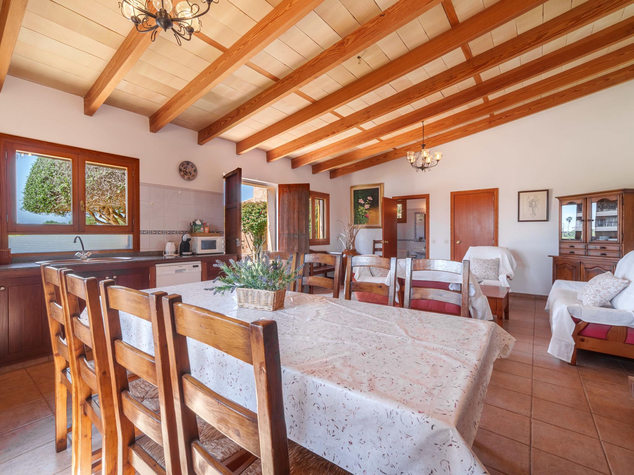 "Es Palmer des Trenc", 5-Zimmer-Bauernhaus. Objekt geeignet für 8 Erwachsene. Geräumig und hell, einfach und rustikal eingerichtet: 1 Doppelzimmer mit 1 franz. Bett (1 x 150 cm, Länge 200 cm), Klimaanlage und Warmluftheizung. Wohnzimmer mit Küchenblock, Bar und Sat-TV. Wohnküche (4 Kochplatten, Backofen, Geschirrspüler, Toaster, Wasserkocher, Mikrowelle, elektrische Kaffeemaschine) mit Esstisch und Sat-TV. Bad, Bad/WC. Klimaanlage, Warmluftheizung. Heizung nicht in allen Räumen. Obergeschoss: 2 Doppelzimmer, jedes Zimmer mit 2 Betten (90 cm, Länge 200 cm), Klimaanlage und Warmluftheizung. 1 Doppelzimmer mit 1 franz. Bett (1 x 180 cm, Länge 200 cm), Klimaanlage und Warmluftheizung. Bad/WC. Klimaanlage, Warmluftheizung. Natursteinboden. Komfortable Einrichtung im Landhausstil. Gartensitzplatz, Rasen. Terrassenmöbel, Gartengrill, Liegestühle (8), Sitzplatz. Panoramasicht auf die Berge. Zur Verfügung: Waschmaschine, Bügeleisen, Kinderhochstuhl, Babybett bis 2 Jahre, Haartrockner. Internet (WLAN, gratis). Parkplatz beim Haus. Geeignet für Familien. ETV/404 // Reg. Nr.: ESFCTU000007008000353907000000000000000000000ETV/4040