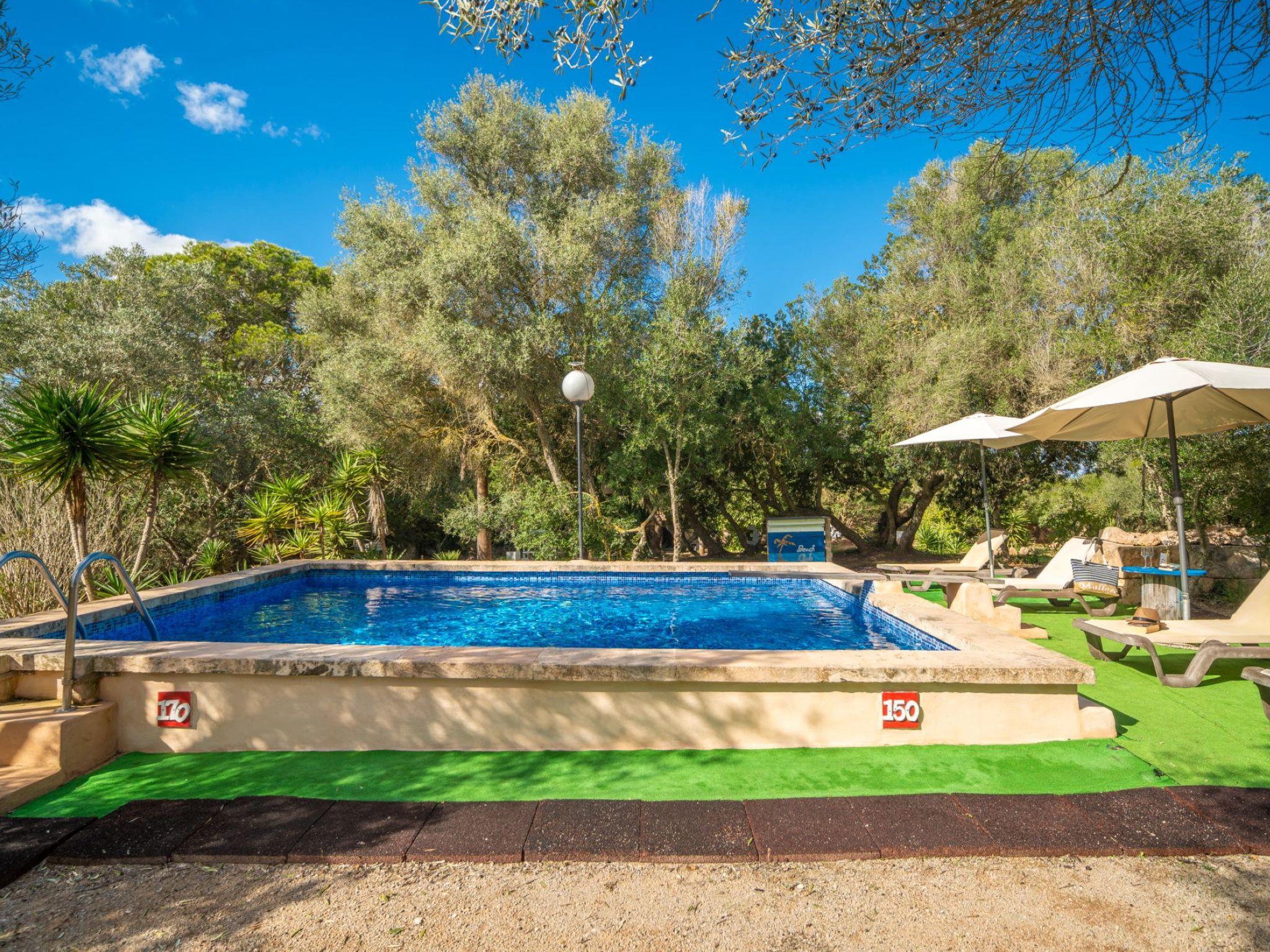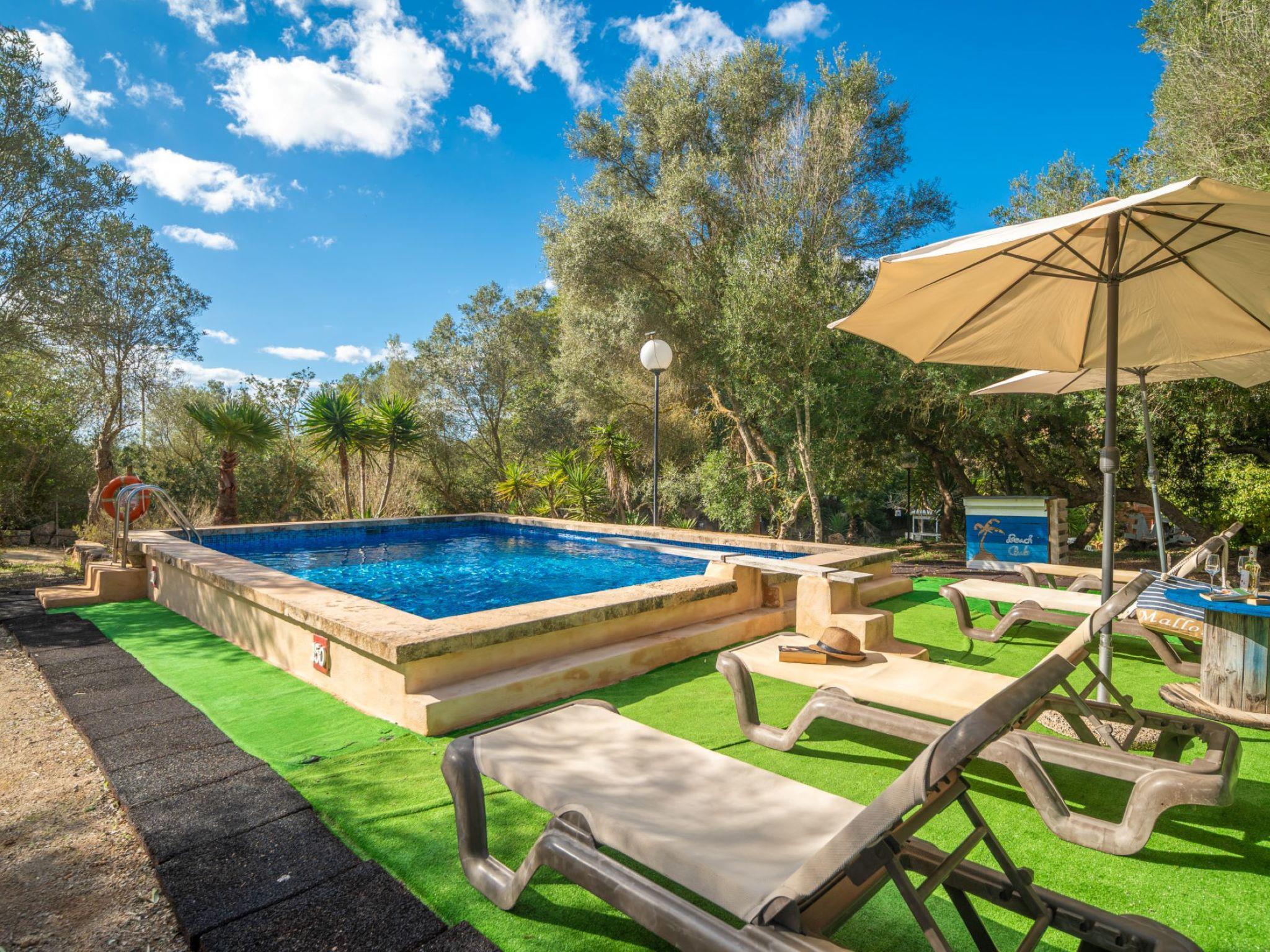 Sa Torreta 3 km von Campos: Kinderfreundliches, gemütliches, komfortables Haus "Sa Torreta", umgeben von Wiesen und Feldern. 100 m vom Waldrand, 12 km vom Meer, im Grünen. Zur Alleinbenutzung: Grundstück, Naturgarten, Schwimmbad (6 x 3 m, 140 - 200 cm tief, saisonale Verfügbarkeit: 01.Mar. - 31.Okt.). Aussendusche, Sitzplatz, Pergola, Gartenmöbel, Grill. Im Hause: Wireless LAN, Waschmaschine. Parkplatz beim Haus. Einkaufsgeschäft 2.3 km, Lebensmittelgeschäft 2.3 km, Supermarkt 2.3 km, Einkaufszentrum 2.5 km, Restaurant 2.3 km, Bar 2.4 km, Bäckerei 2.4 km, Café 2.3 km, Fußgängerzone 2.6 km, Fahrradverleih 2.3 km, Bushaltestelle "Campos" 3 km, Sandstrand "Ses Salines" 10 km. Sporthafen 13 km, Jacht-Hafen 13 km, Golfplatz (18 Loch) 15 km, Tennis 21.3 km, Tennishalle 2.5 km, Sportzentrum 2.5 km, Radweg 2.3 km. Nahe gelegene Sehenswürdigkeiten: Artestruz Mallorca 3 km, Platja d'es Trenc 13 km, Plauya de sa Ràpita 13 km, Ses covetes 14 km. Bitte beachten: Fahrzeug empfohlen. Babyausstattung auf Anfrage (inkl.). Objekt geeignet für 4 Erwachsene. Der Besitzer akzeptiert keine Jugendgruppen. Be- und Entladen am Ferienhaus möglich. Autobahn in der Nähe 5 km vom Haus. Hauptstrasse in der Nähe 2.8 km vom Haus. Nacht Club/Disco 12 km vom Haus. Flugplatz 30 km vom Haus. Die Nachbarschaft ist sehr lärmempfindlich. Ruhe und gutes Benehmen wird erwartet.