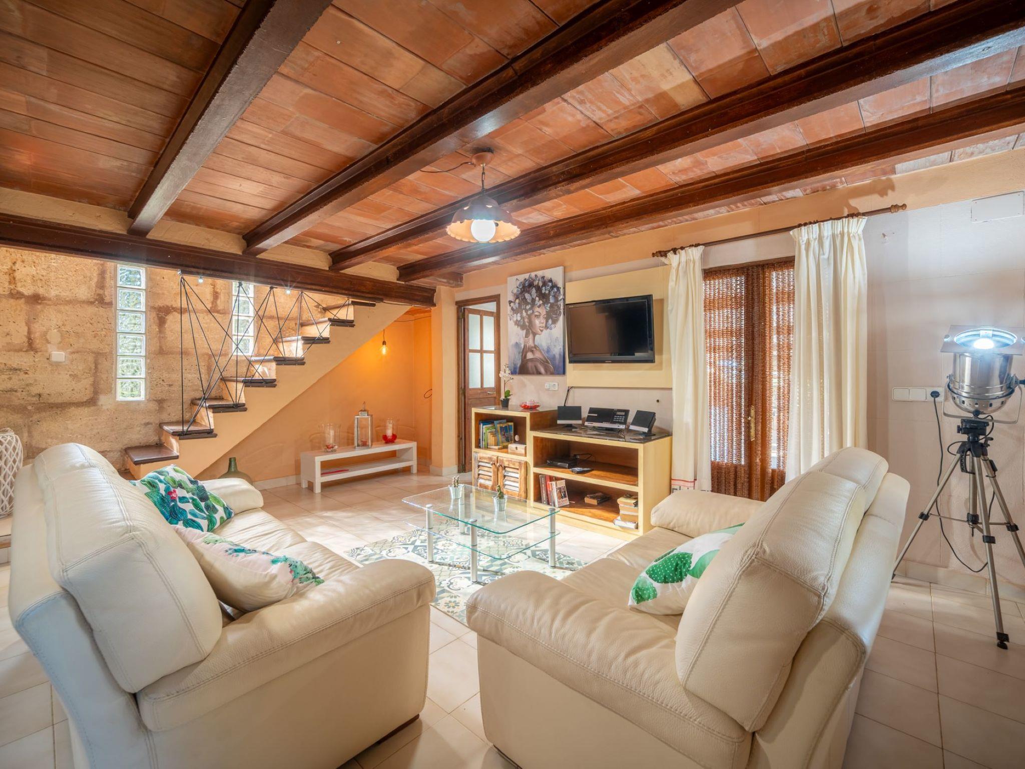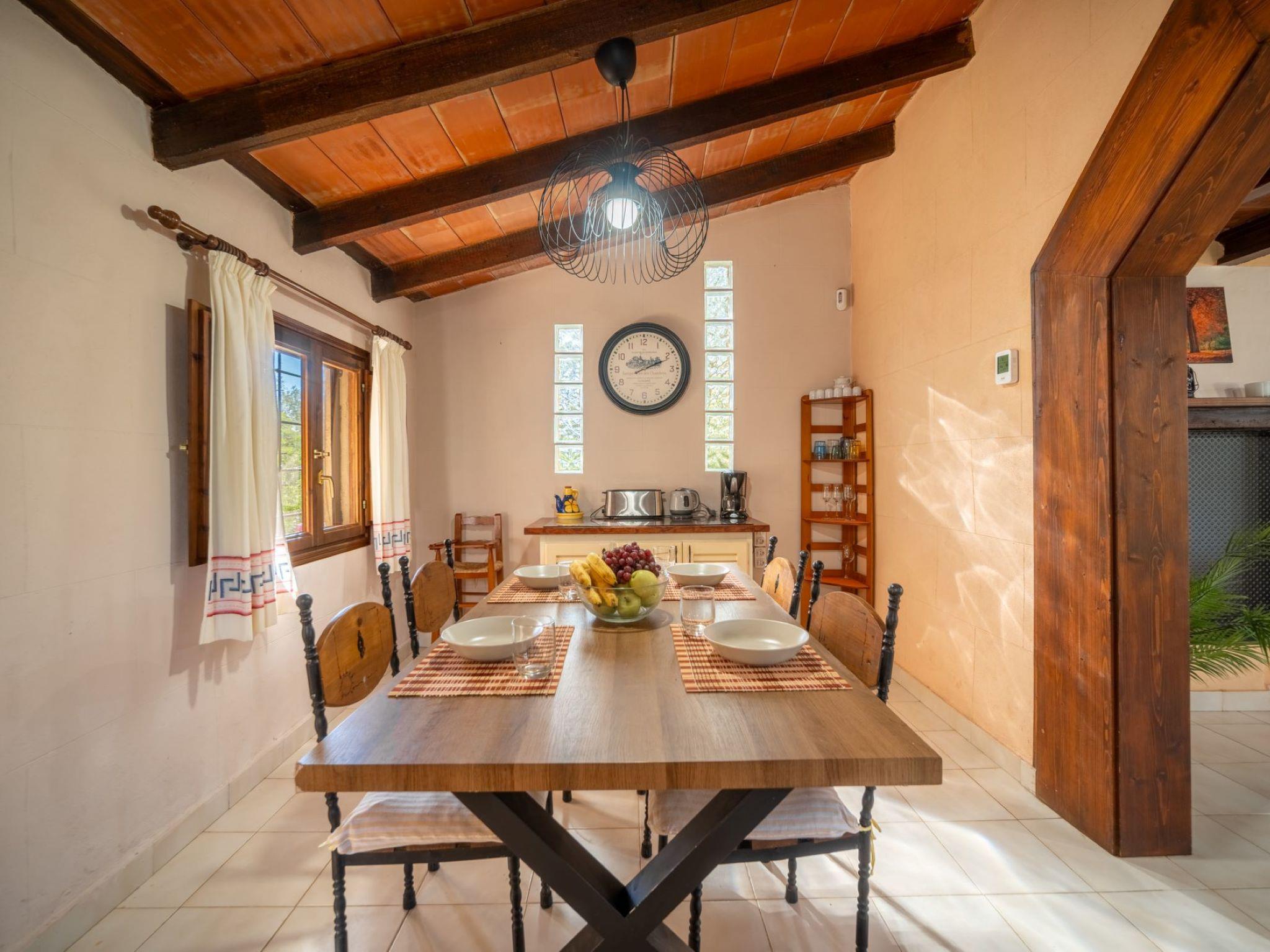 "Sa Torreta", 3-Zimmer-Haus 120 m2. Teilweise abgeschrägt, einfach und rustikal eingerichtet: Wohn-/Esszimmer mit offenem Kamin. Ausgang zum Gartensitzplatz. Kleine Küche (Geschirrspüler, 4 Glaskeramikplatten, Toaster, Wasserkocher, Mikrowelle, elektrische Kaffeemaschine). Ausgang zum Gartensitzplatz. Dusche/WC. Obergeschoss: 1 Doppelzimmer mit 2 Betten (90 cm, Länge 190 cm), Ventilator. 1 Doppelzimmer mit 1 franz. Bett (1 x 150 cm, Länge 190 cm), Ventilator. Bad/WC. Natursteinboden. Gartensitzplatz. Terrassenmöbel, Balkonmöbel, Gartengrill, Liegestühle, Loggia. Sicht auf die Berge. Zur Verfügung: Waschmaschine, Bügeleisen, Kinderhochstuhl, Babybett bis 2 Jahre, Haartrockner. Internet (WLAN, gratis). Parkplatz beim Haus. ETV/5186 // Reg. Nr.: ESFCTU00000700800038425300000000000000000000ETV/51868