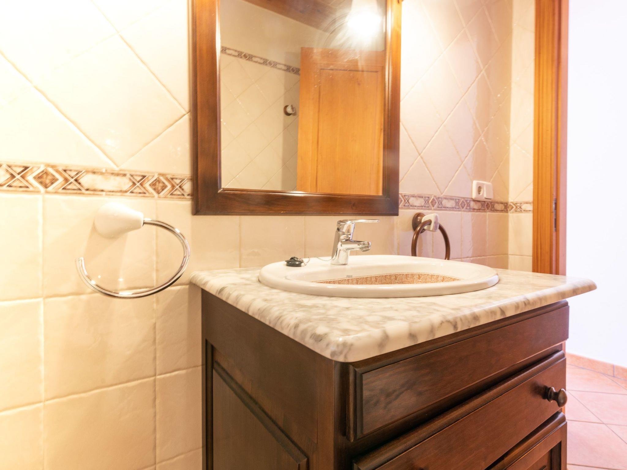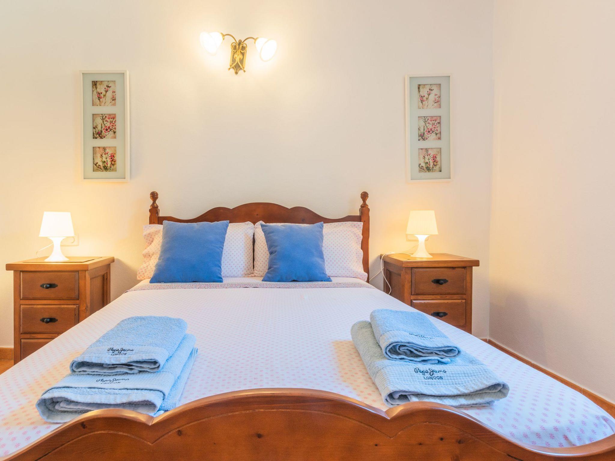 Das Innere der Villa Es Tres Pins empfängt Sie mit drei Doppelschlafzimmern und einem kompletten Badezimmer, die einen komfortablen Aufenthalt für alle gewährleisten. Ein zweites Badezimmer befindet sich außerhalb des Hauses. Das Wohnzimmer ist ein gemütlicher Raum zum Entspannen, während die voll ausgestattete Küche mit allem ausgestattet ist, was Sie für die Zubereitung köstlicher Gerichte benötigen. Die Villa ist auf einer Ebene konzipiert und bietet somit Zugänglichkeit und Komfort, so dass Sie Ihren Aufenthalt genießen können, ohne Treppen steigen zu müssen.