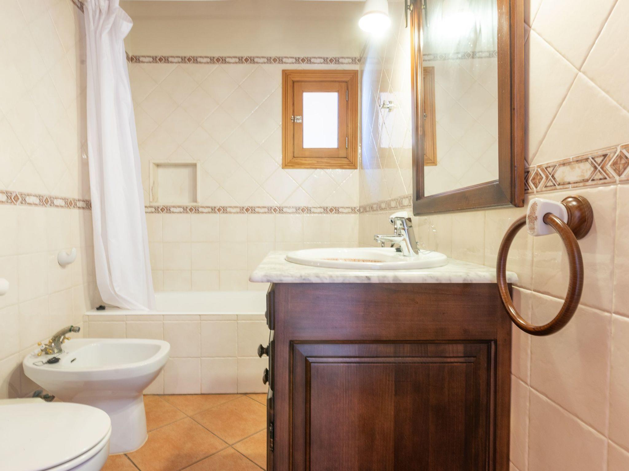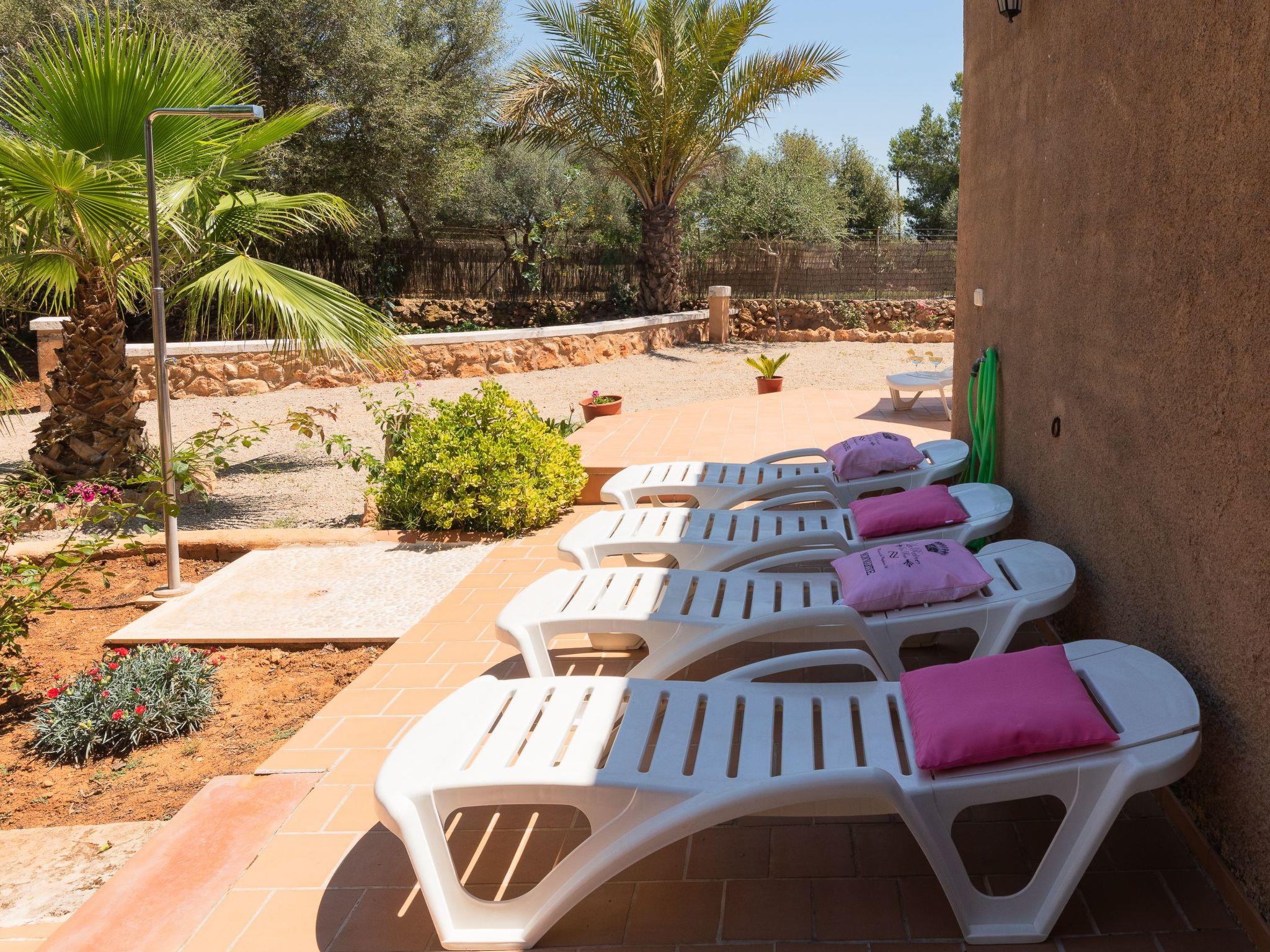 Im Außenbereich bietet die Villa Es Tres Pins einen perfekt gestalteten Freizeitbereich. Zwei möblierte Terrassen bieten den idealen Rahmen, um in der Sonne zu entspannen oder ein Barbecue im Freien zu genießen. Der private Swimmingpool, der von Rasenflächen umgeben ist und leicht erhöht liegt, garantiert Ihnen und Ihren Begleitern absolute Privatsphäre, frei von den Blicken der Nachbarn, und schafft eine Oase des Friedens und der Ruhe.