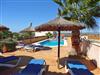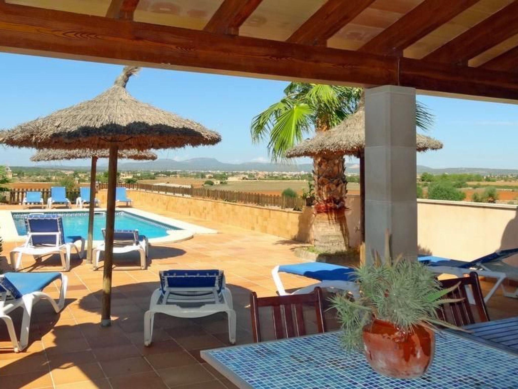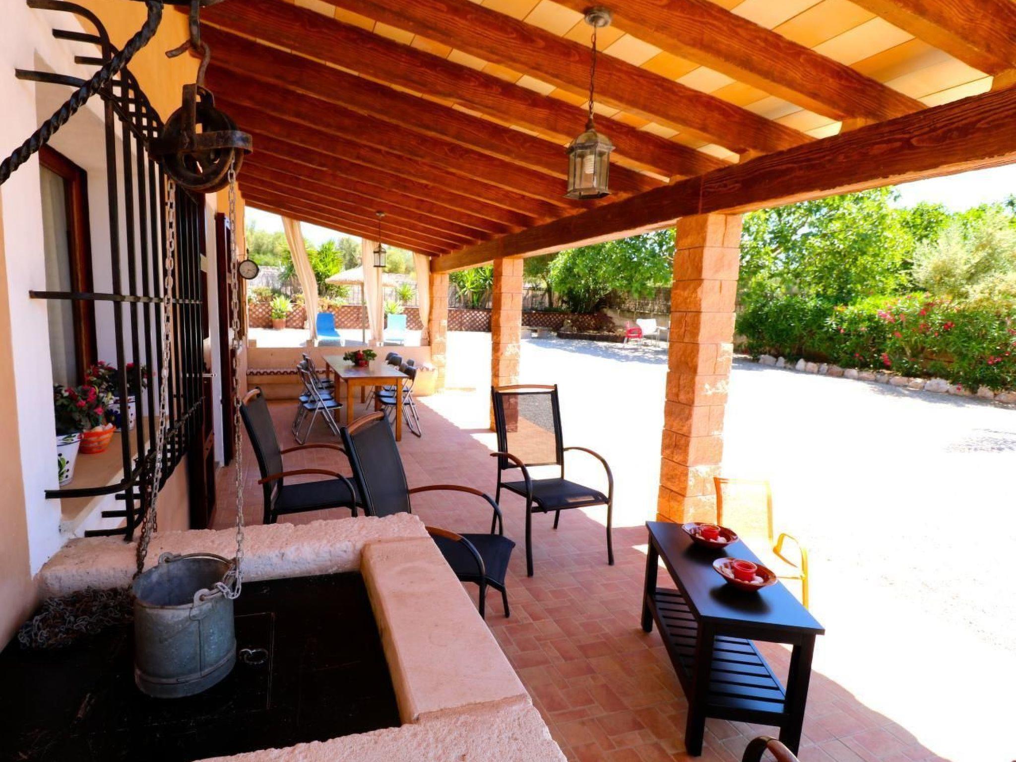 Der Außenbereich der Finca lässt keine Wünsche offen. Ein großer Pool mit Terrasse ist das Herzstück und lädt zum Entspannen und Erfrischen ein. Dank des festen Sonnenschutzes im hinteren Teil der Terrasse können Gäste unbeschwert den mallorquinischen Sonnenschein genießen. Das etwa 13 ha große Grundstück umfasst zudem einen angelegten Garten (ca. 2500 qm) mit Gartenmöbeln und Grill, ideal für gesellige Abendessen unter freiem Himmel.