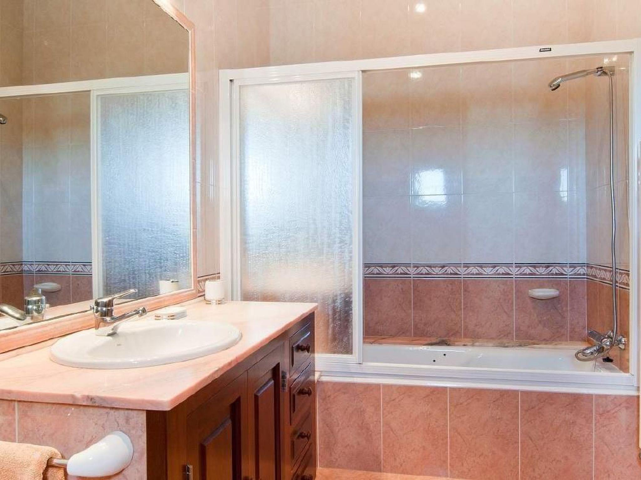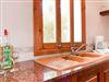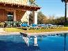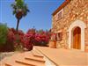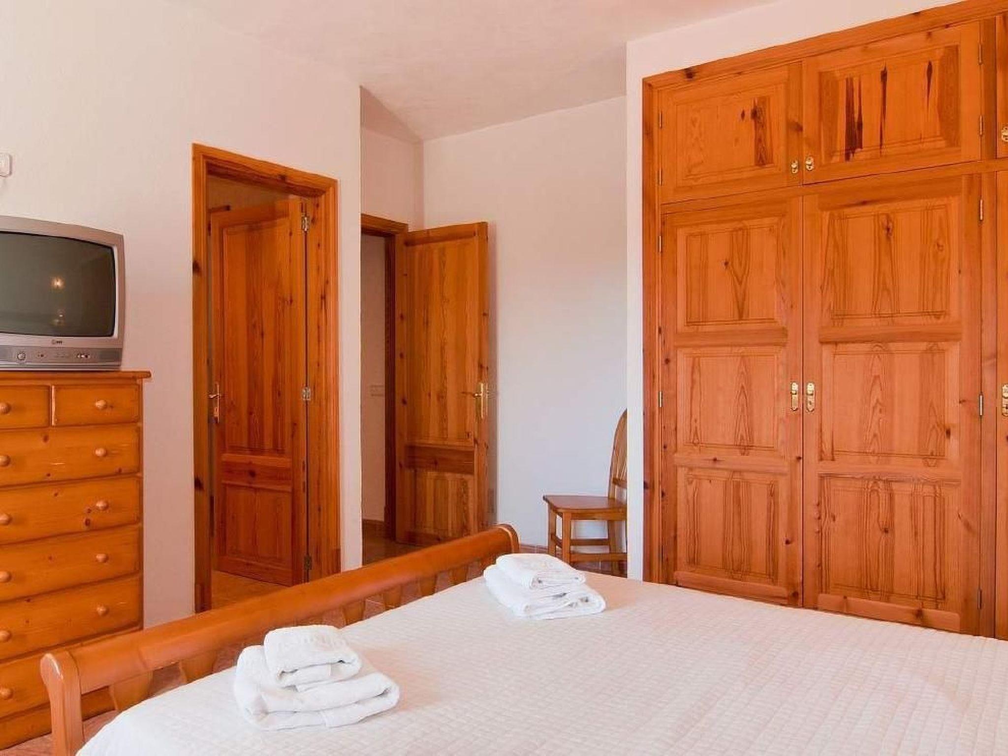 Die Finca Can Algarrobo liegt eingebettet in die sanften Hügel der Gegend um Campos und umgeben von Mandel- und Johannisbrotbäumen. Sie bietet 210 qm Wohnfläche auf zwei Etagen und ist für die Unterkunft von bis zu sechs Personen geeignet. Das rustikal gestaltete Haus ist gemütlich eingerichtet und mit AC in allen Räumen ausgestattet.Im Erdgeschoss befindet sich eine geräumige Küche, die in typisch mallorquinischer Weise mit einem großen Esstisch eingerichtet ist. Ein großer Kamin in der Küche vervollständigt die traditionelle Ausstattung. Zudem befindet sich im Erdgeschoss der Wohnraum sowie ein Doppelschlafzimmer mit Bad ensuite.Alle Räume im Erdgeschoss haben direkten Zugang zur großen Terrasse, an die sich der Poolbereich anschließt.Im oberen Stockwerk gibt es zwei weitere Schlafzimmer, eins davon mit Doppelbett und Bad ensuite sowie eins mit zwei Einzelbetten.Das gesamte Grundstück ist mehr als 20.000 qm groß. Im begrünten Garten befindet sich der Pool (10 m x 5 m) mit Terrasse und Liegewiese. Das Haus ist von Oleander umgeben und die Palmen im Garten sind weithin sichtbar. Die überdachte Terrasse ist mit Möbeln eingerichtet und beherbergt einen Außengrill, der bei jeder Witterung genutzt werden kann.