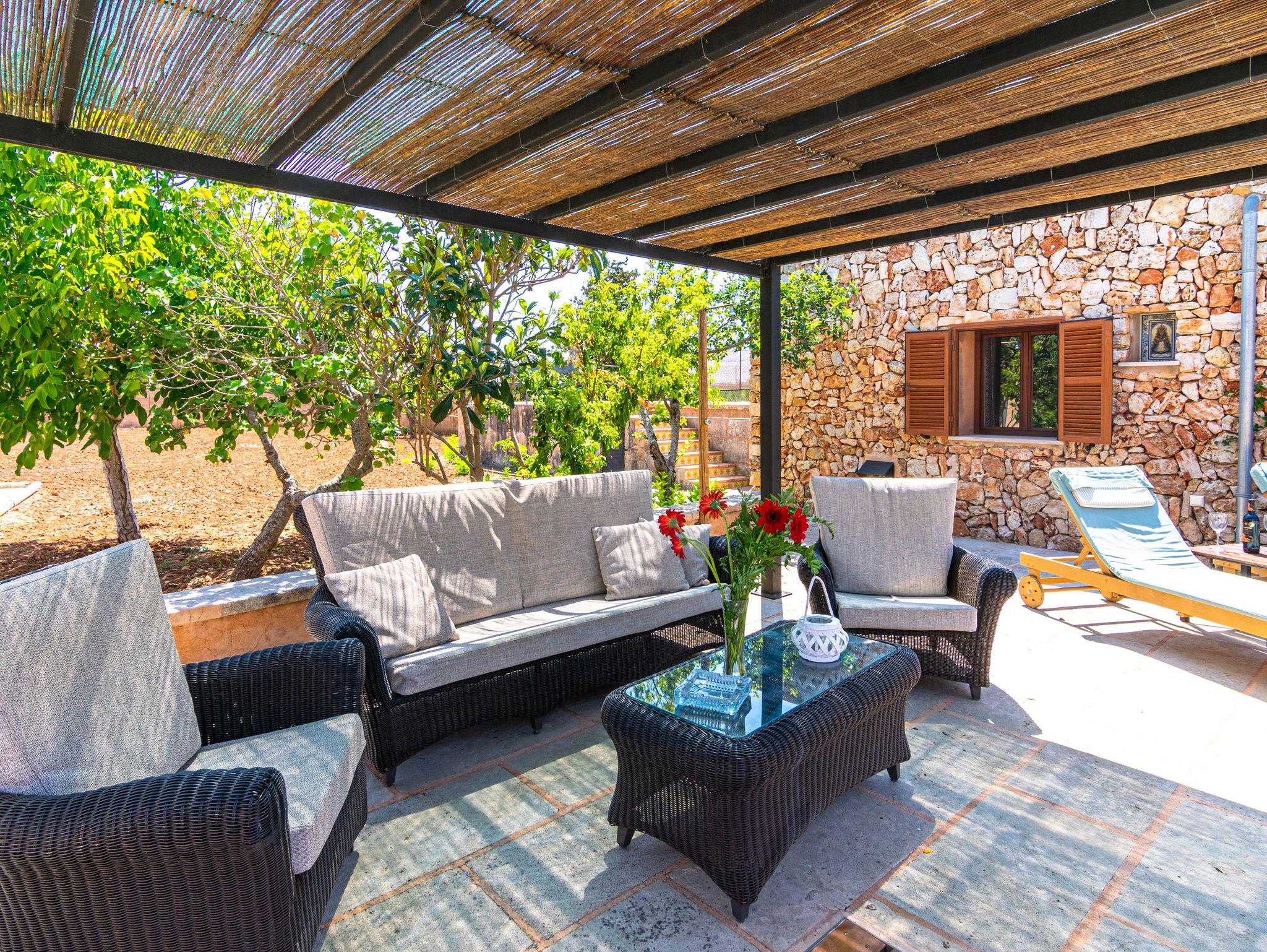 Diese charmante mallorquinische Villa vereint traditionellen Stil mit modernem Komfort. Im Zentrum des Anwesens öffnet sich ein wunderschöner Innenhof mit privatem Pool ? perfekt für ein erfrischendes Bad zu jeder Tageszeit. Rundherum laden eine großzügige Sonnenterrasse, ein gemütlicher Lounge-Bereich mit Strohdach und ein großer gemauerter Grill zum Entspannen im Freien ein, sei es beim Sonnenbaden, bei einem Abendessen unter freiem Himmel oder beim Blick in den Sternenhimmel. Ein Außenbad sorgt für zusätzlichen Komfort und macht es leicht, den ganzen Tag draußen zu verbringen. Die Natursteinfassade, die den Hof wie eine Umarmung umgibt, verleiht der Finca ihren typischen mallorquinischen Charme.