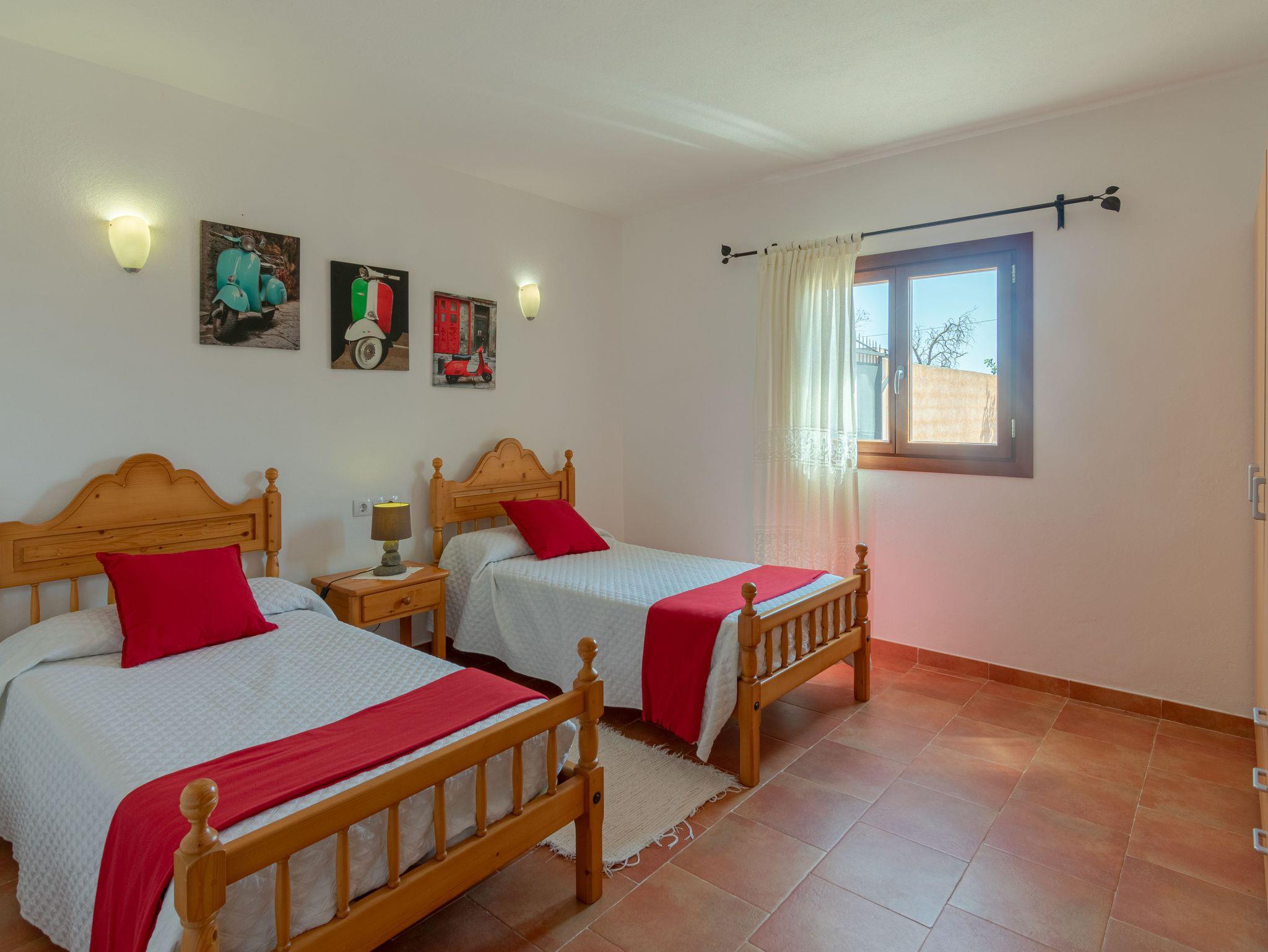 Auf der anderen Seite des Innenhofs befinden sich weitere Schlafzimmer, dekoriert in warmen Tönen und mit natürlichen Holzelementen, die eine behagliche und ruhige Atmosphäre schaffen. Diese Aufteilung bietet Privatsphäre und macht die Villa ideal für Familien oder Freundesgruppen, die gemeinsam reisen.