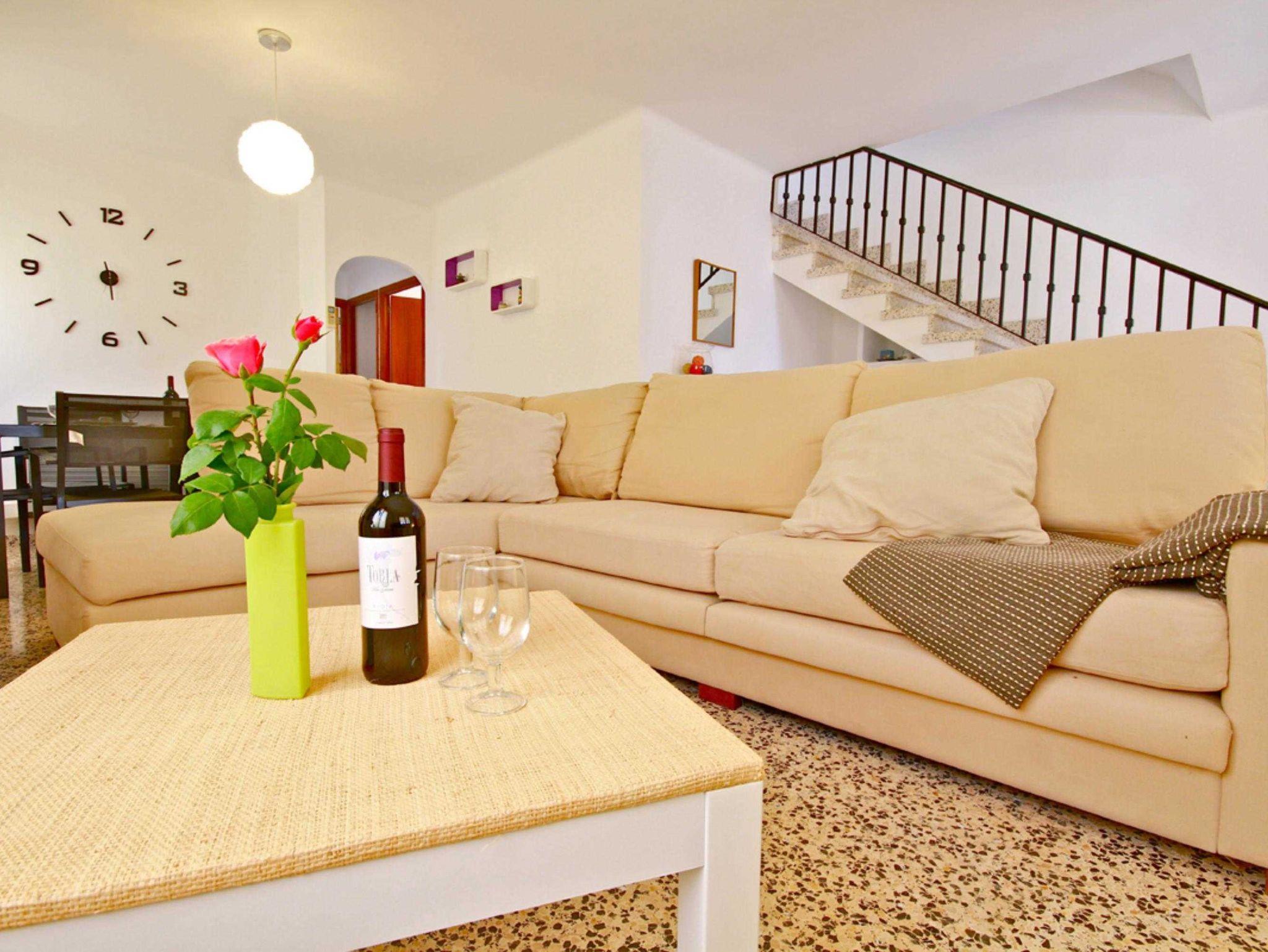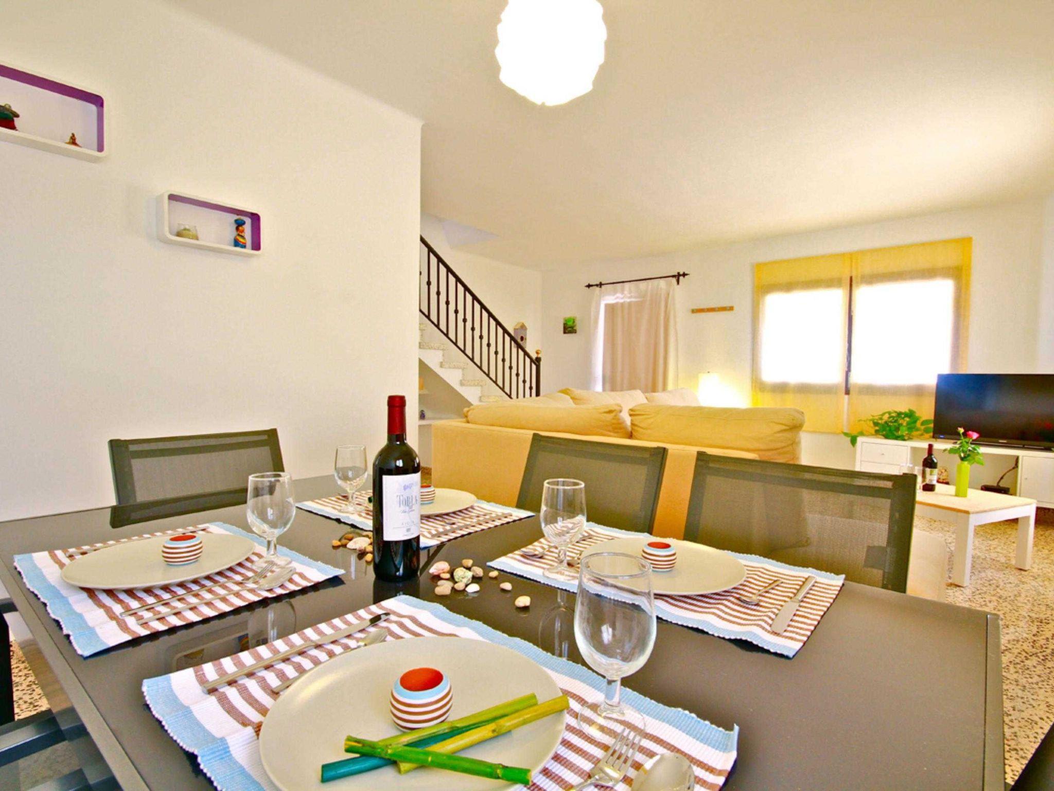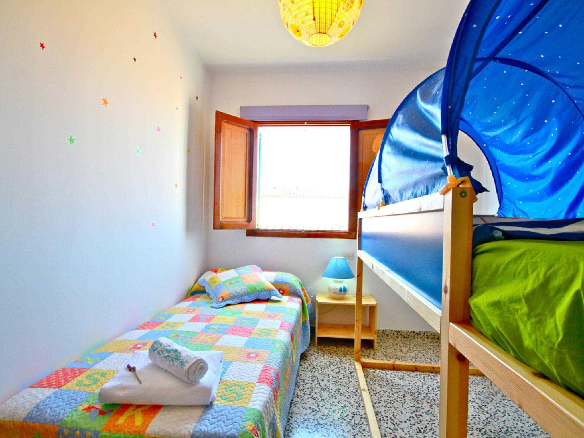 Das Dorfhaus Casa delfín liegt ca. 300 m vom Meer entfernt und bietet Platz für bis zu 6 Erwachsene und ein Baby. Die Wohnfläche beträgt insgesamt 190 qm und ist aufgeteilt in 4 Schlafzimmer, Wohn-Esszimmer, 2 Bäder und eine voll ausgestattete moderne Küche. Drei der Schlafzimmer befinden sich im Obergeschoss. Zwei davon haben ein Doppelbett von 180x200cm oder 160x200cm. Das dritte Schlafzimmer im Obergeschoss ist mit zwei Einzelbetten (90x200cm) ausgestattet und ist für Kinder geeignet. Das vierte Schlafzimmer befindet sich im Untergeschoss und bietet eine weitere Schlafmöglichkeit für eine Person.