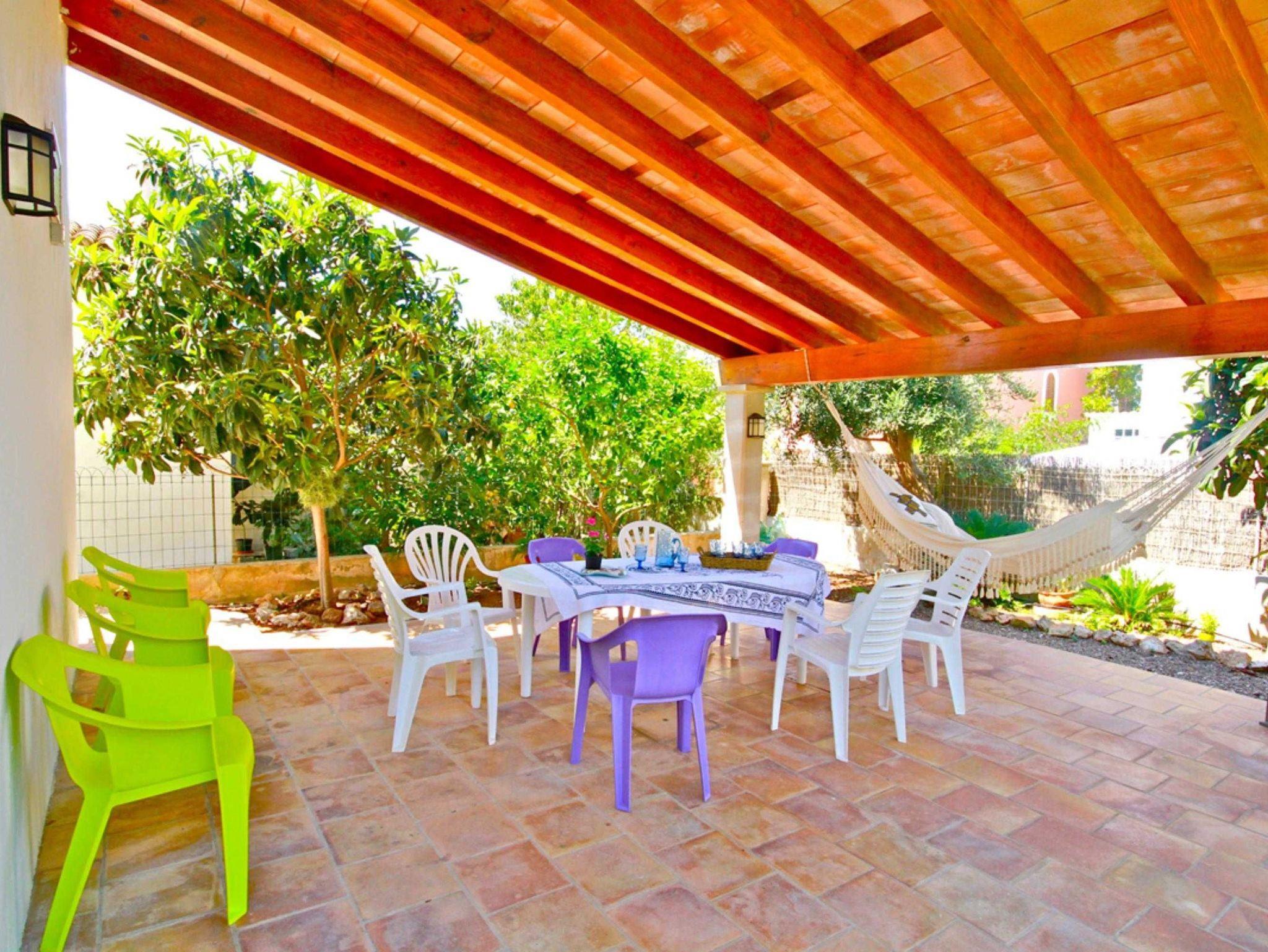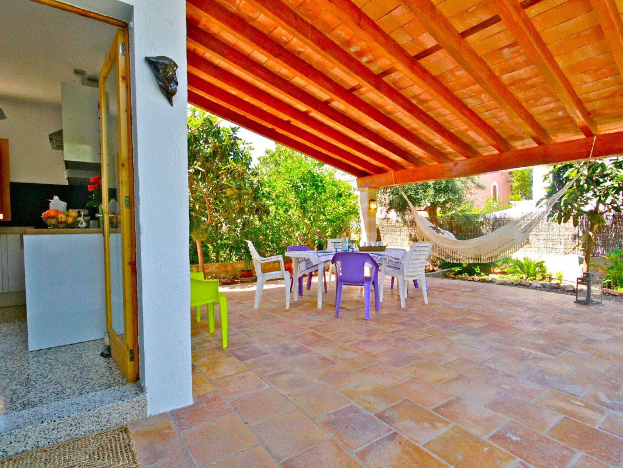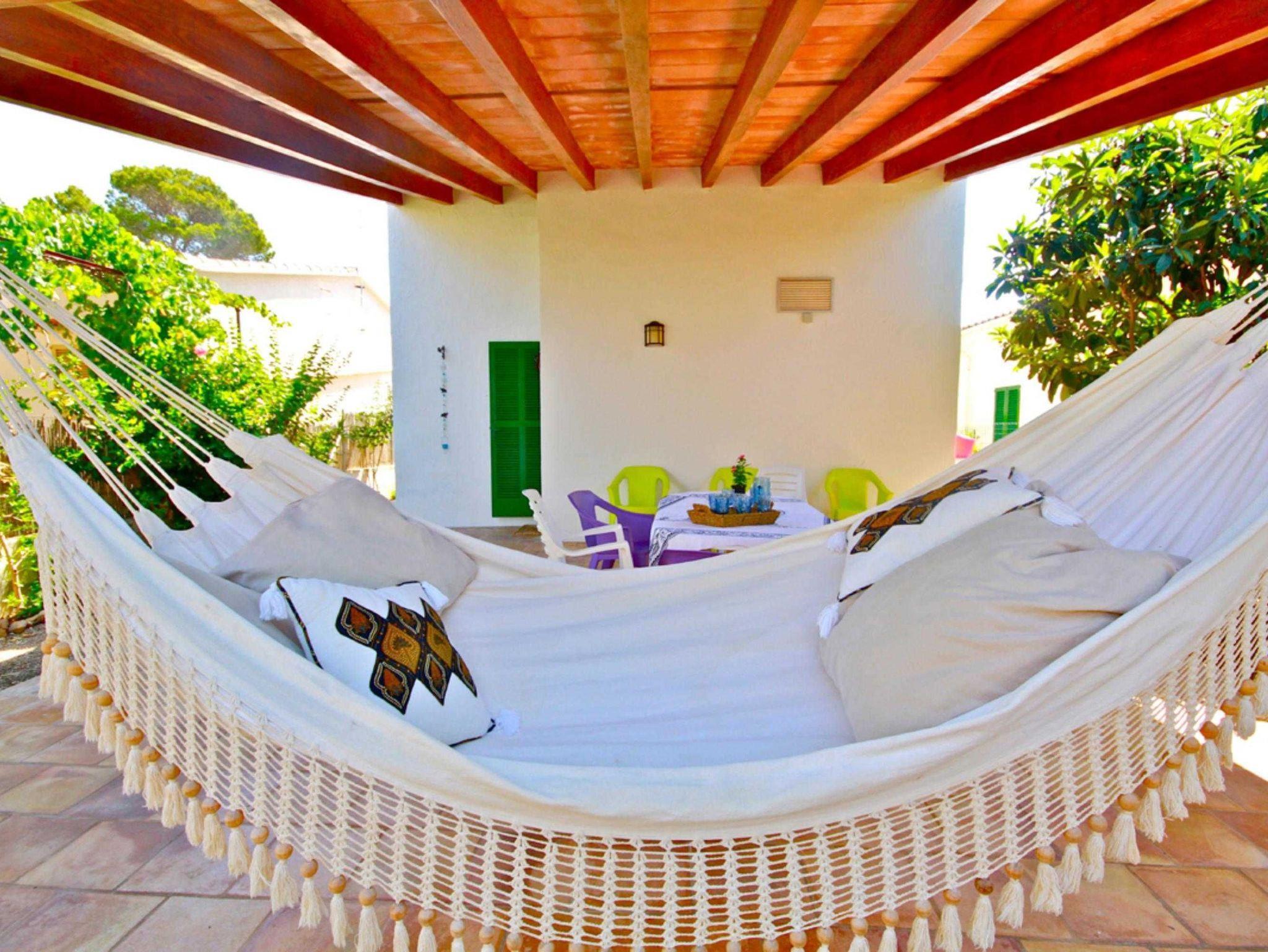 Das Esszimmer bietet Platz für 6 Personen. Auf der überdachten Außenterrasse gibt es einen weiteren Tisch mit Platz für 11 Personen. Hier befindet sich auch eine Hängematte, die zum Entspannen einlädt.